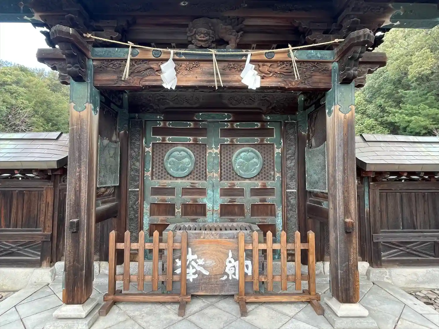 徳川家康の神廟。彫刻が刻まれた神門は左作。