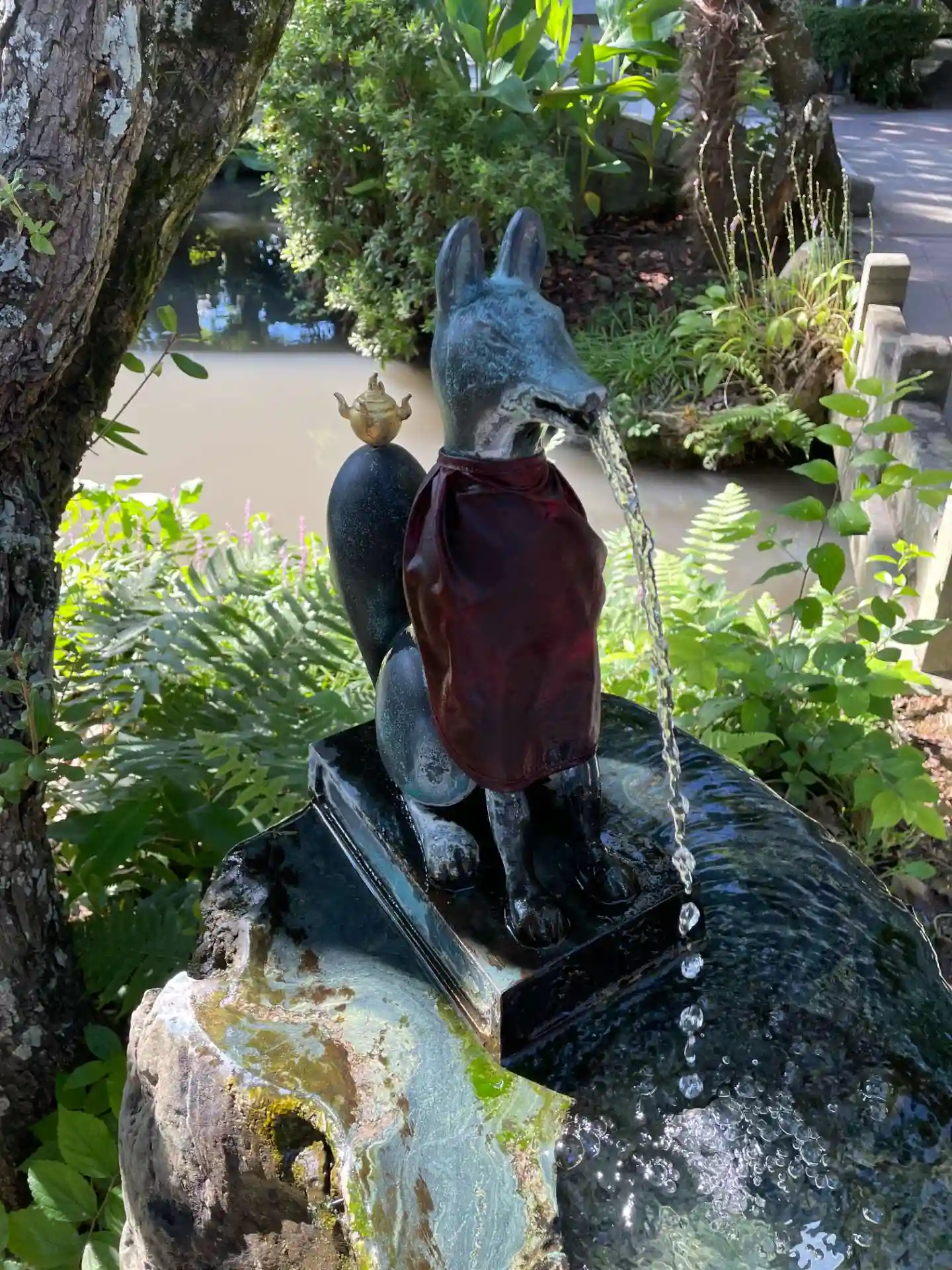 狐さんが水を吹く