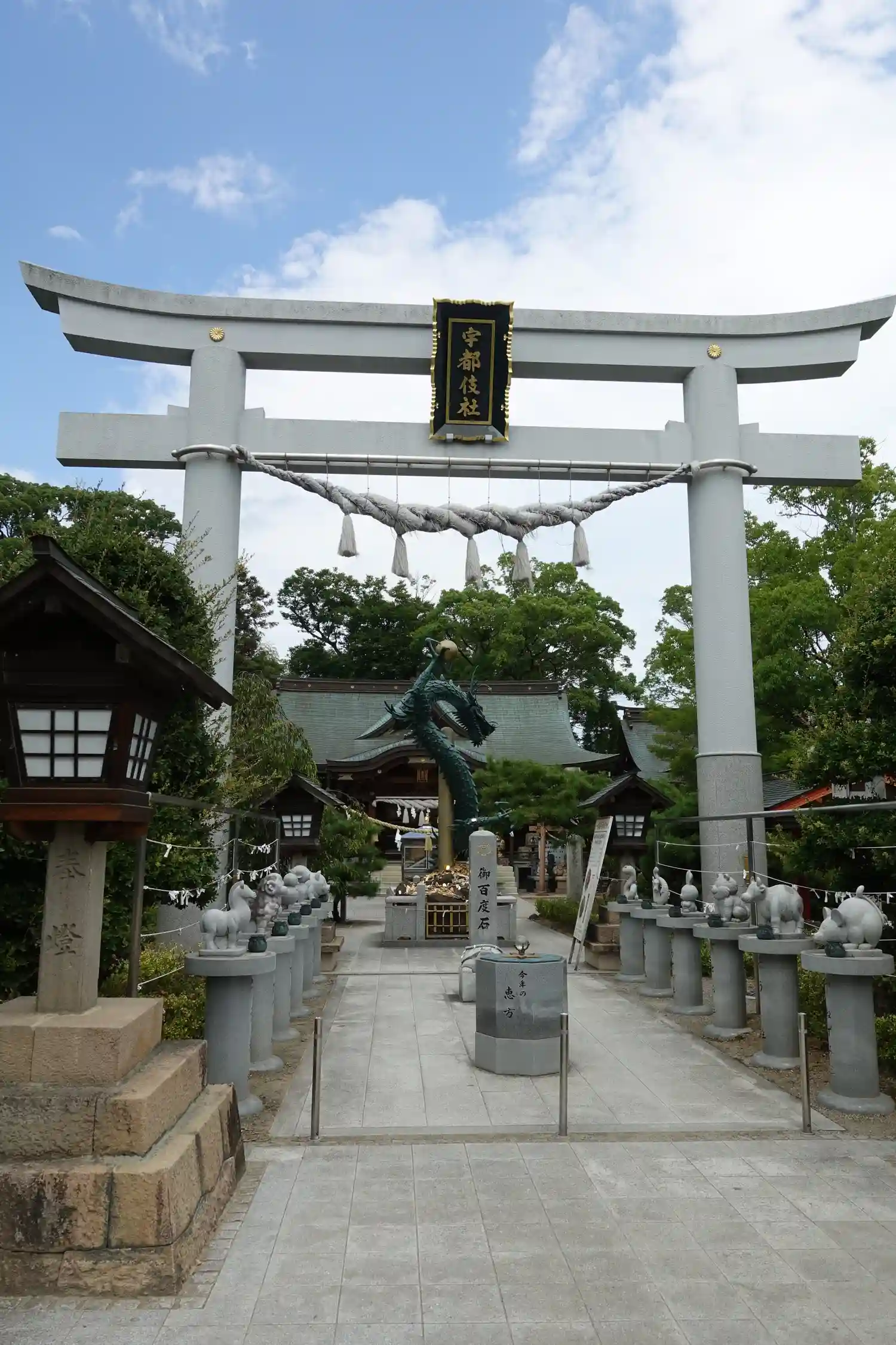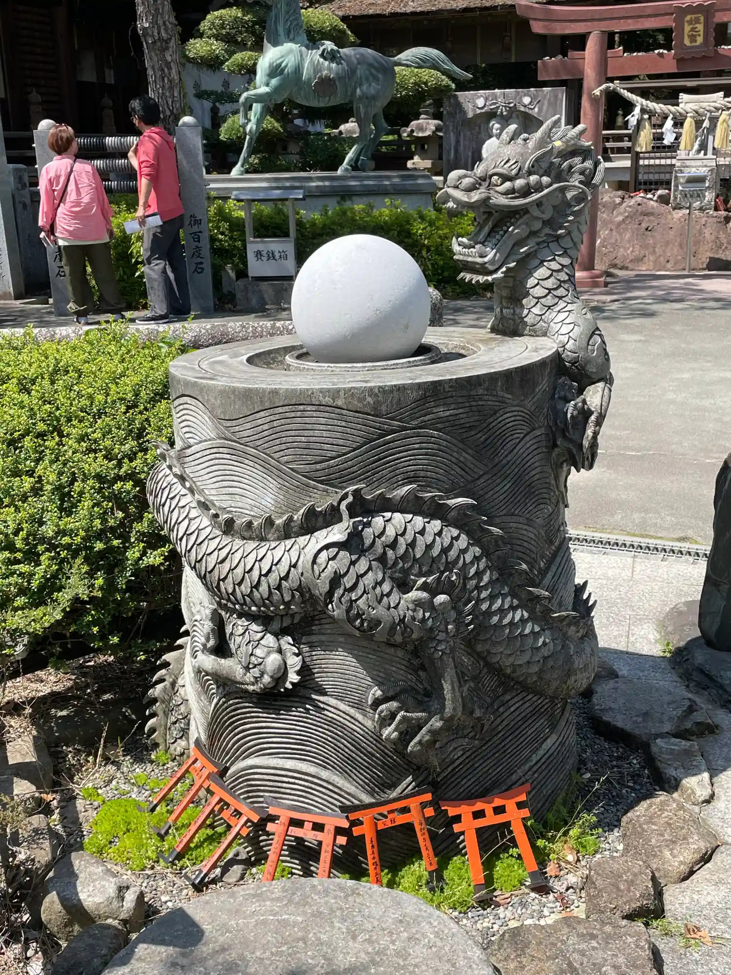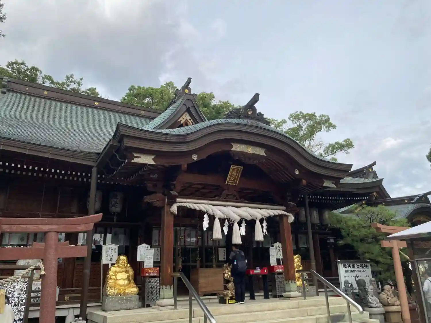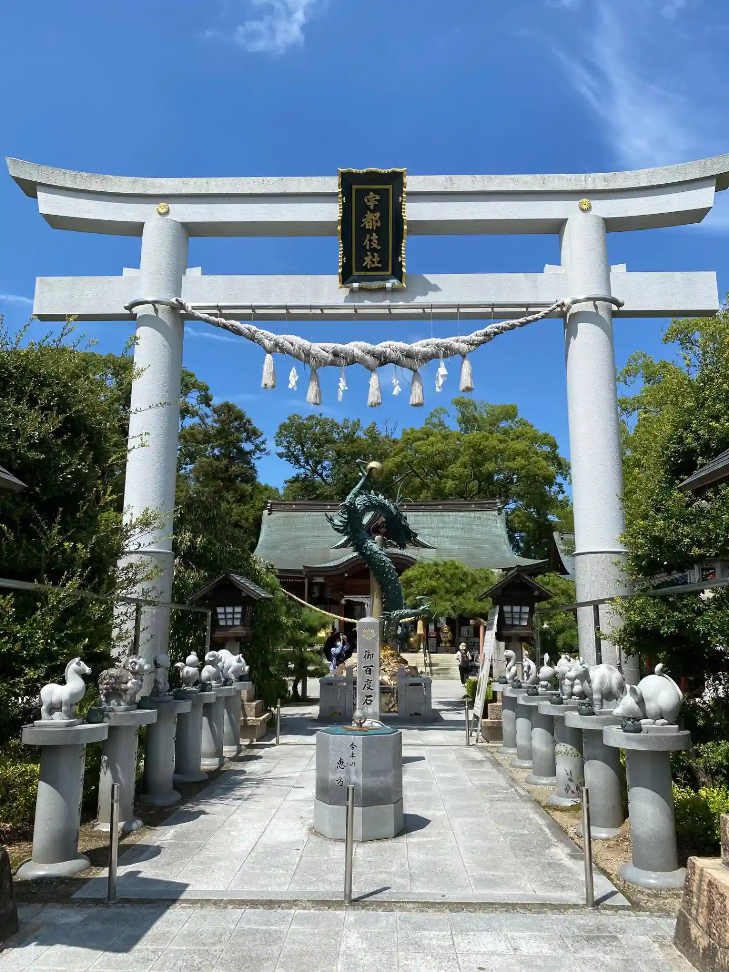かなり大きな神社で、職員さんが多く、境内に様々な像が立ち並ぶのが印…