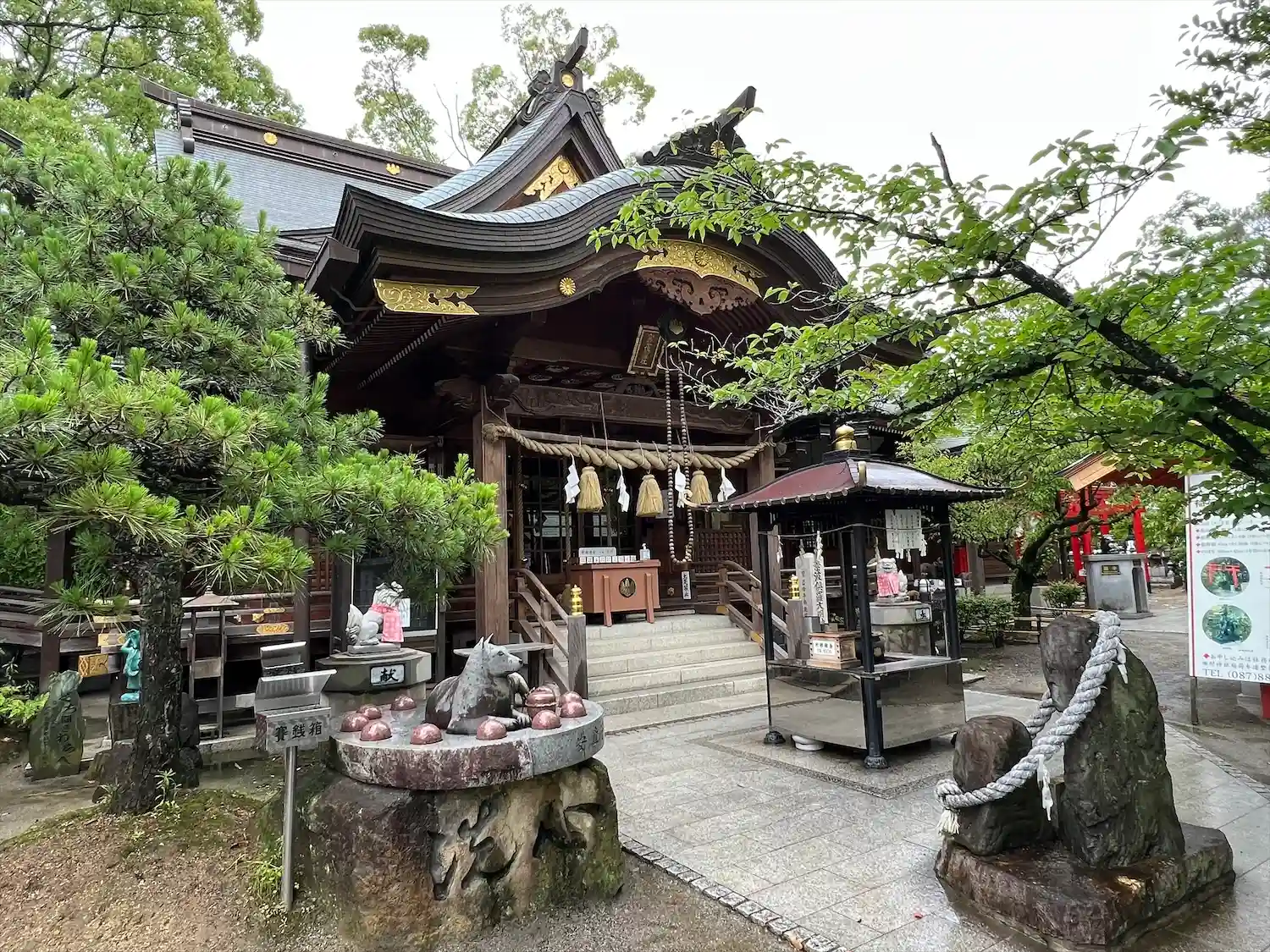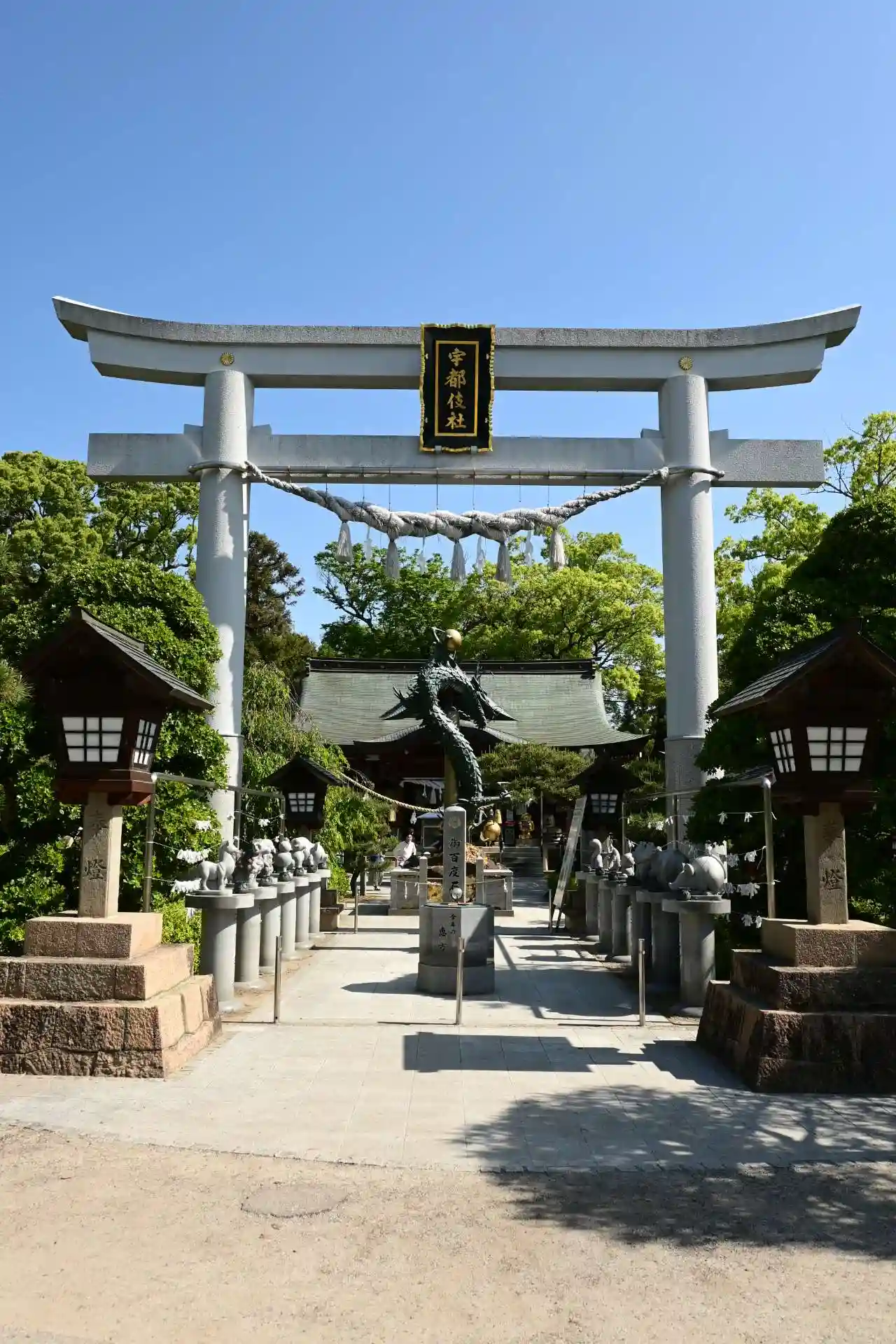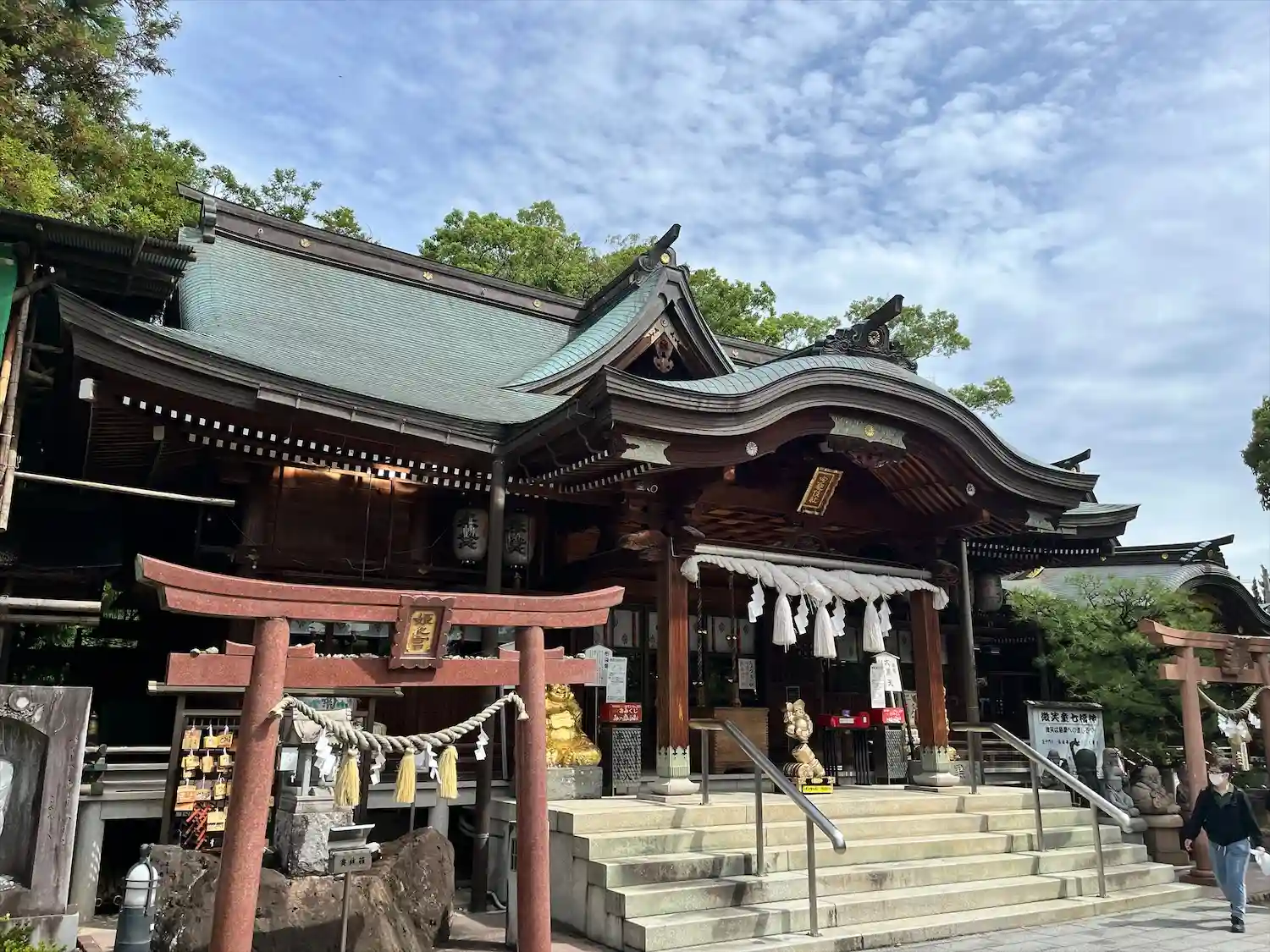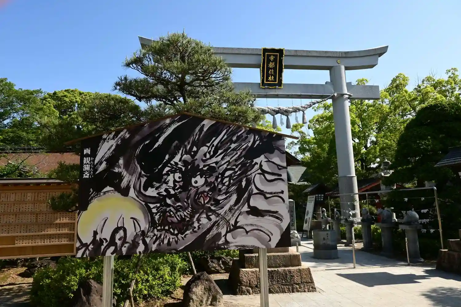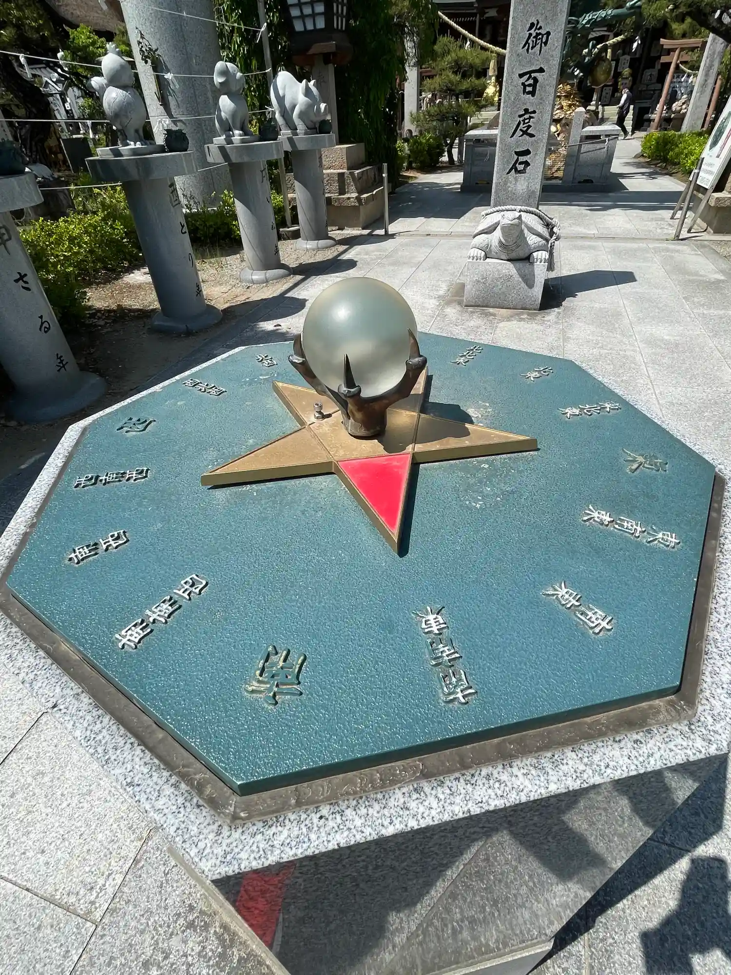 かなり大きな神社で、職員さんが多く、境内に様々な像が立ち並ぶのが印…