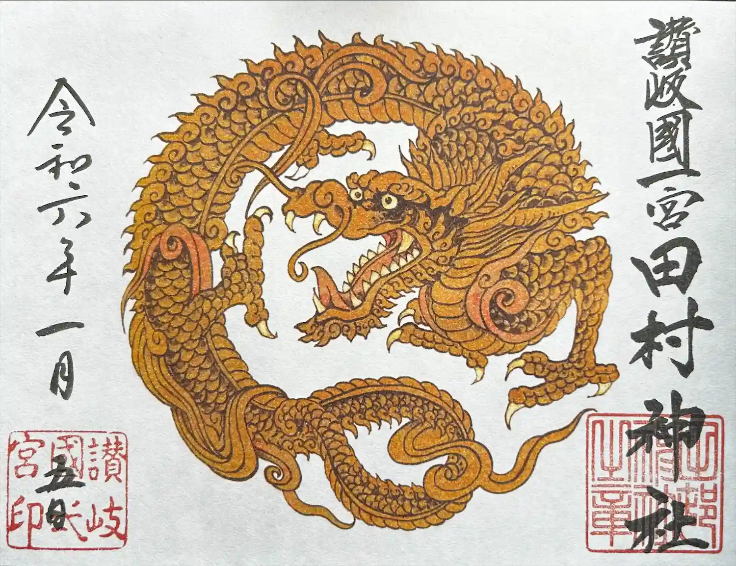 令和四年 田村神社 春季例大祭奉祝、並びに本殿御屋根葺替え事業の一環として、切り絵御朱印、龍体示現…