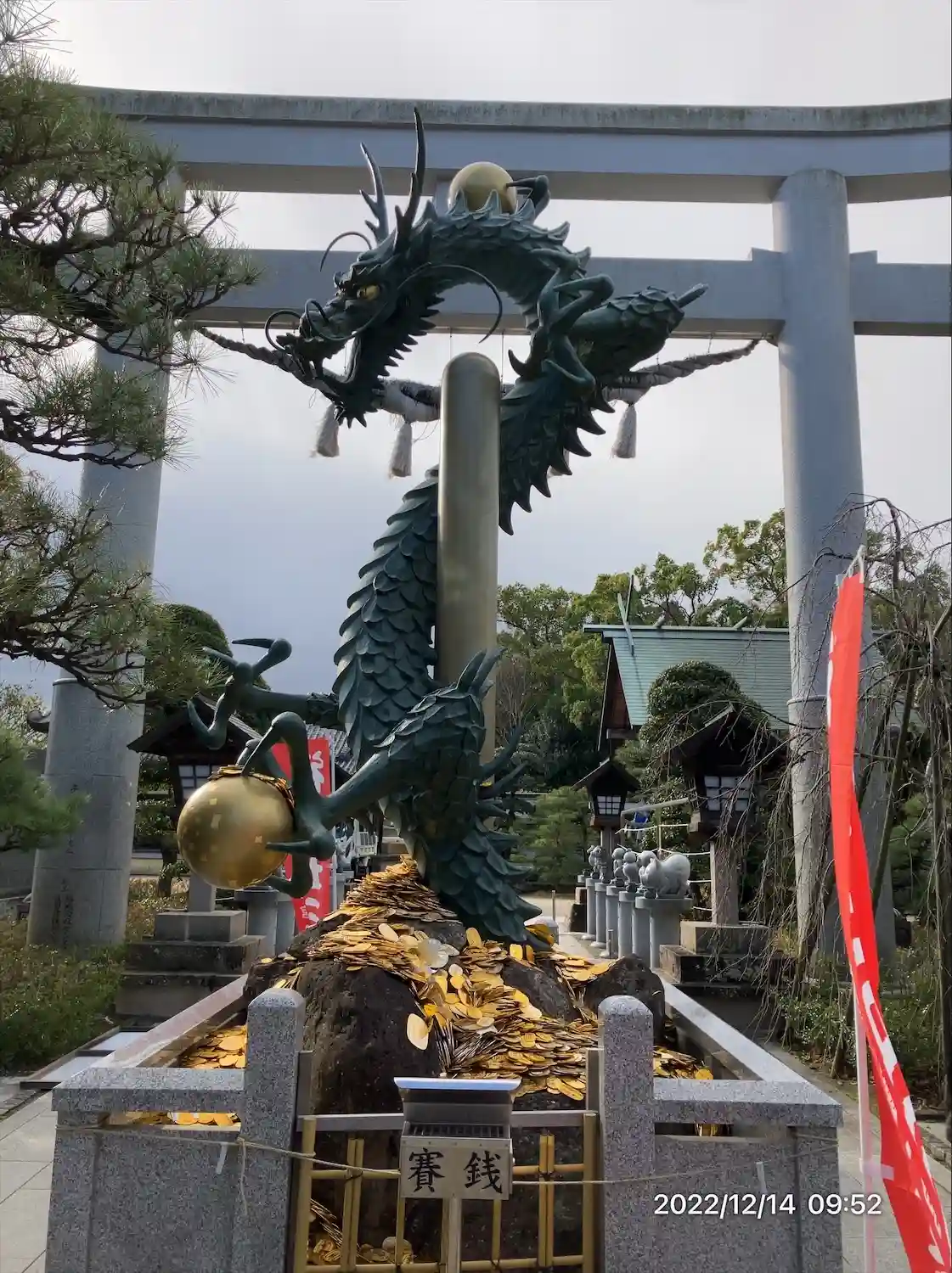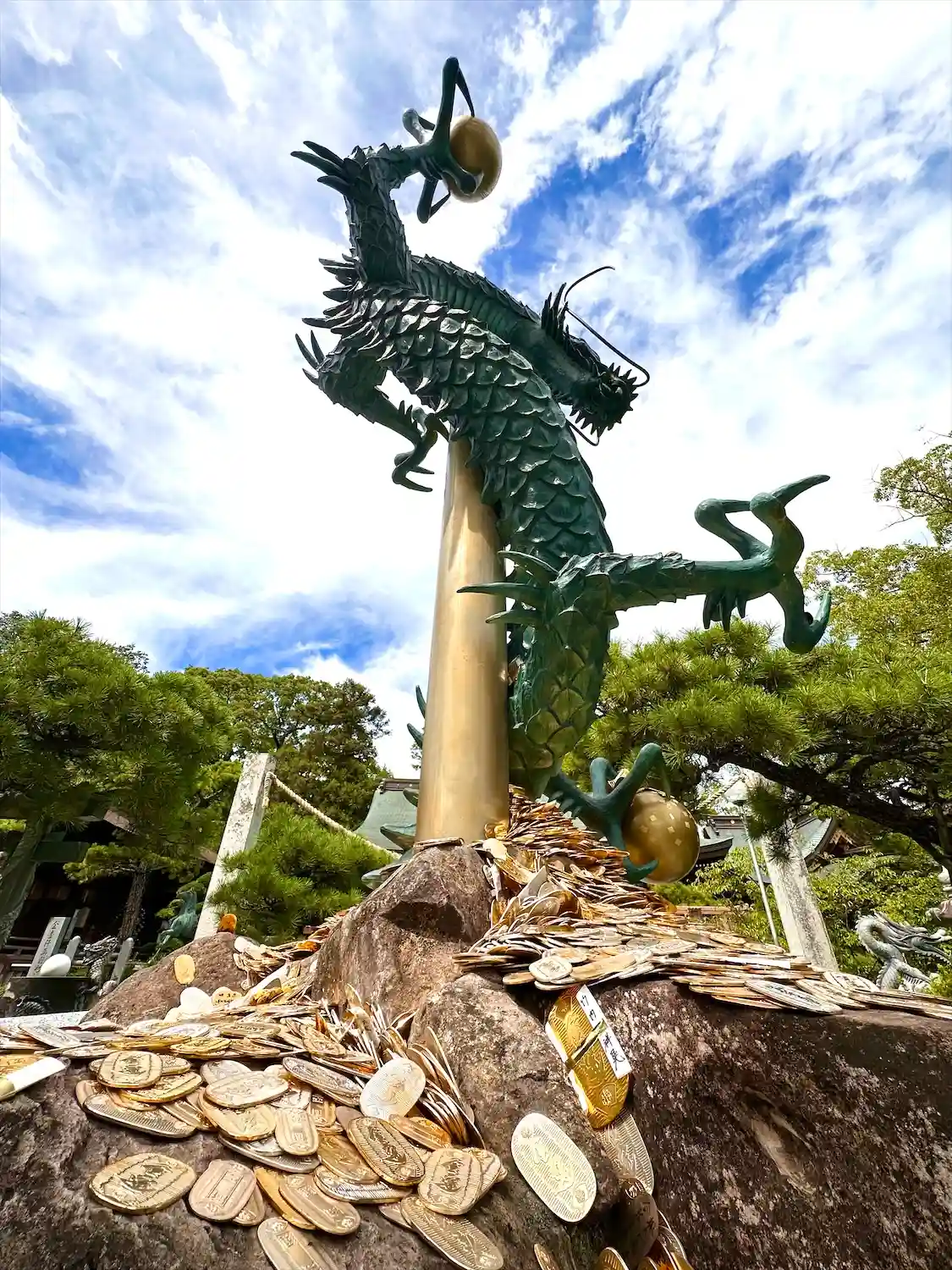 金龍。社務所で小判を購入し裏に名前を書いてから龍神様に奉納します。