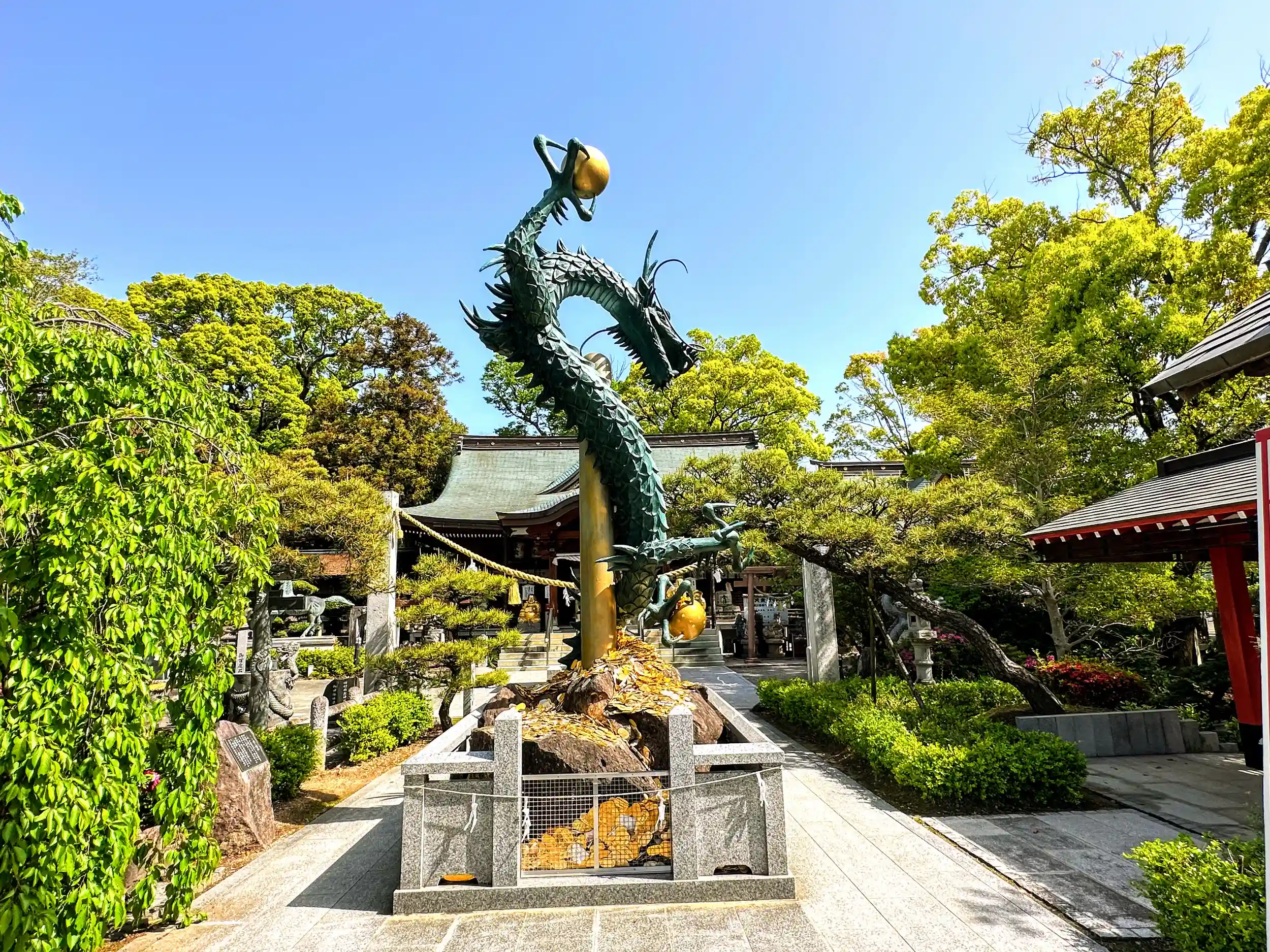 鳥居前には十二支の石像などがあります、特に牛はめちゃ可愛かったです、猪も負けていません 龍はめを引きます