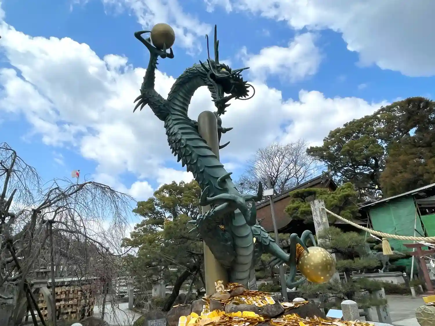 鳥居前には十二支の石像などがあります、特に牛はめちゃ可愛かったです、猪も負けていません 龍はめを引…