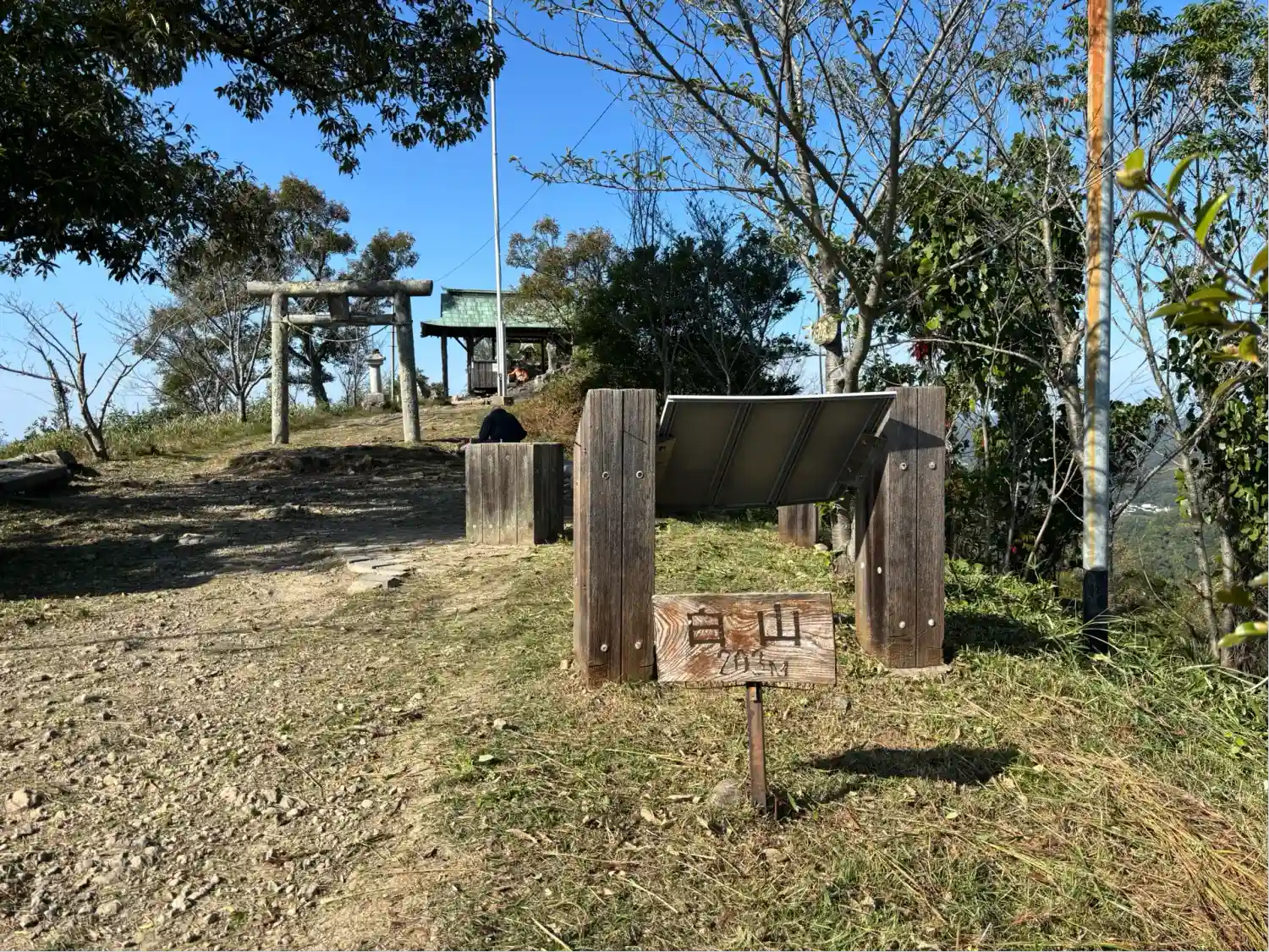 鳥居があります。草刈り作業中。