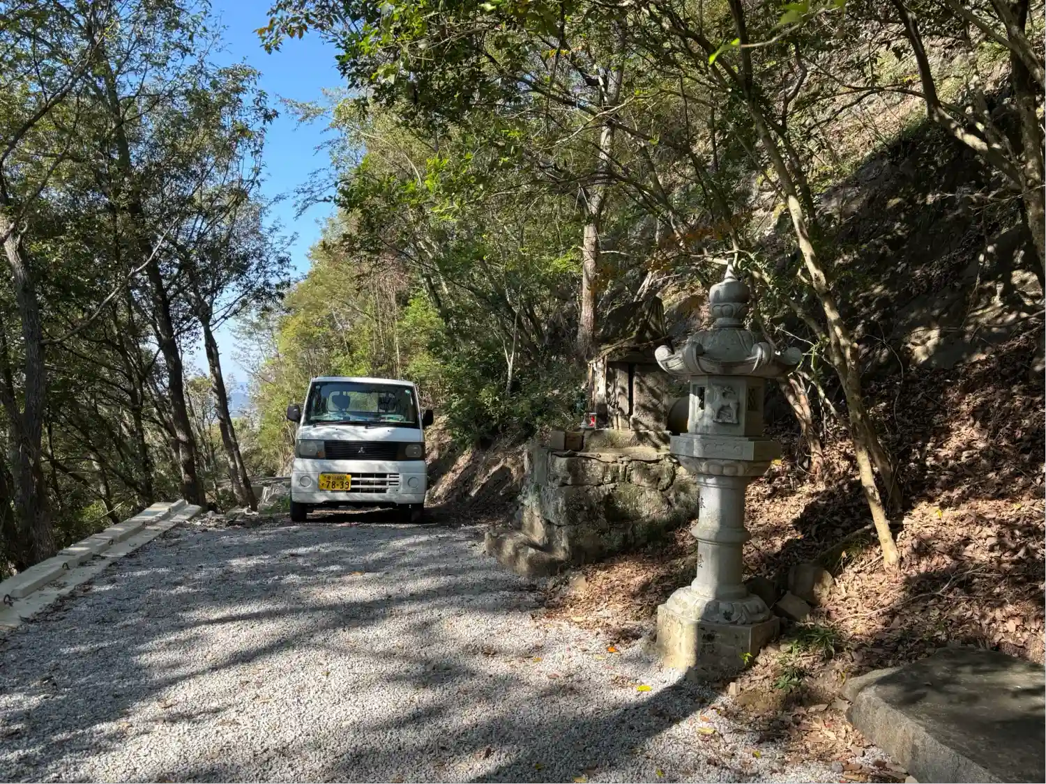 七合目を過ぎたところに祠。ここまで関係車両が来られるようです。この日は草刈りをしていらっしゃいました。
