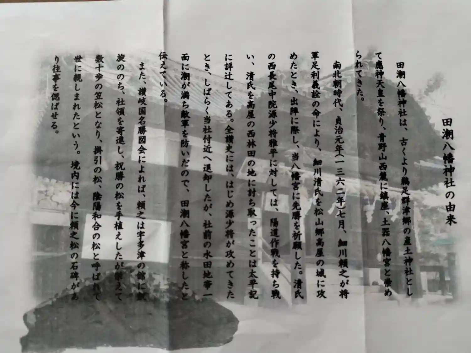 1362年 室町幕府第2代将軍・足利義詮の命により 細川頼之が松山郷高屋の城を攻める際 この神社で戦勝祈願をしたそうです。
