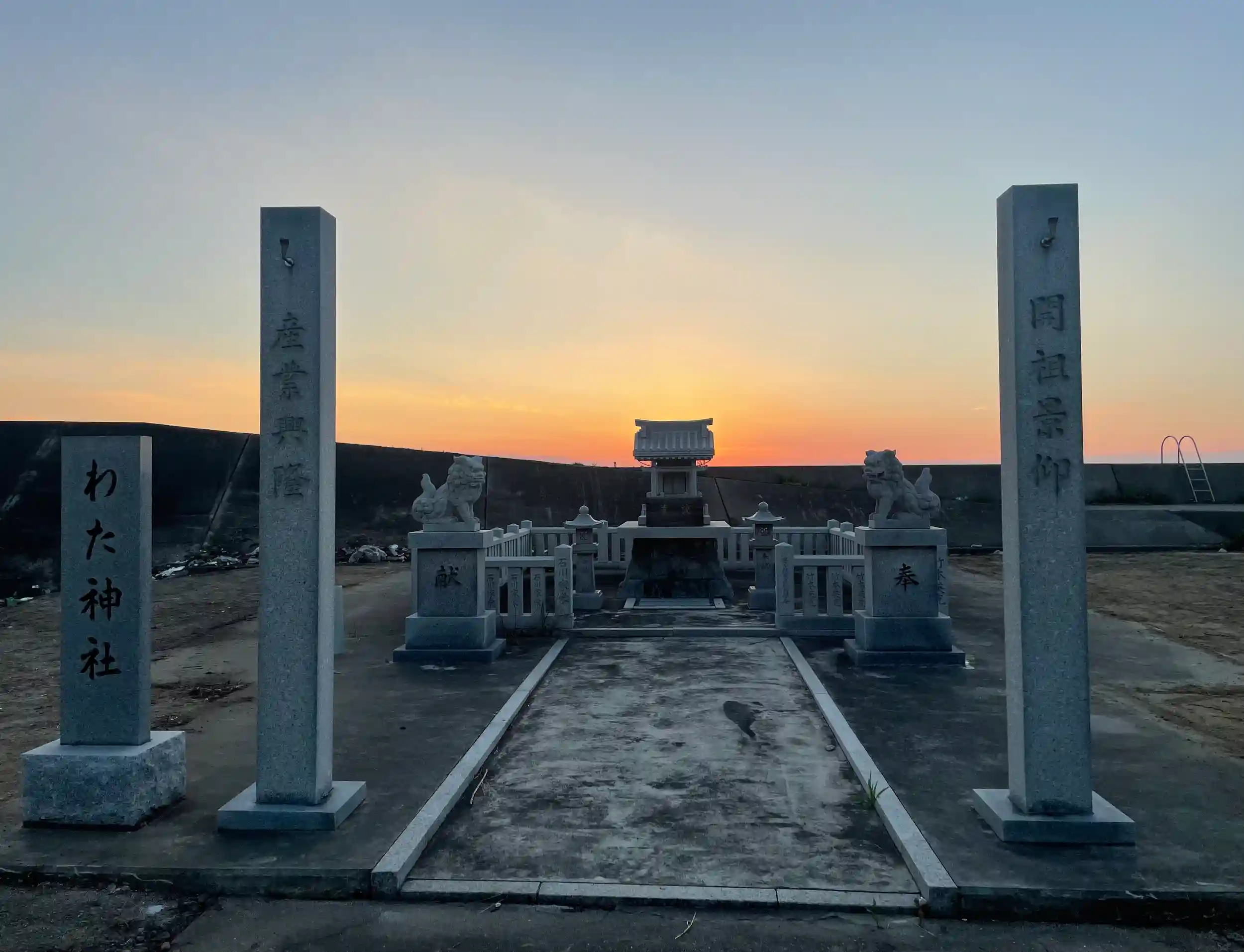 お参りしました🙏香川での滞在先の駐車場の横にかわいい神社みつけました。今回は四国ということでお寺だけお参りしよう!と決めてましたが夕日を背にとてもキレイだったので😊