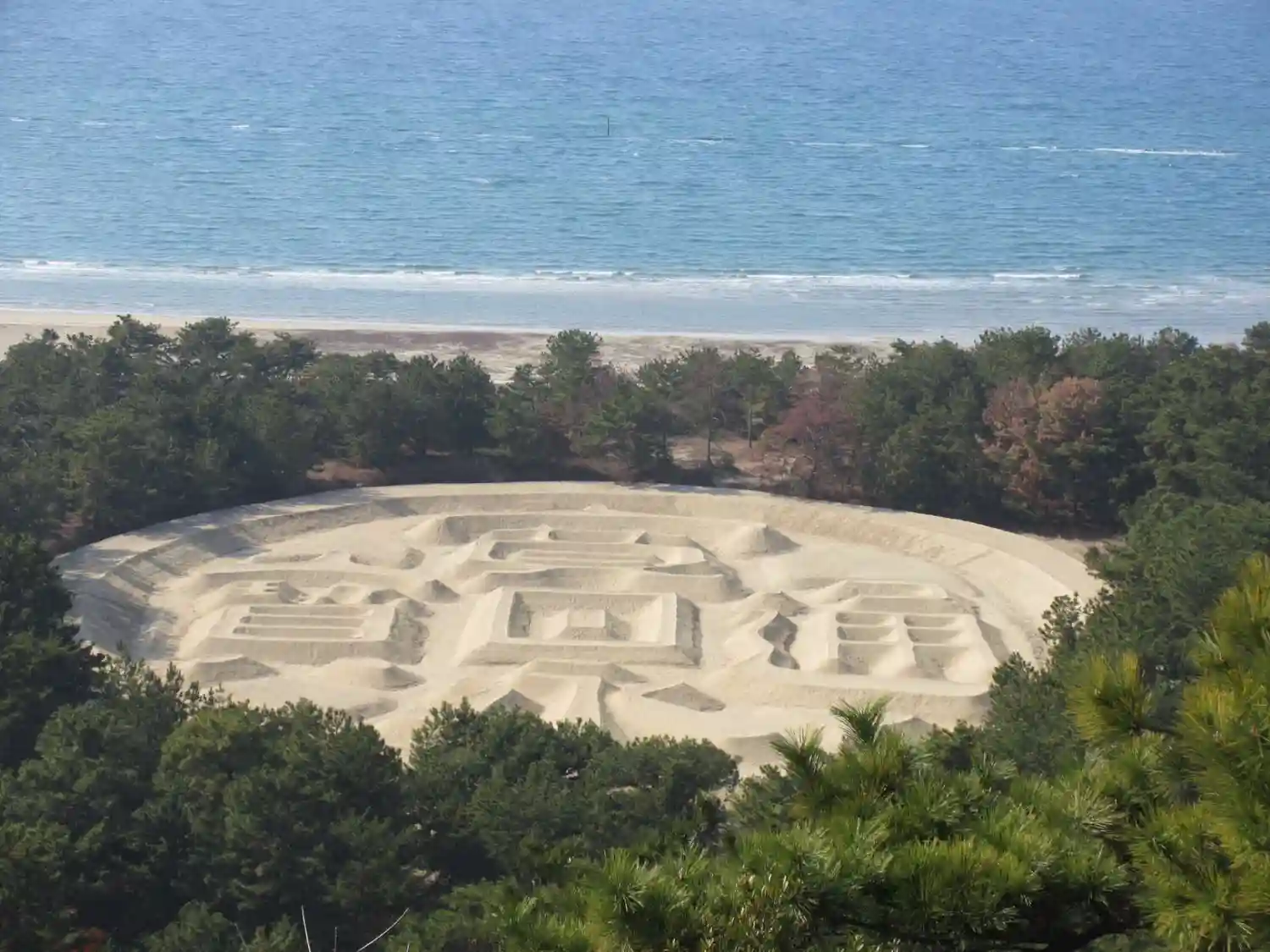 まずは展望台に行き 琴弾浜の銭形砂絵(寛永通宝)を見ました。