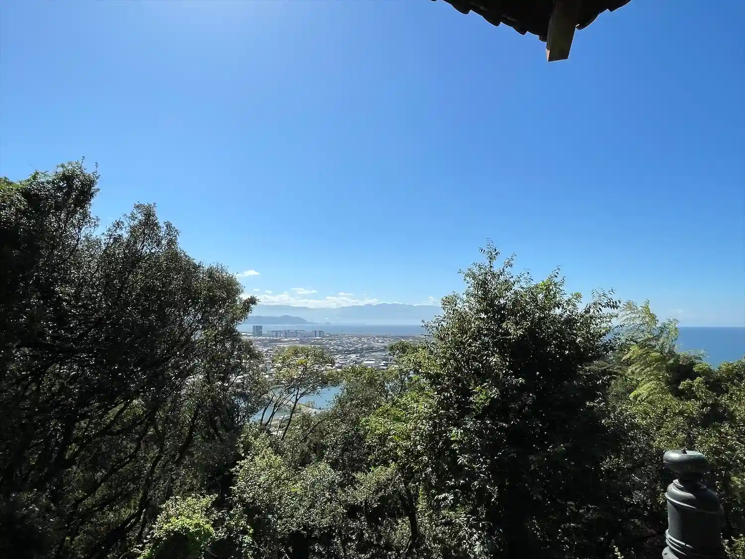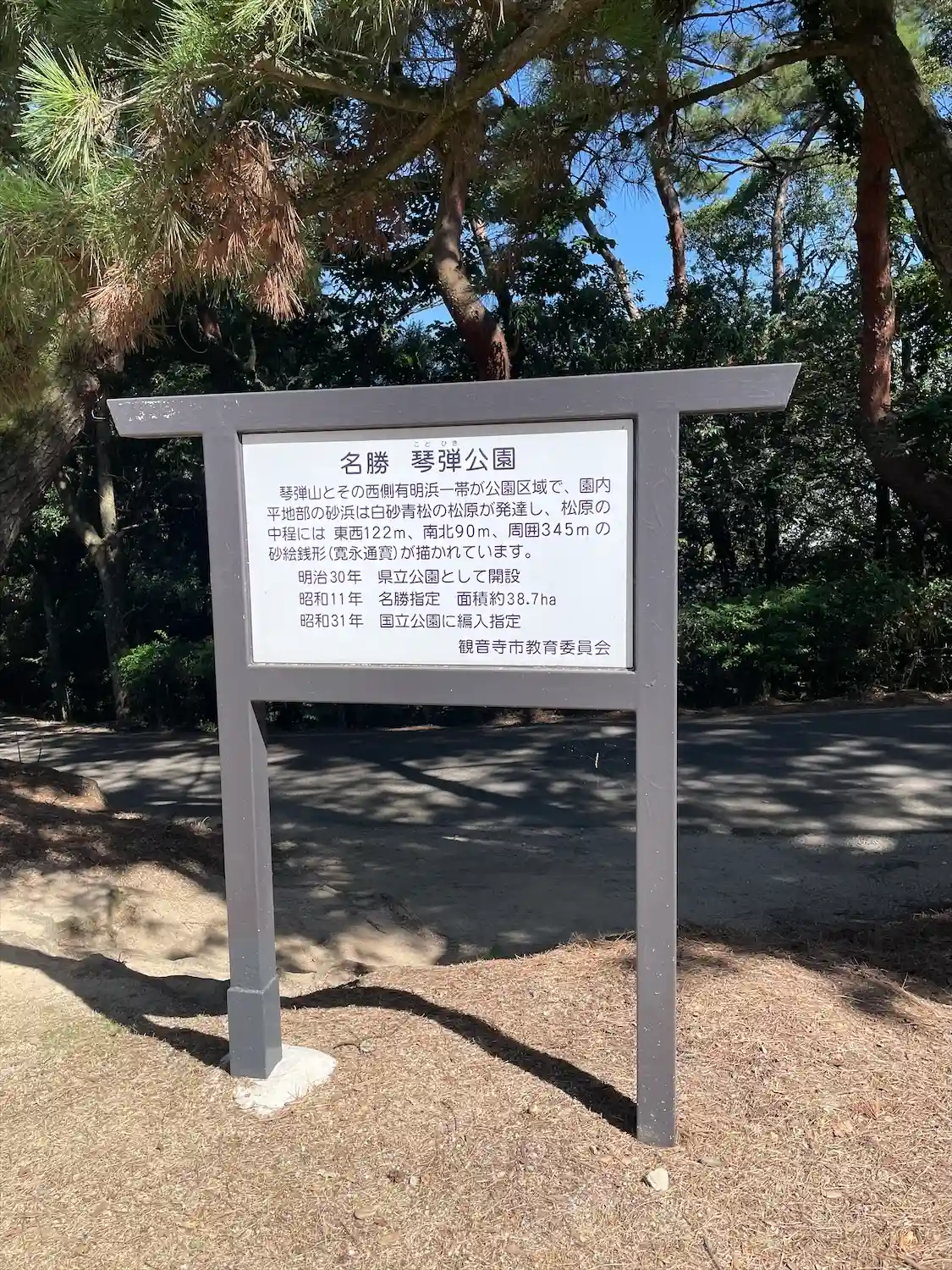 眺めは、最高^ ^本殿から、ほどなく下がったところに、展望台があり、おにぎり食べました^ ^銭形砂絵が一望できます^ ^夜はライトアップされ、素敵です♪