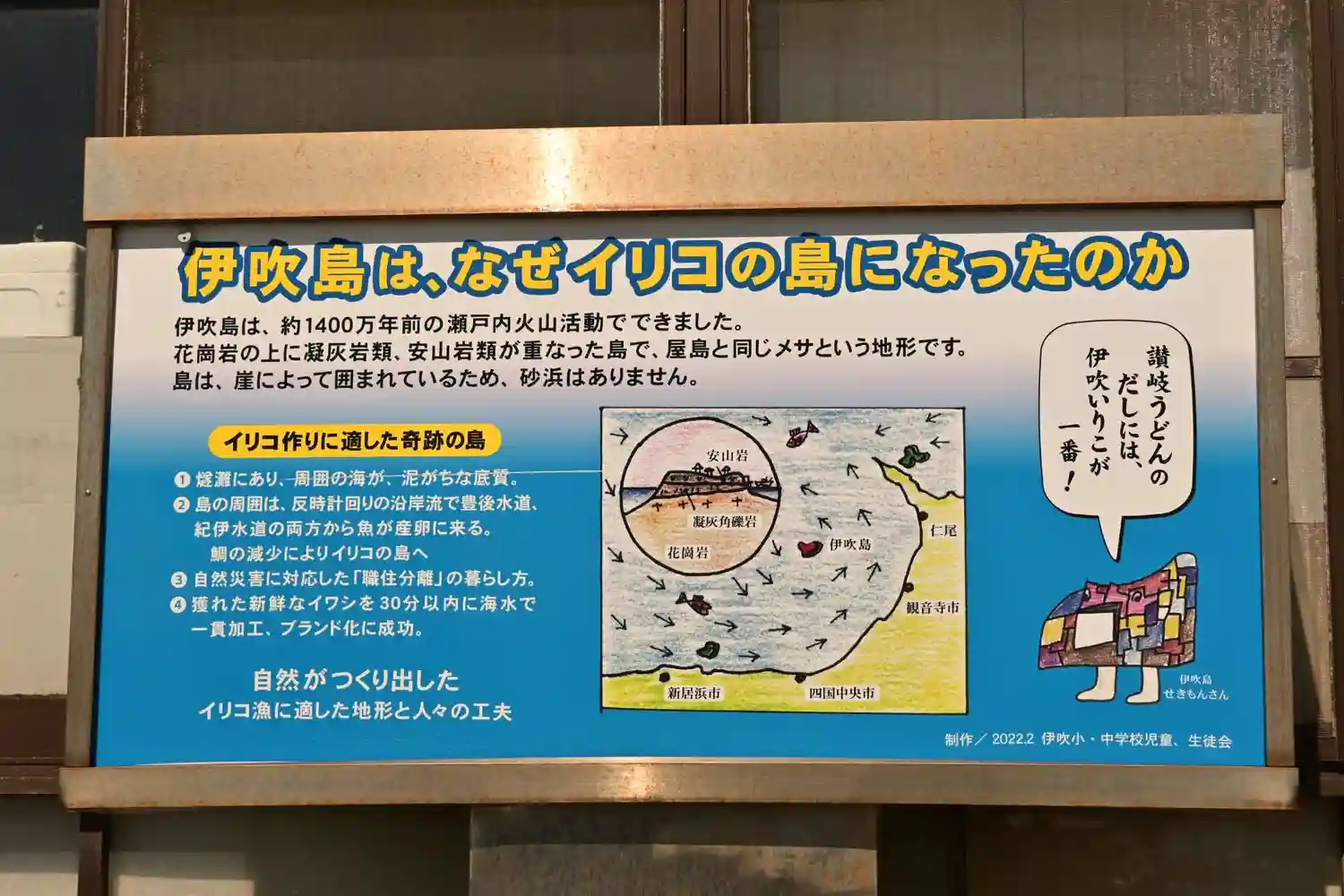 伊吹島の海水はきれいなため、加工に真水でなく海水が使え、おいしいイリコができるようです。