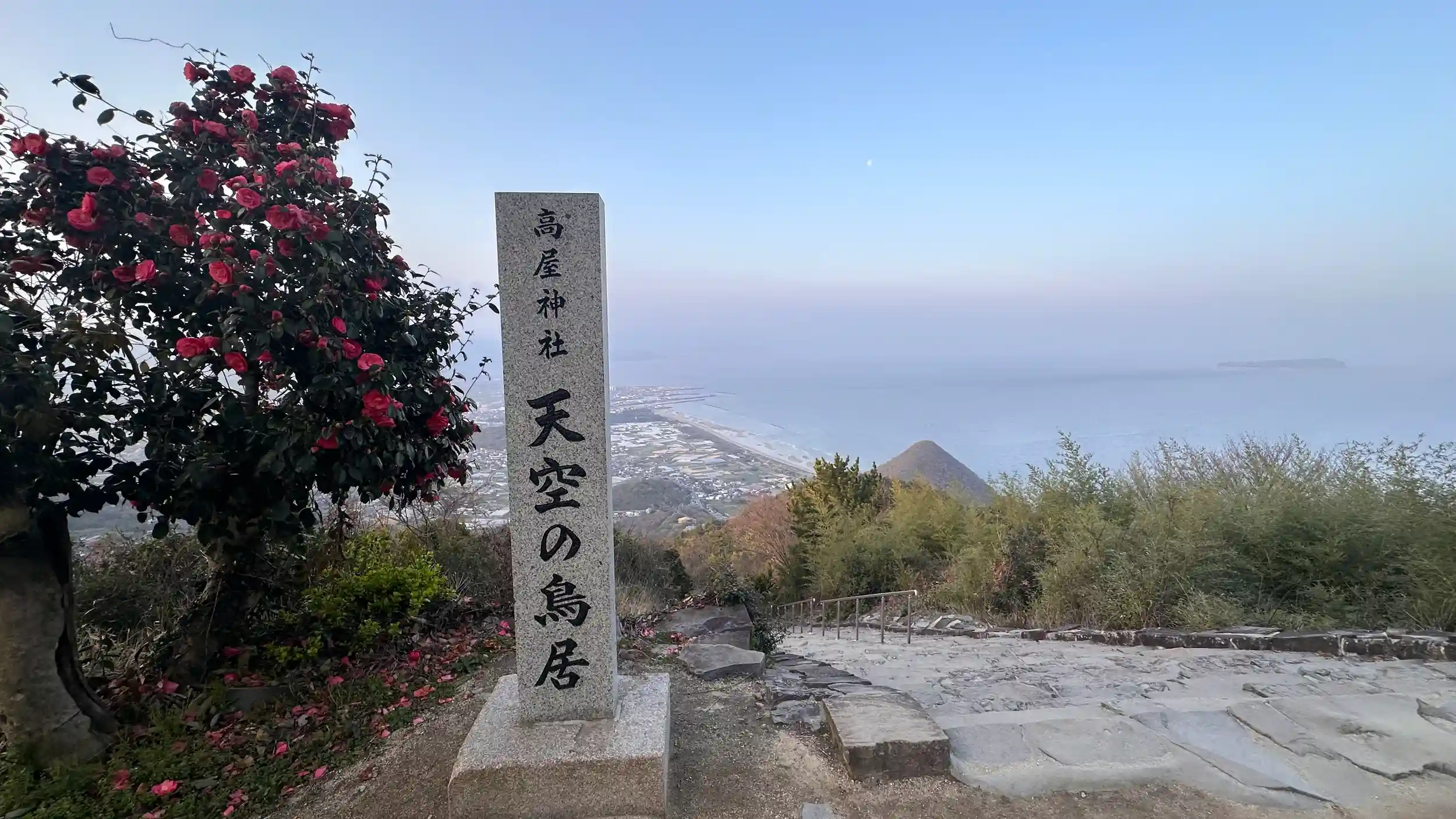 天空の鳥居、早朝の6時30分参拝してきました。参拝の方も3人くらいでした、この時期の土日は駐車場まではシャトルバスでの参拝となるので9時位からは一般車は通れなくなるようです、1時間くらい鳥の前で日が差すのを見ていました。御朱印は自動販売機での書置きとなります。
