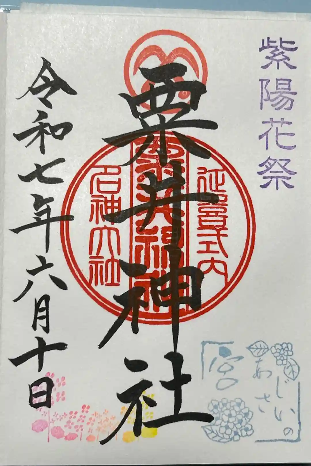 神楽殿と紫陽花