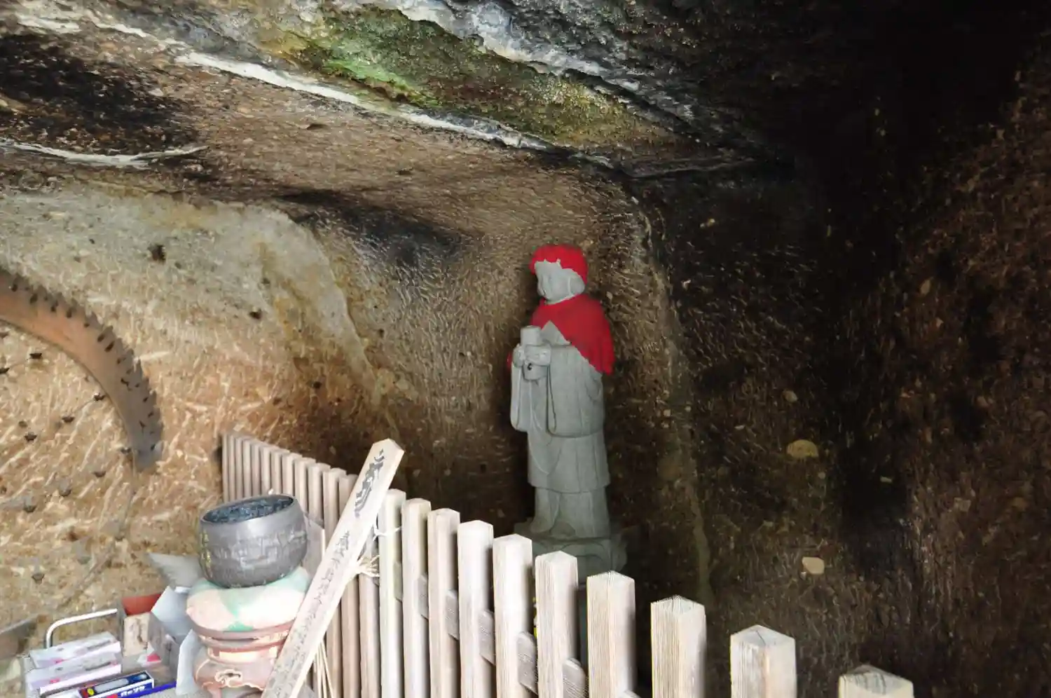 根本御堂の裏には小さな洞窟があり岩倉大師が祀られている。