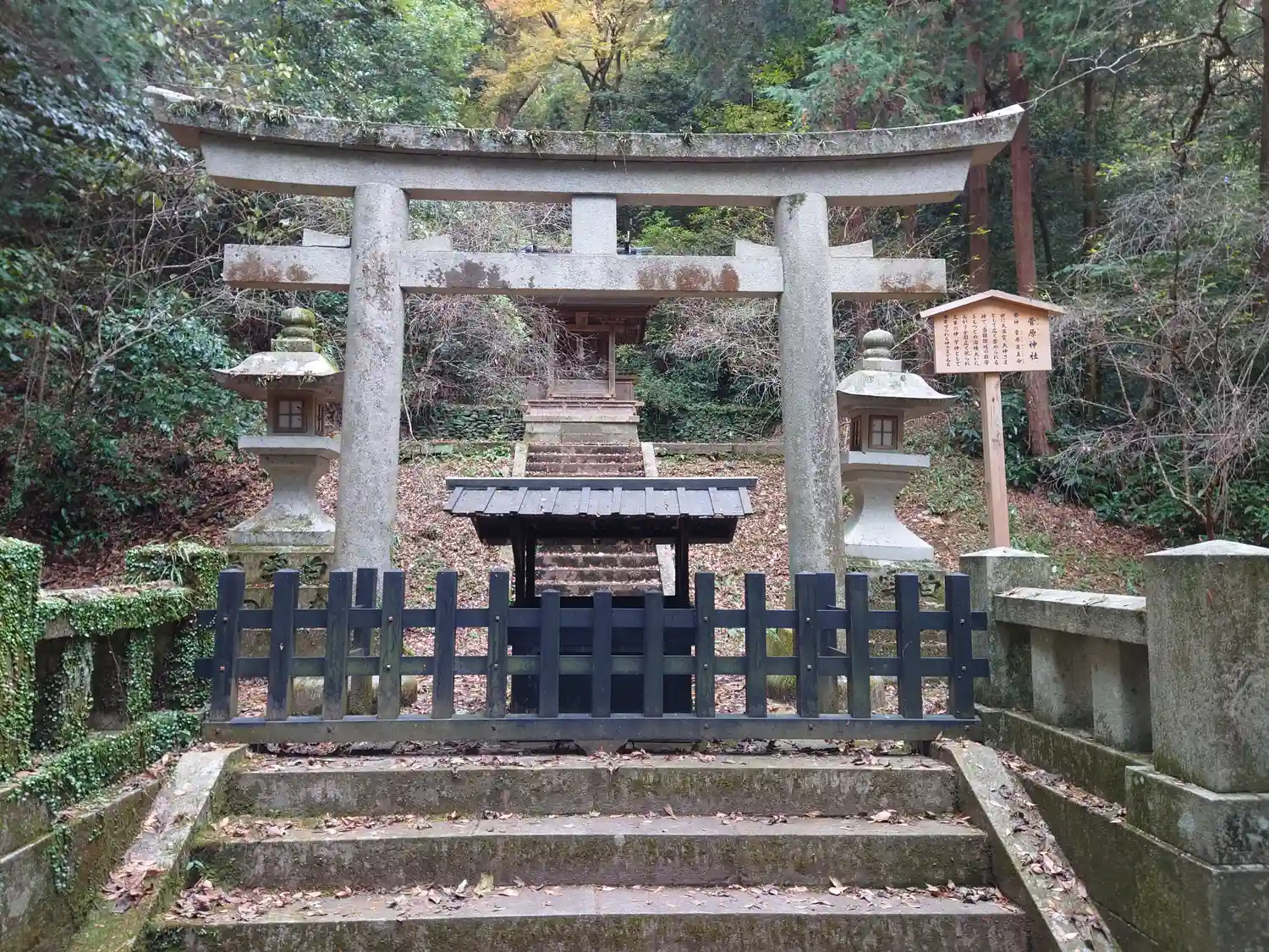 まずは参道の石段を登り始めてすぐの鳥居