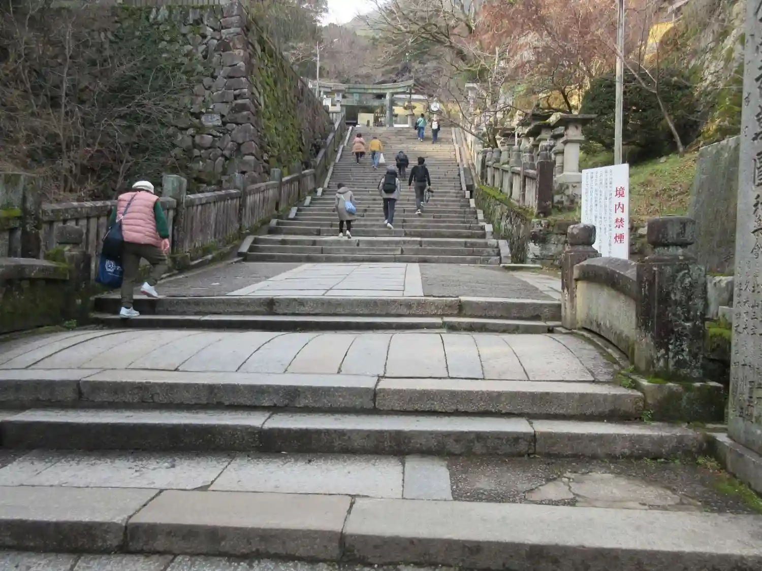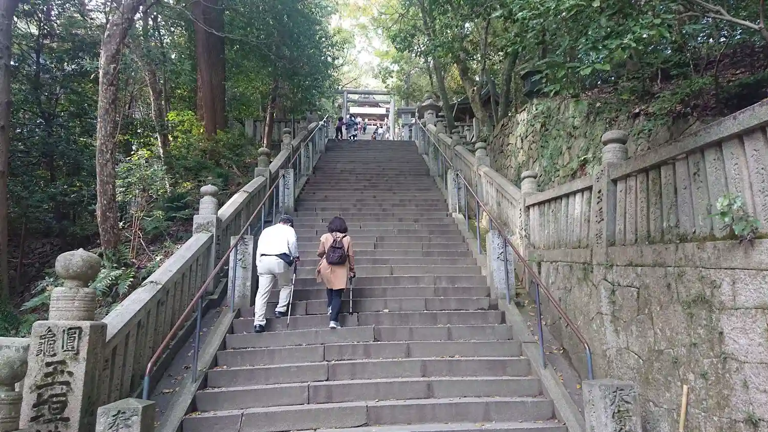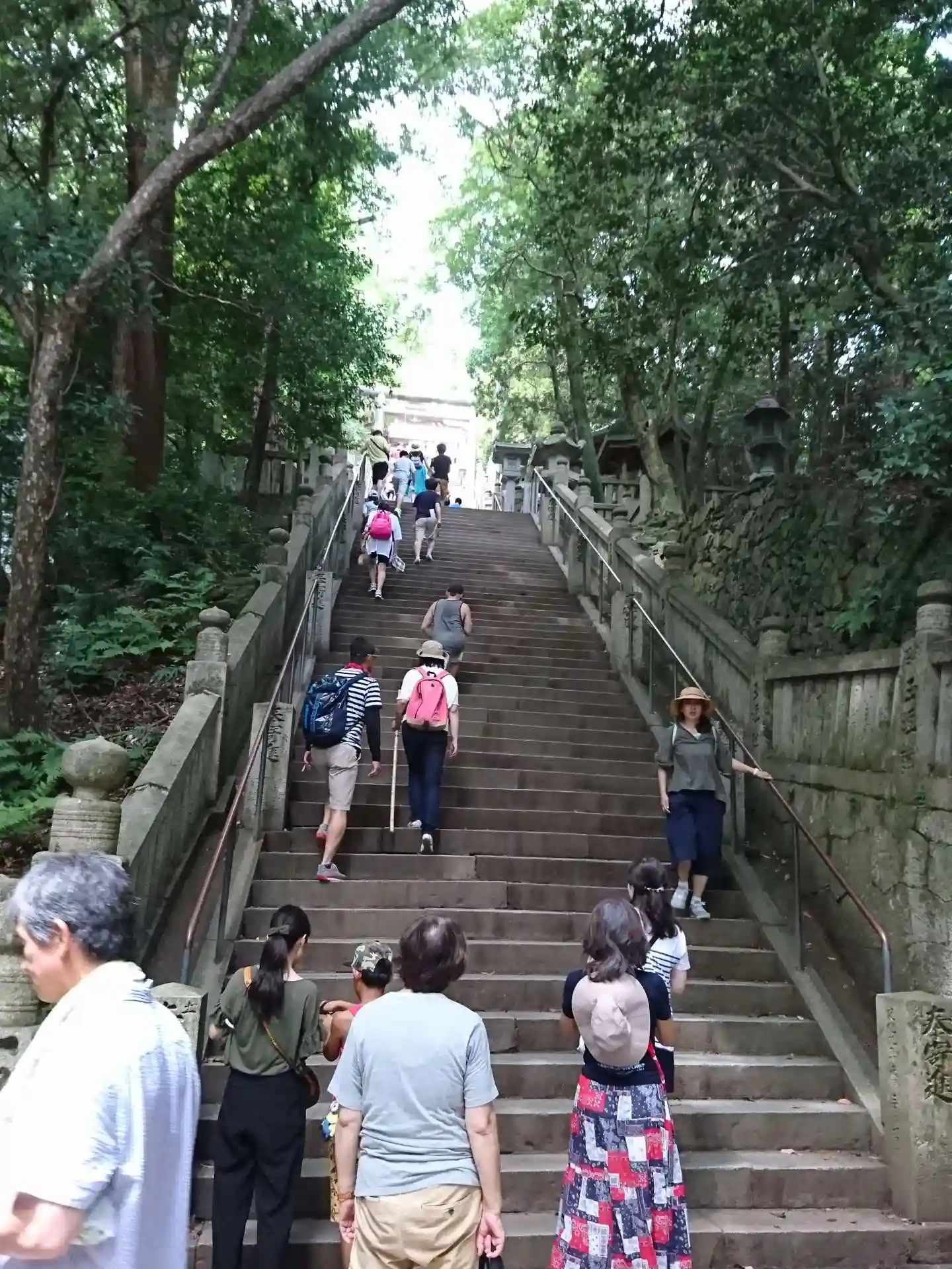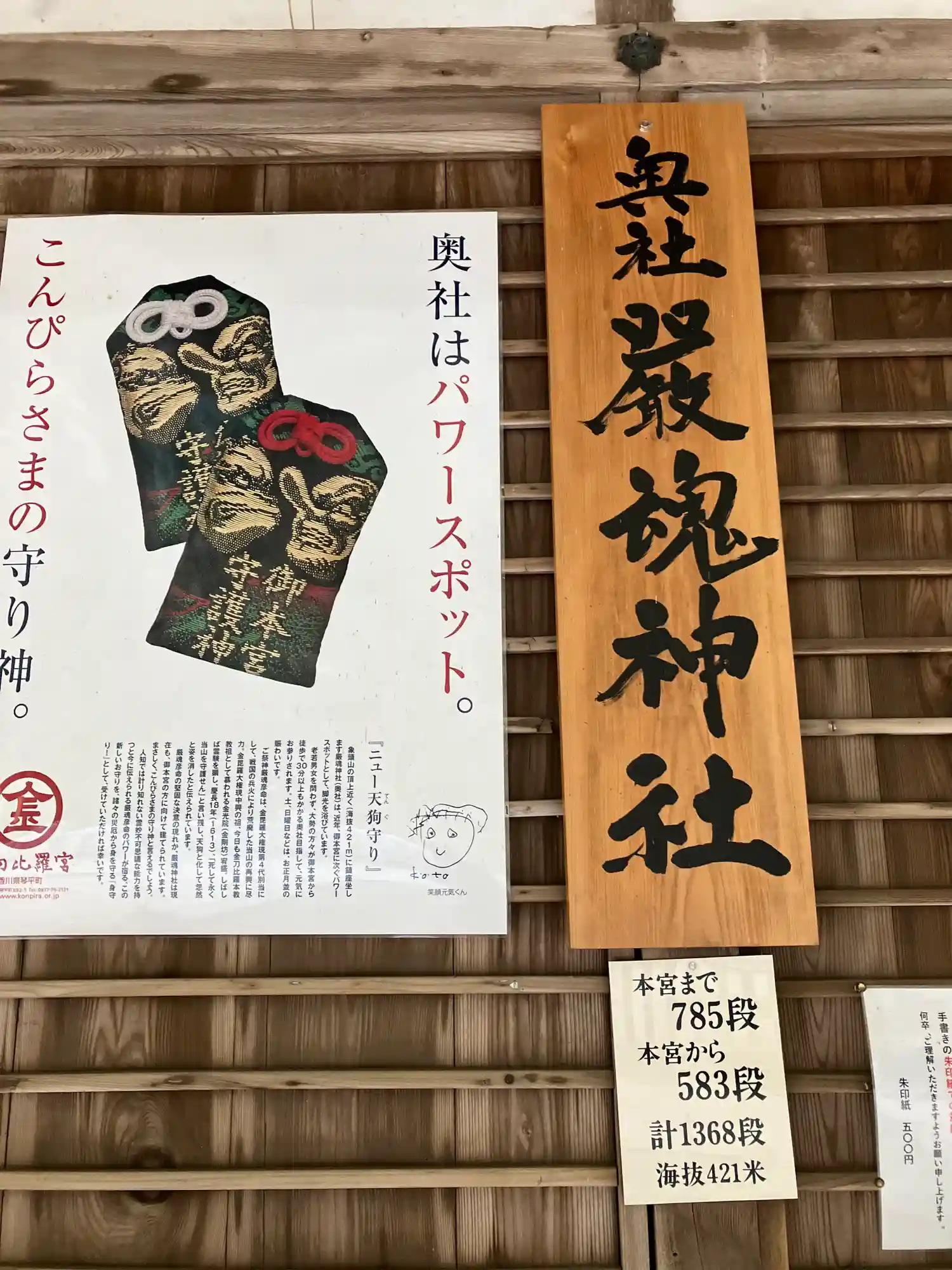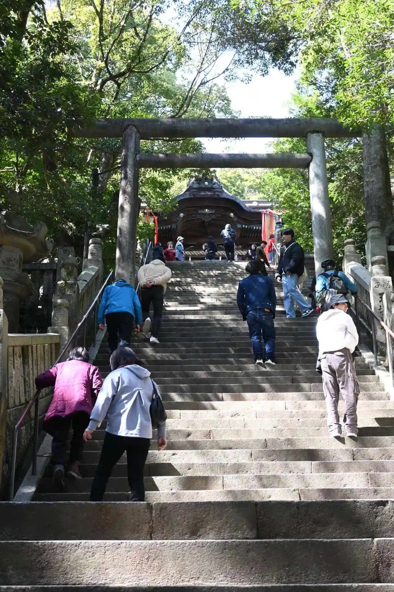 まず石段が365段、そこから中段が100くらい、最後に本殿までに130…