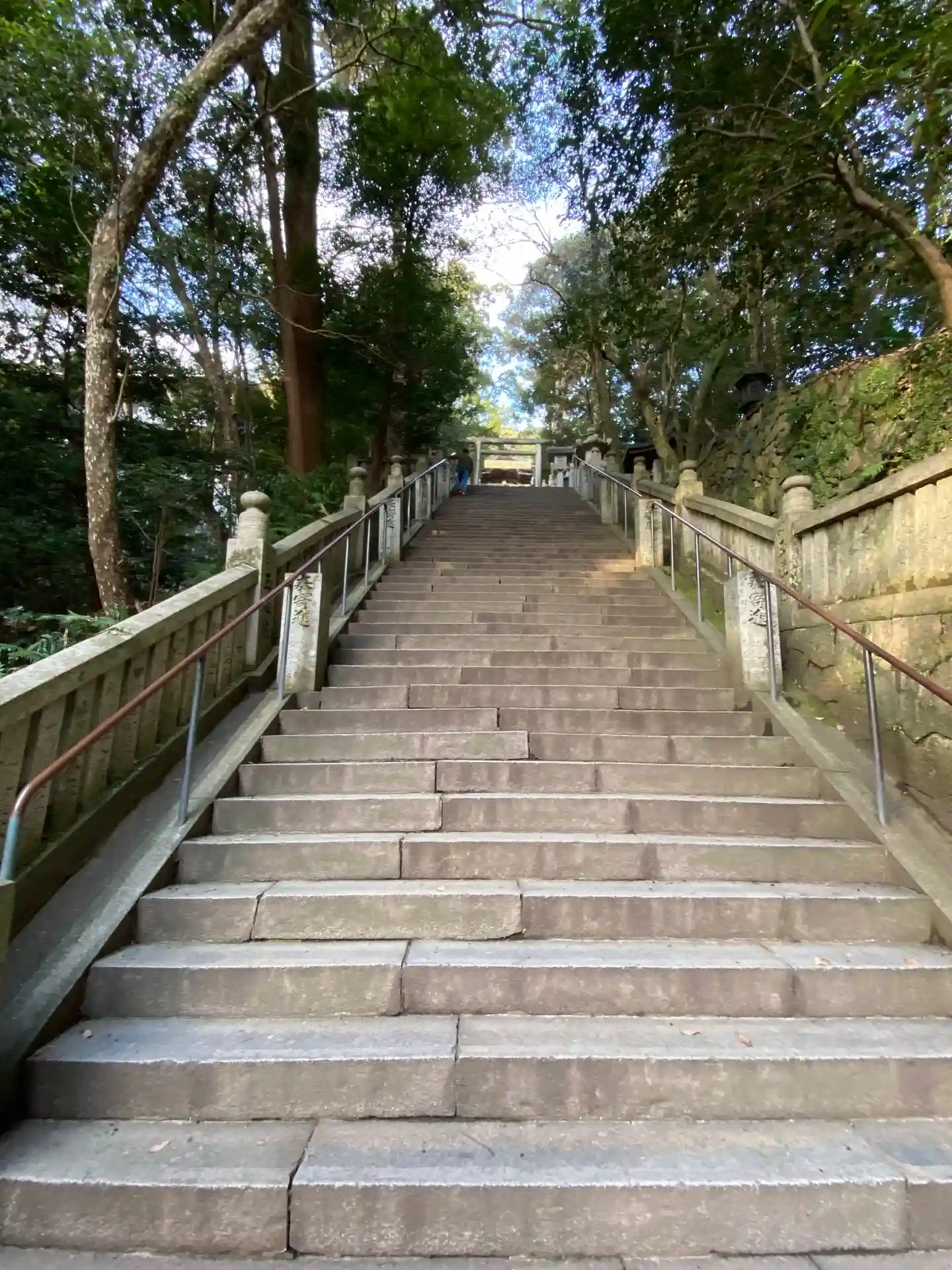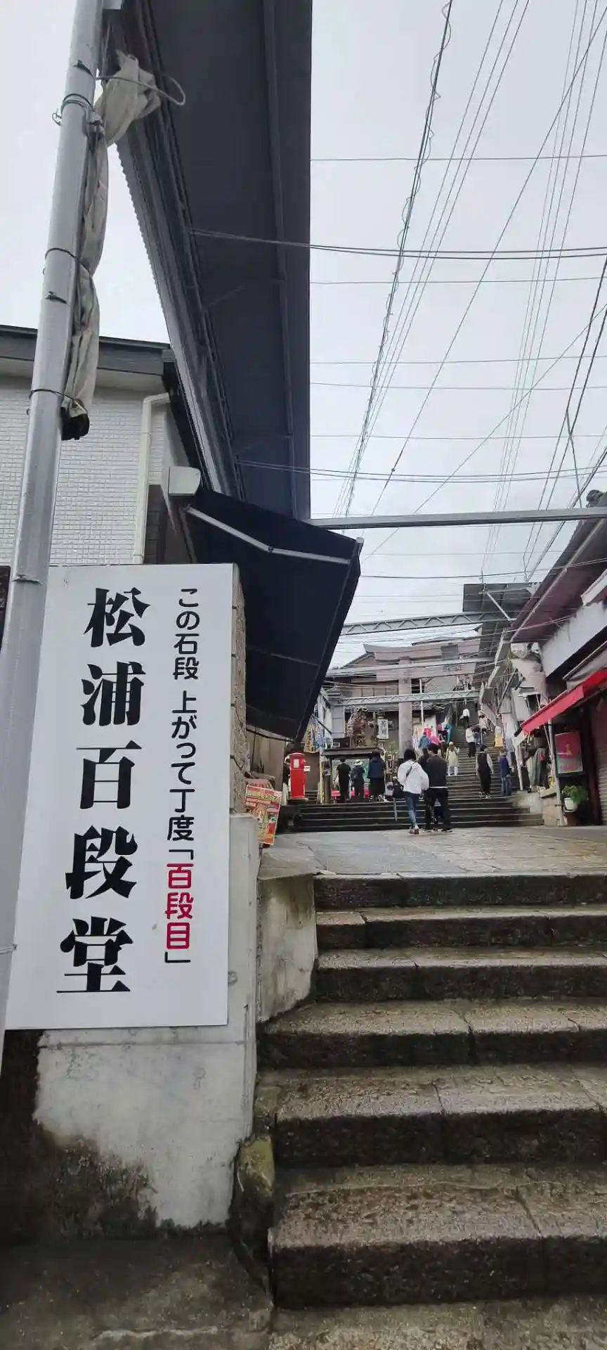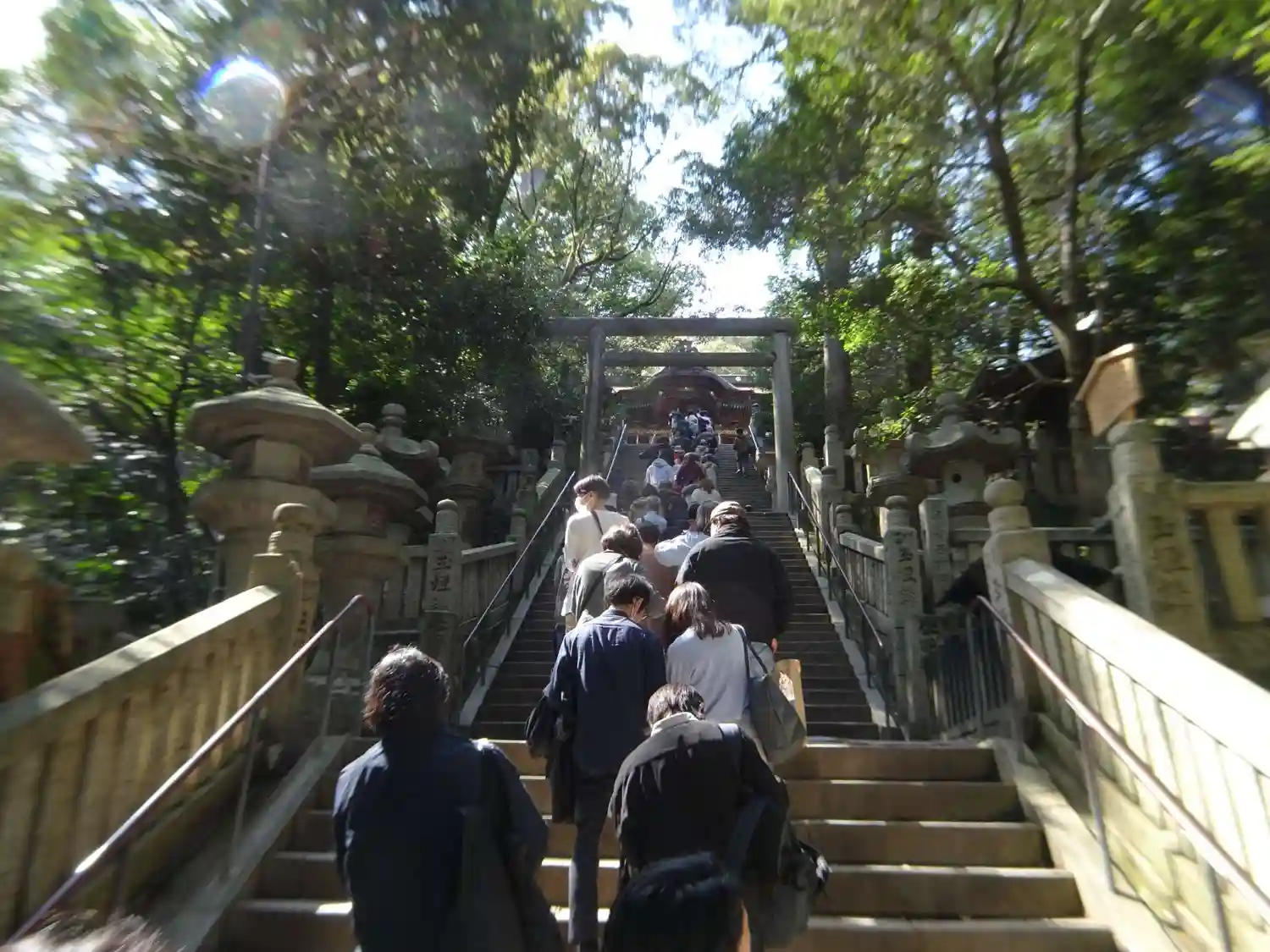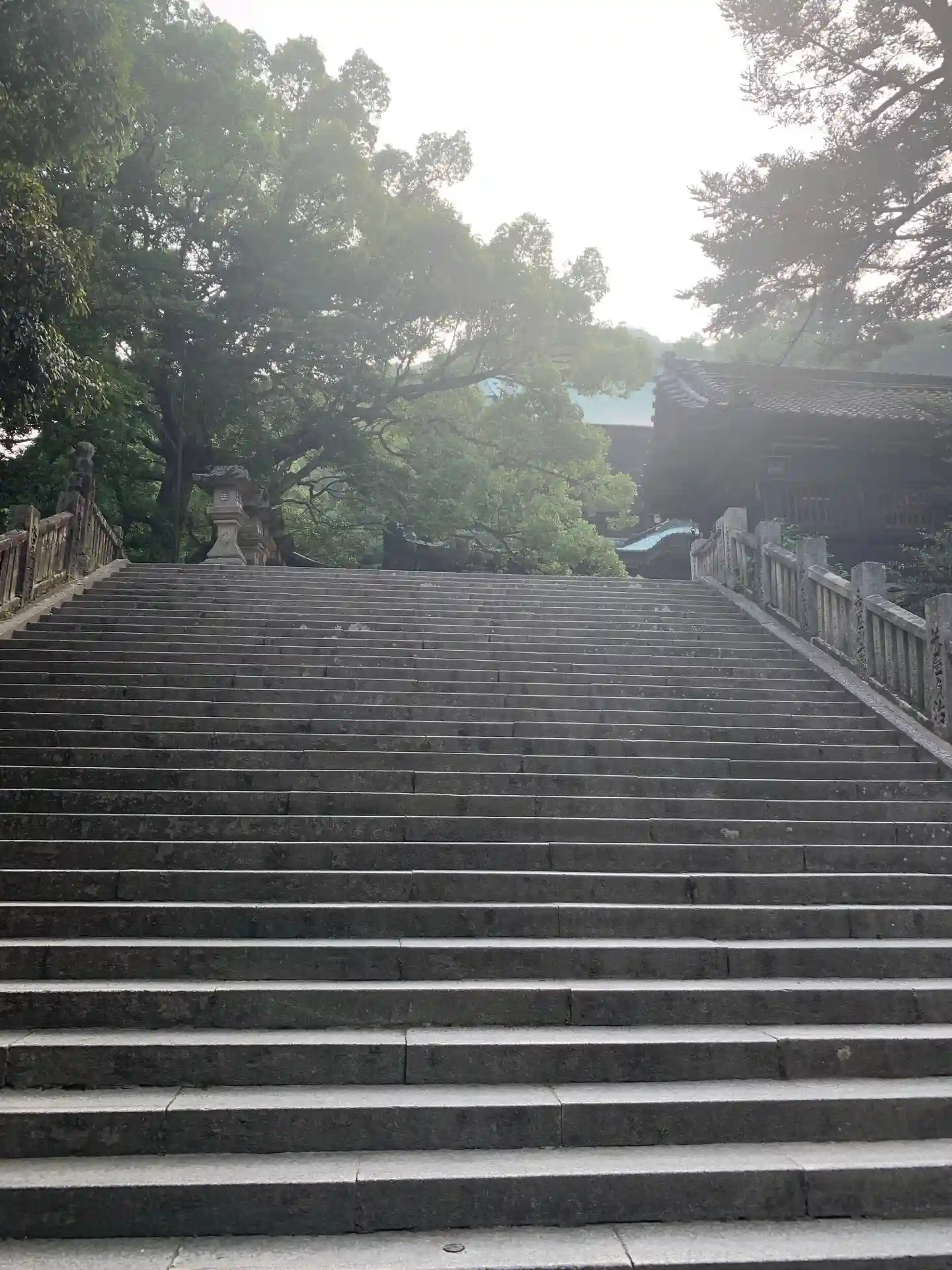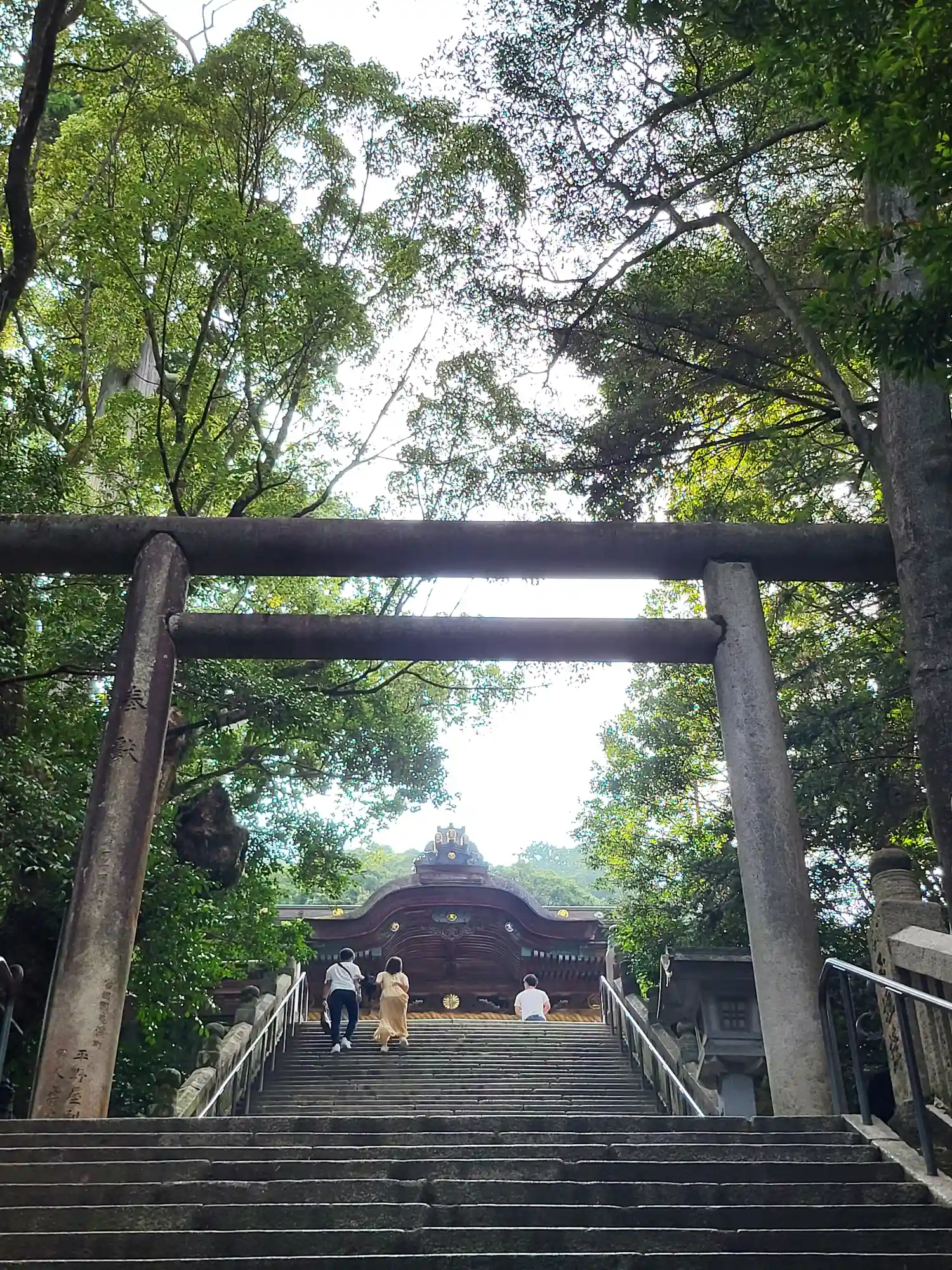 まず石段が365段、そこから中段が100くらい、最後に本殿までに130…