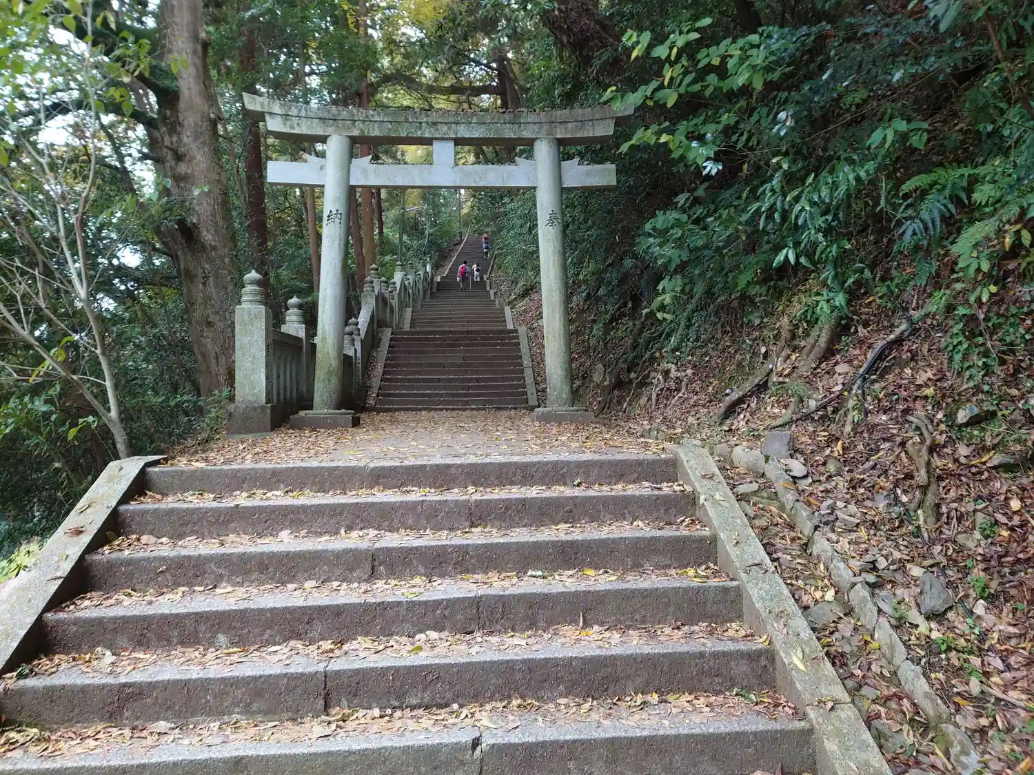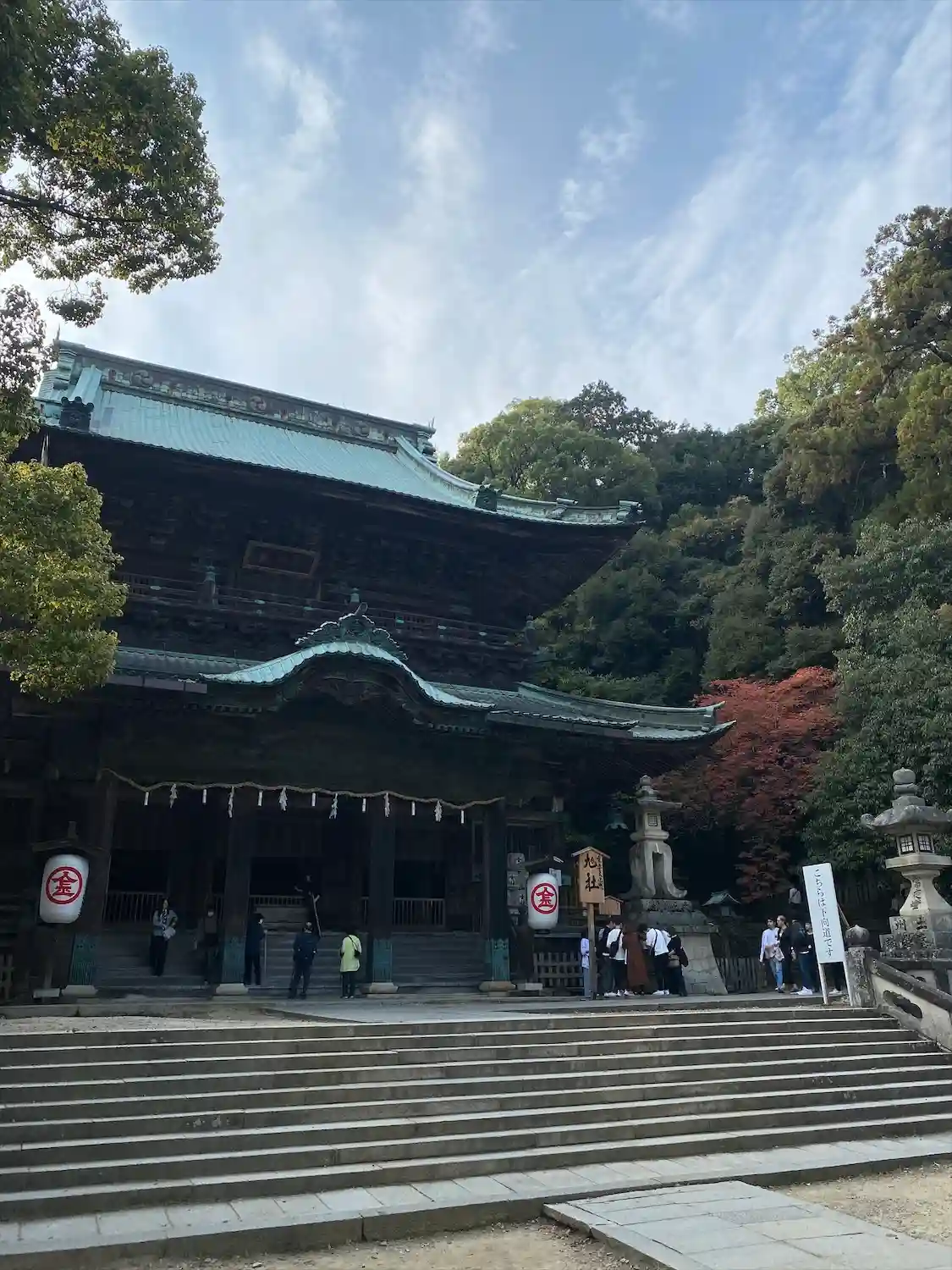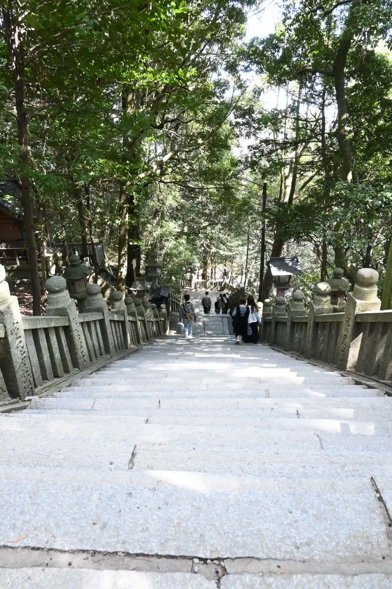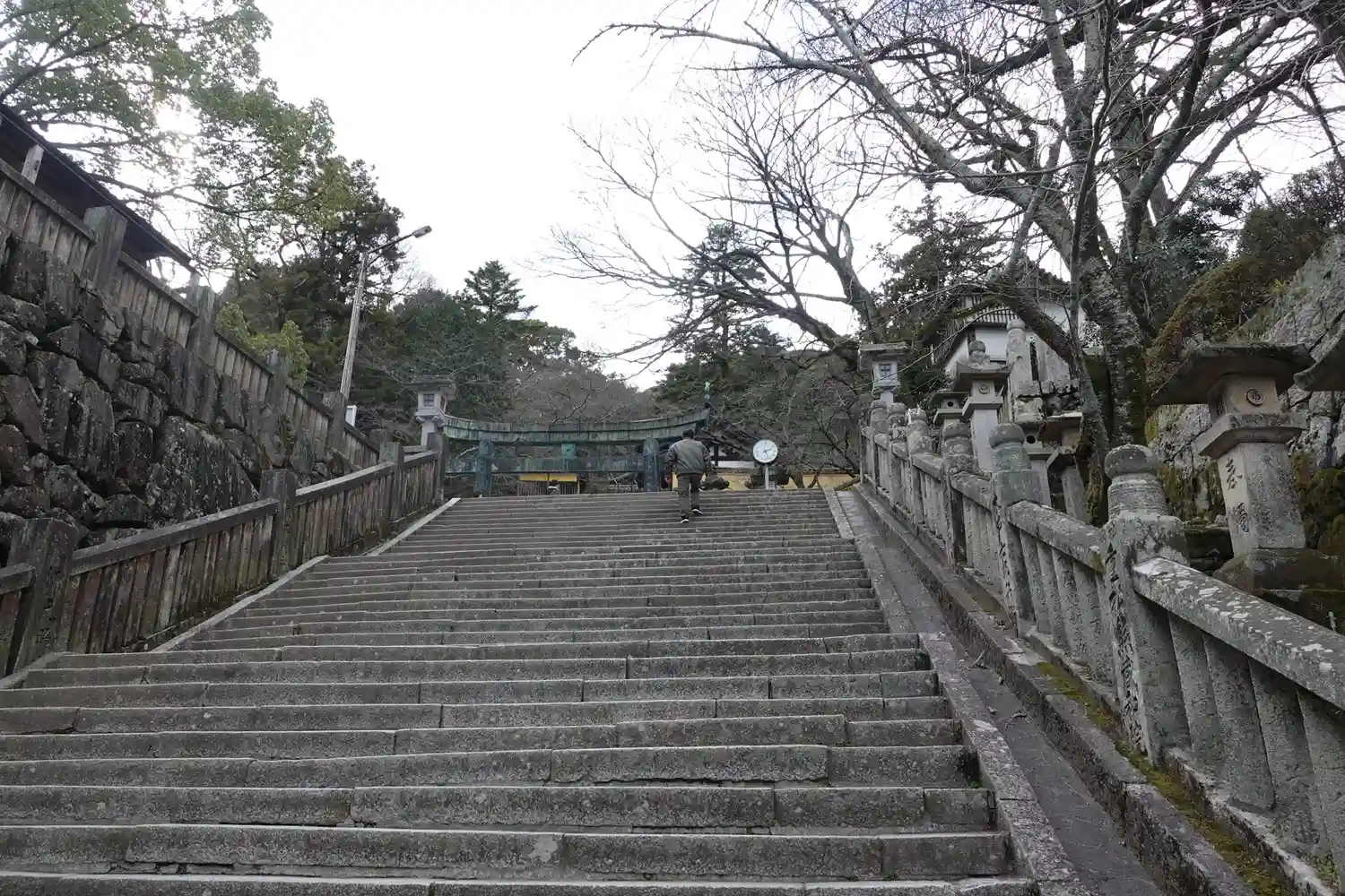 まず石段が365段、そこから中段が100くらい、最後に本殿までに130…