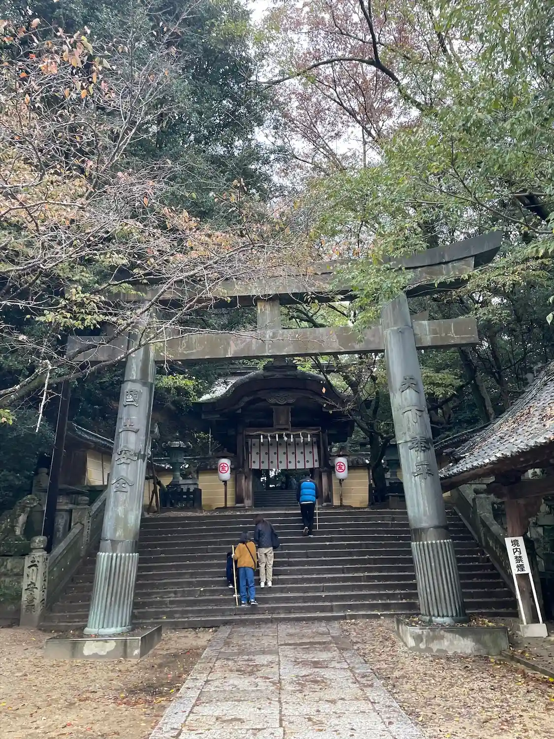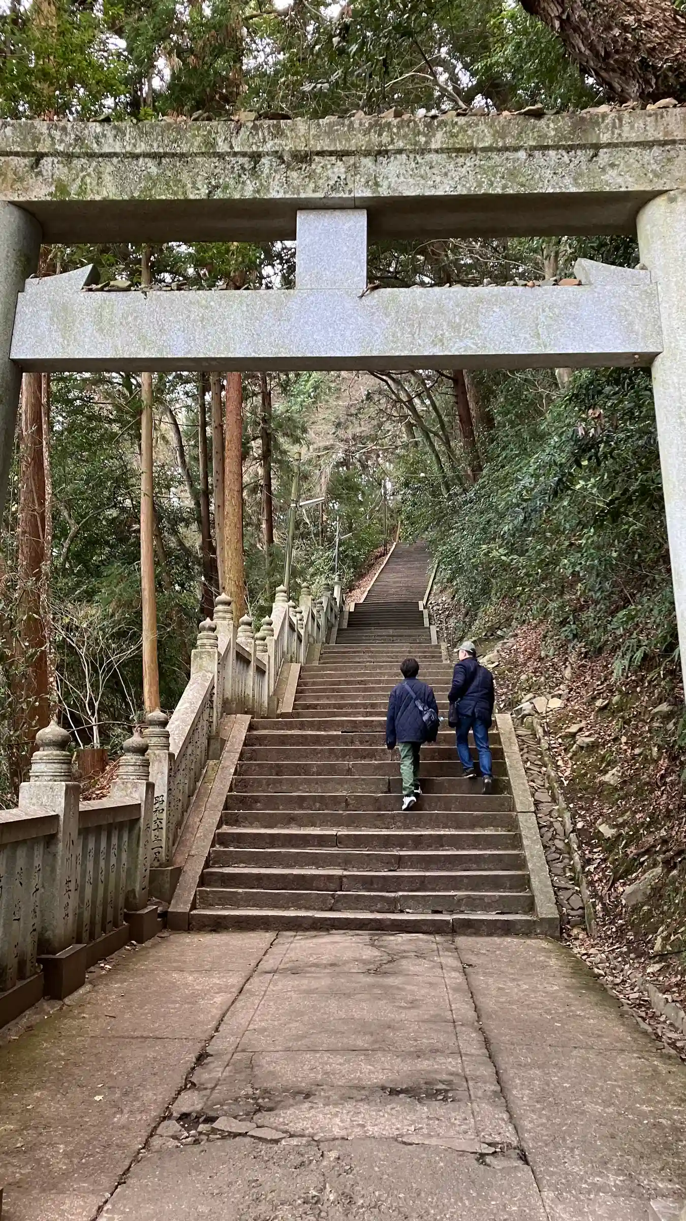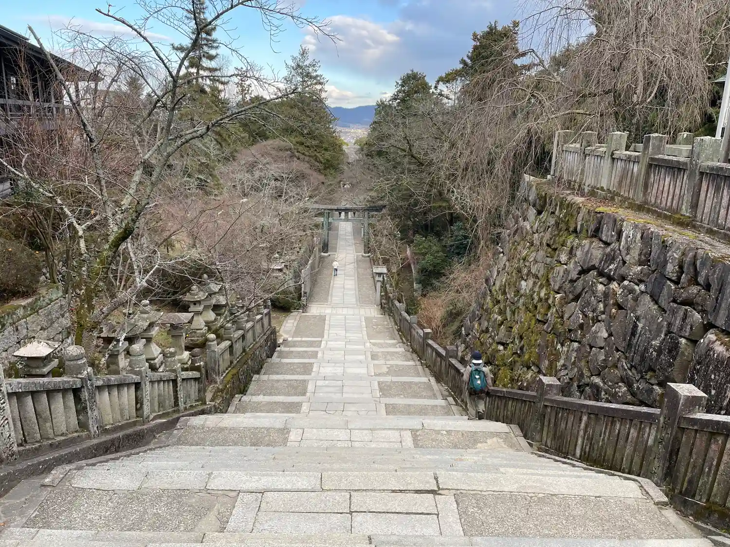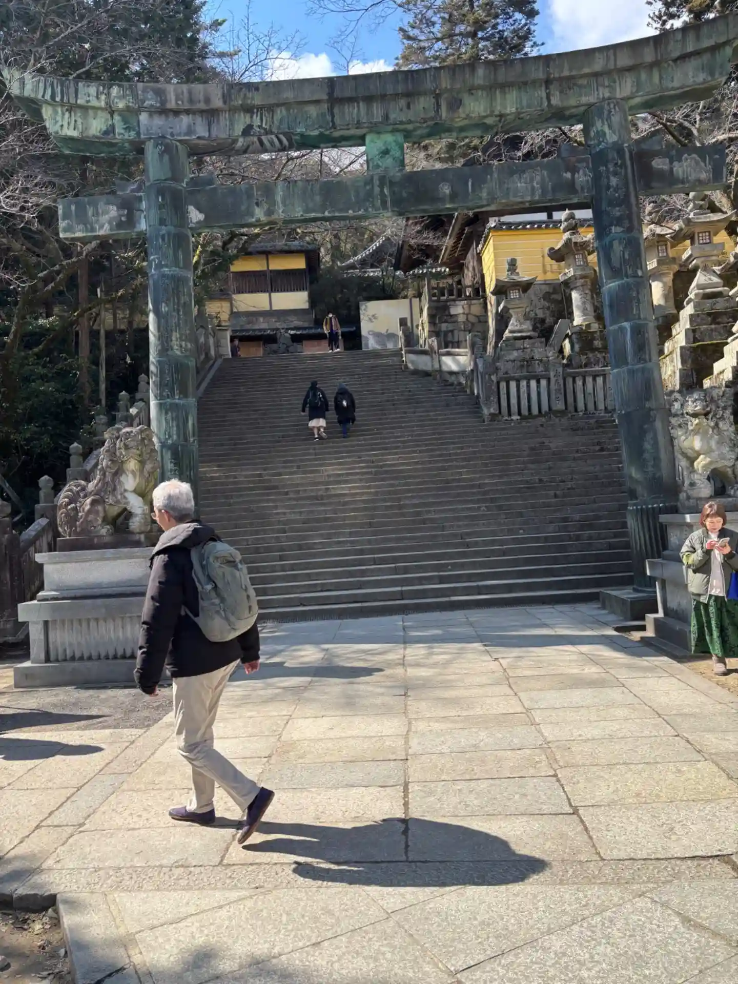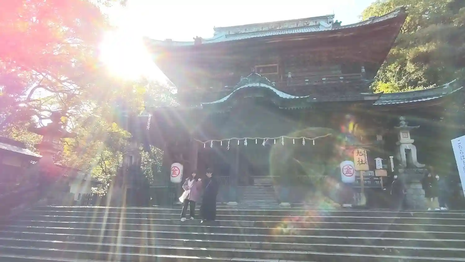 まず石段が365段、そこから中段が100くらい、最後に本殿までに130…