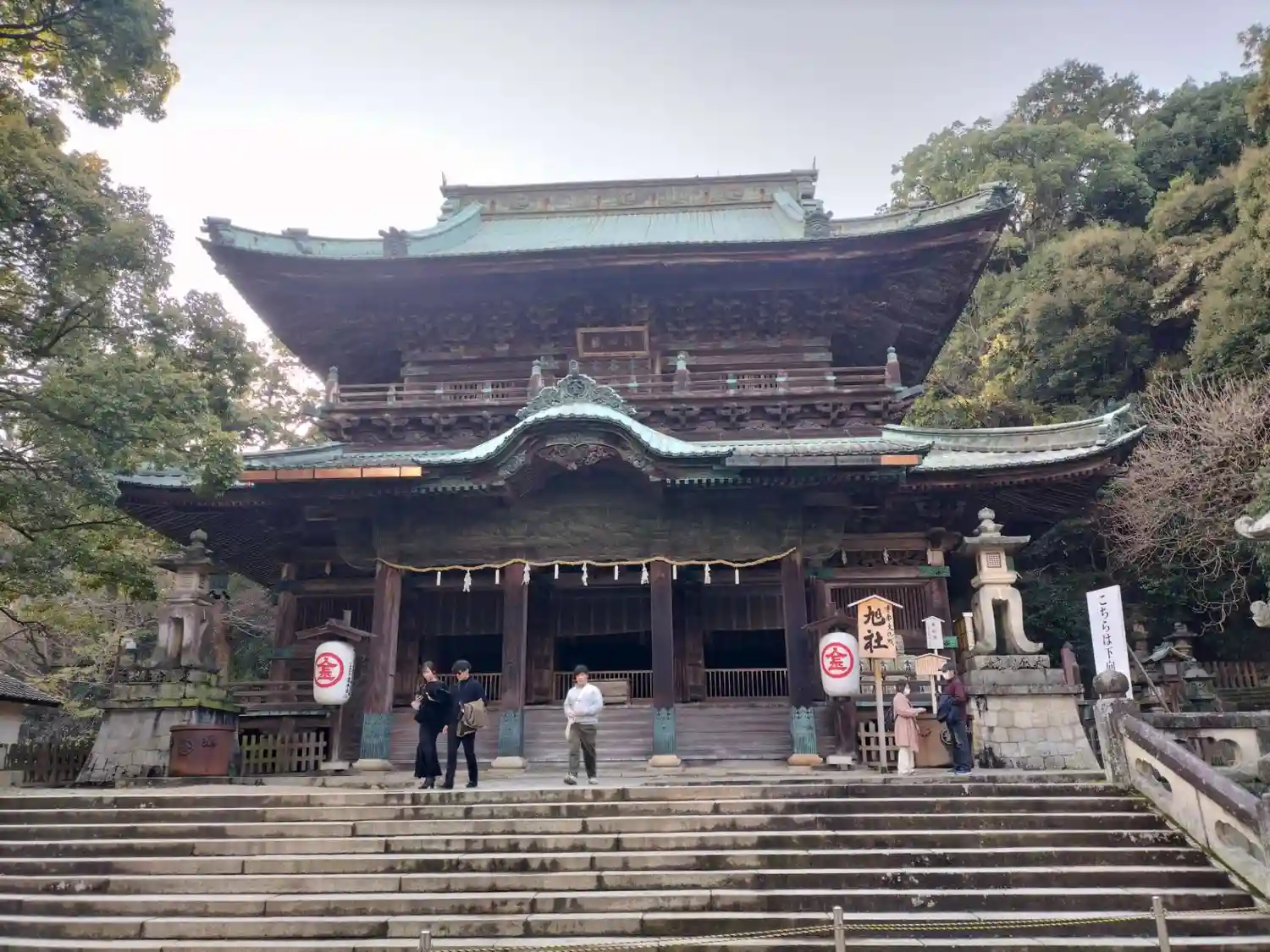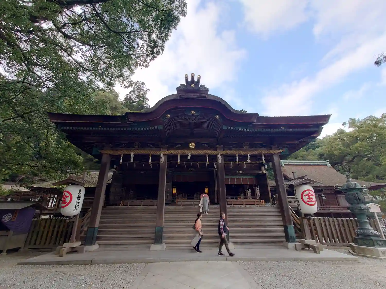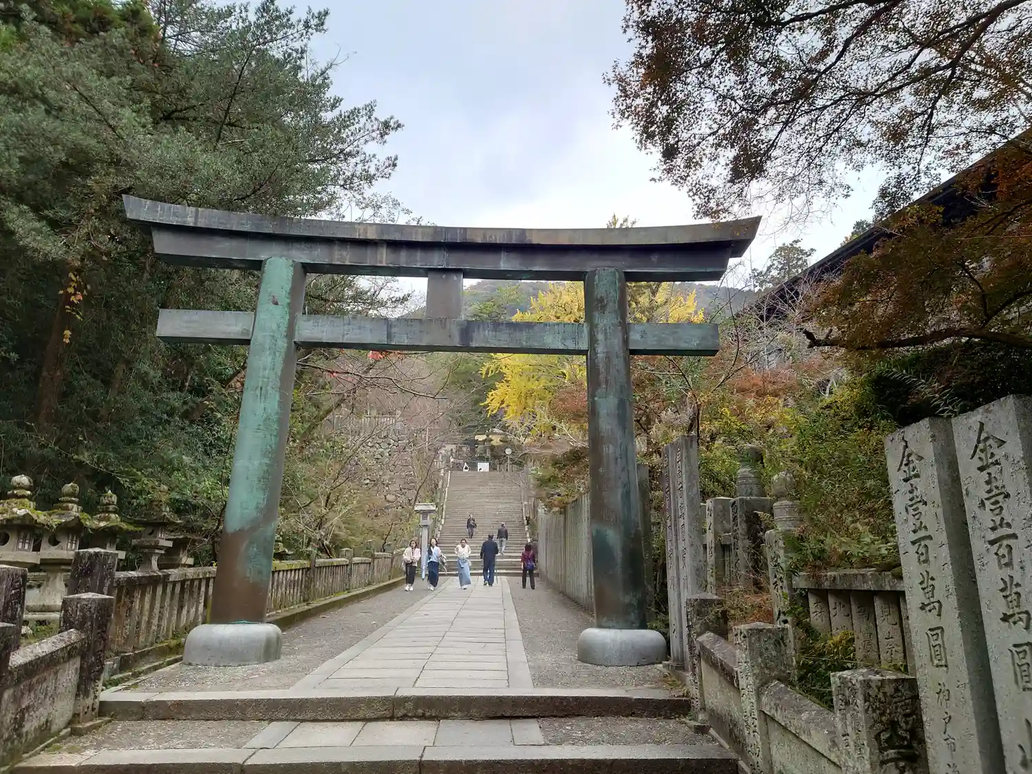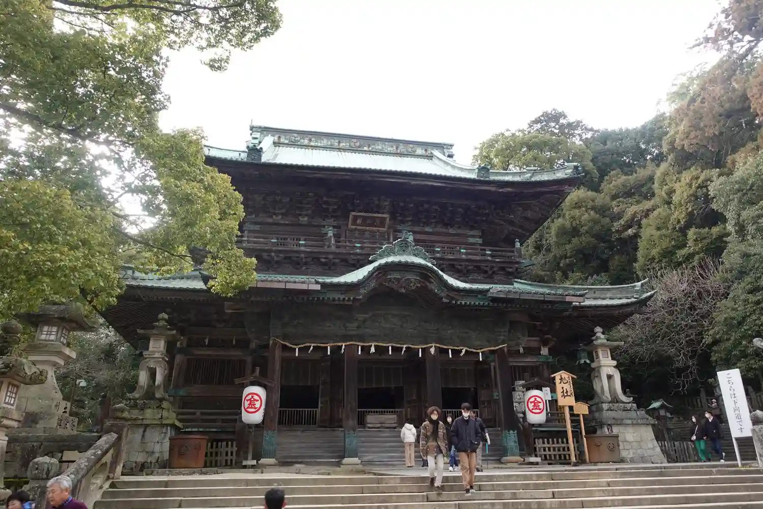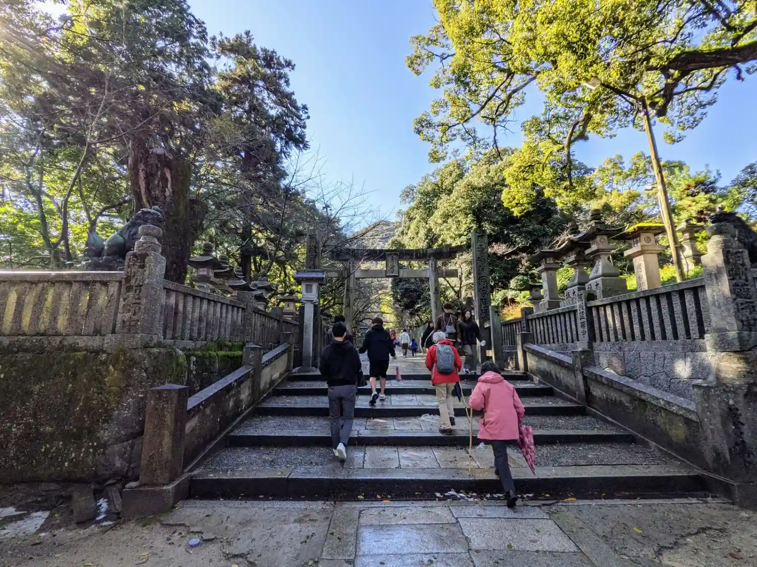 まず石段が365段、そこから中段が100くらい、最後に本殿までに130…