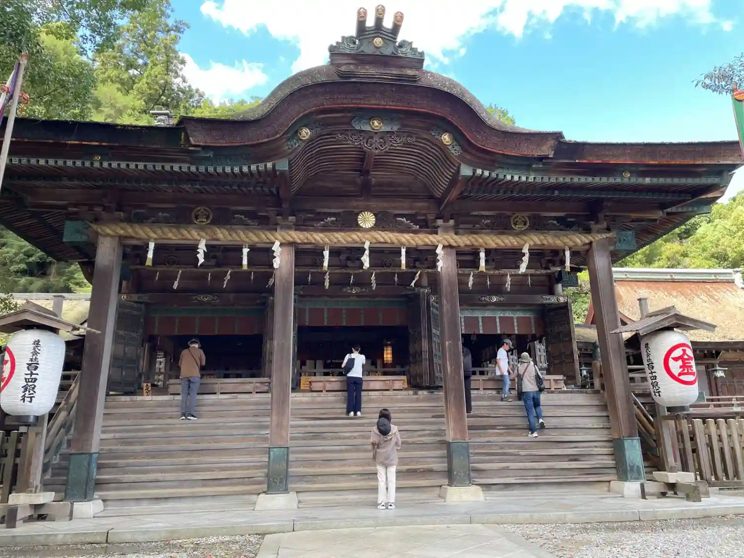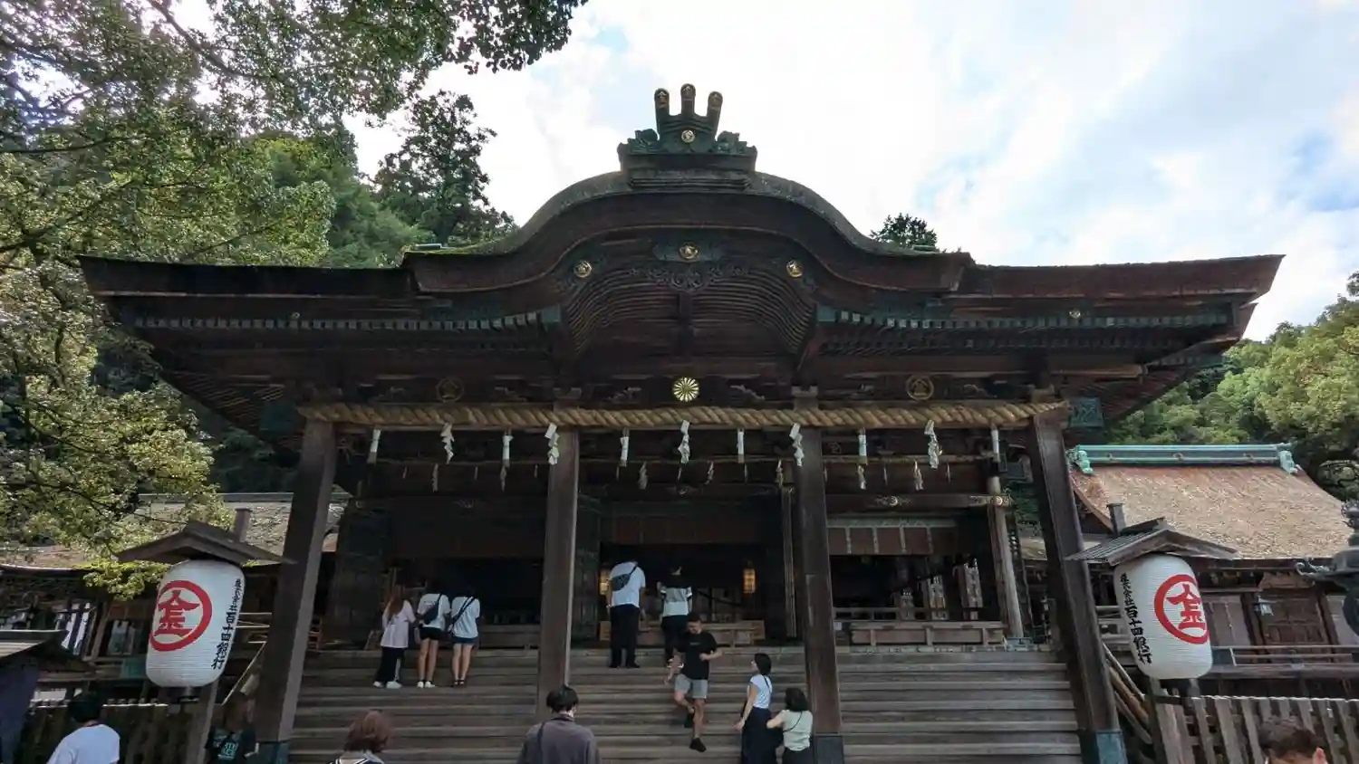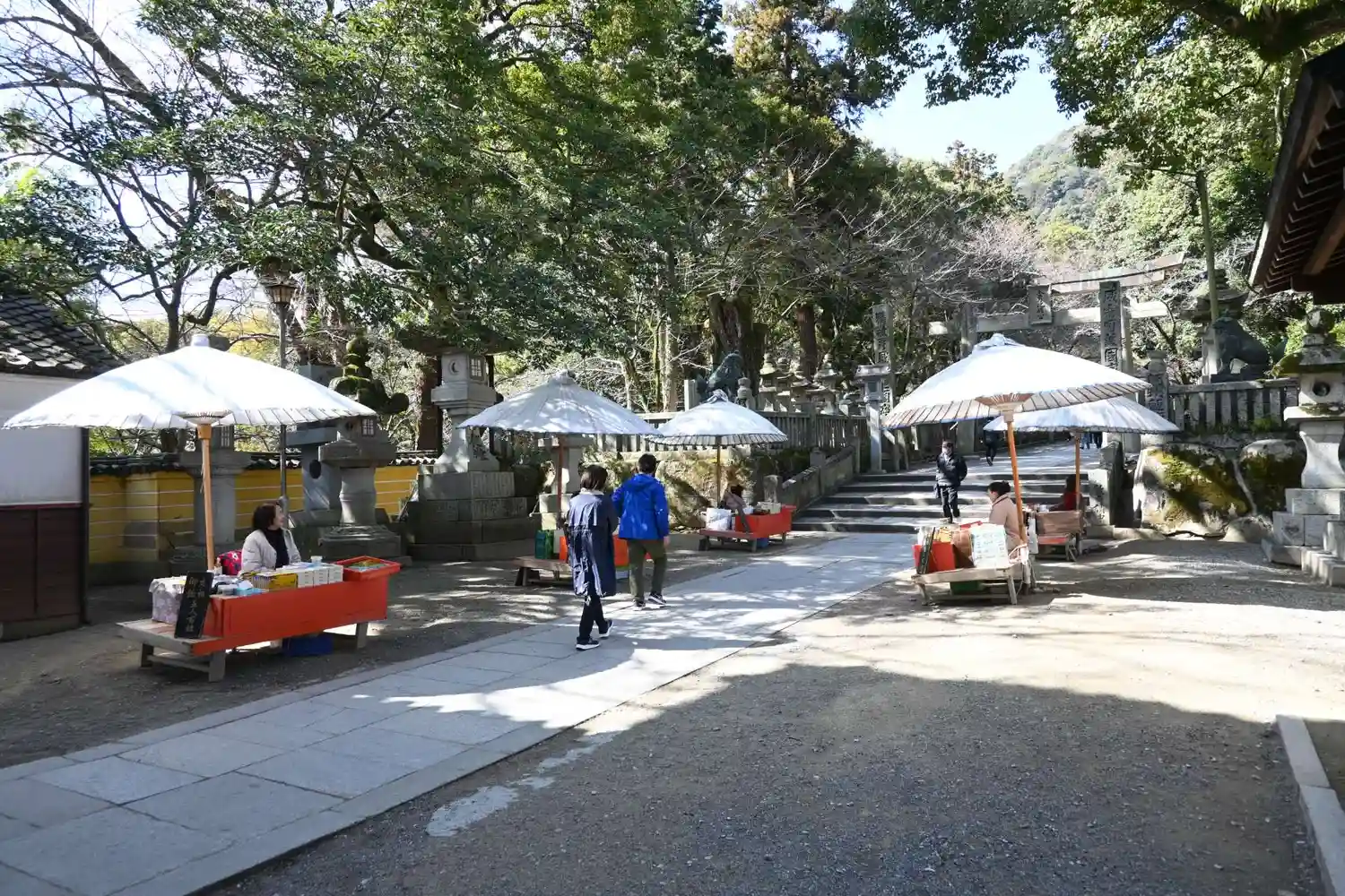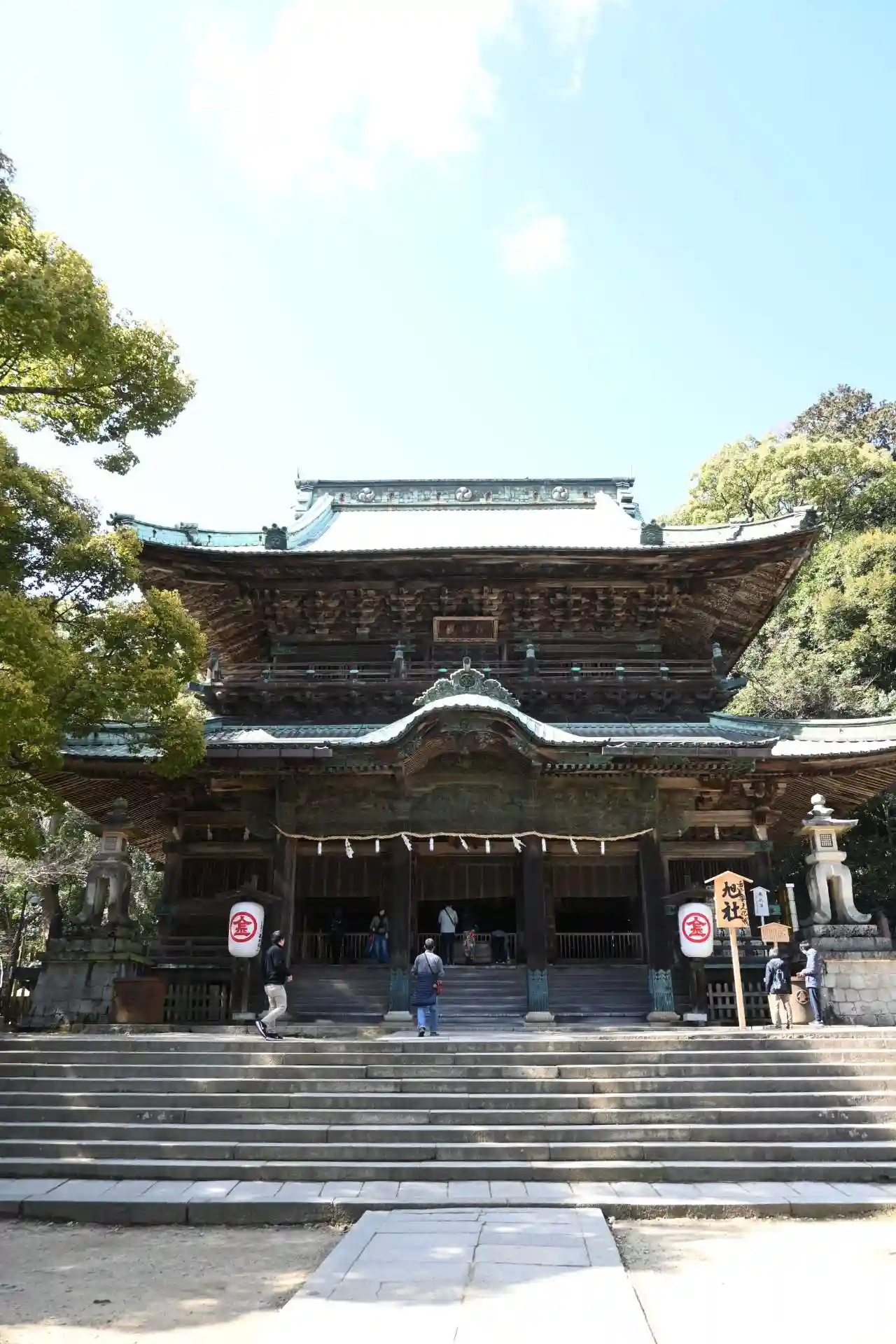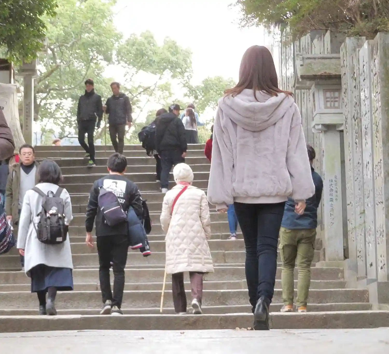 まず石段が365段、そこから中段が100くらい、最後に本殿までに130…