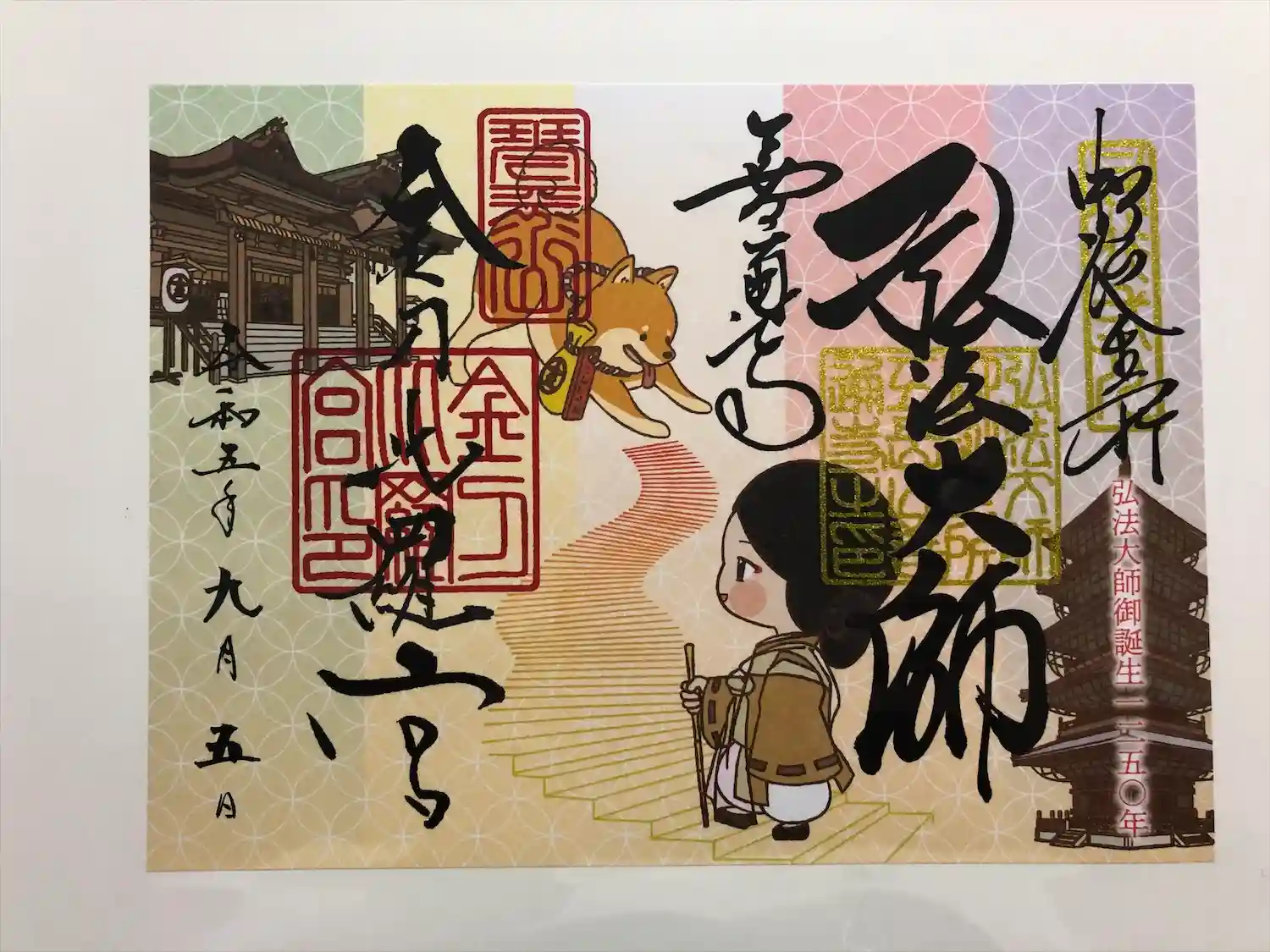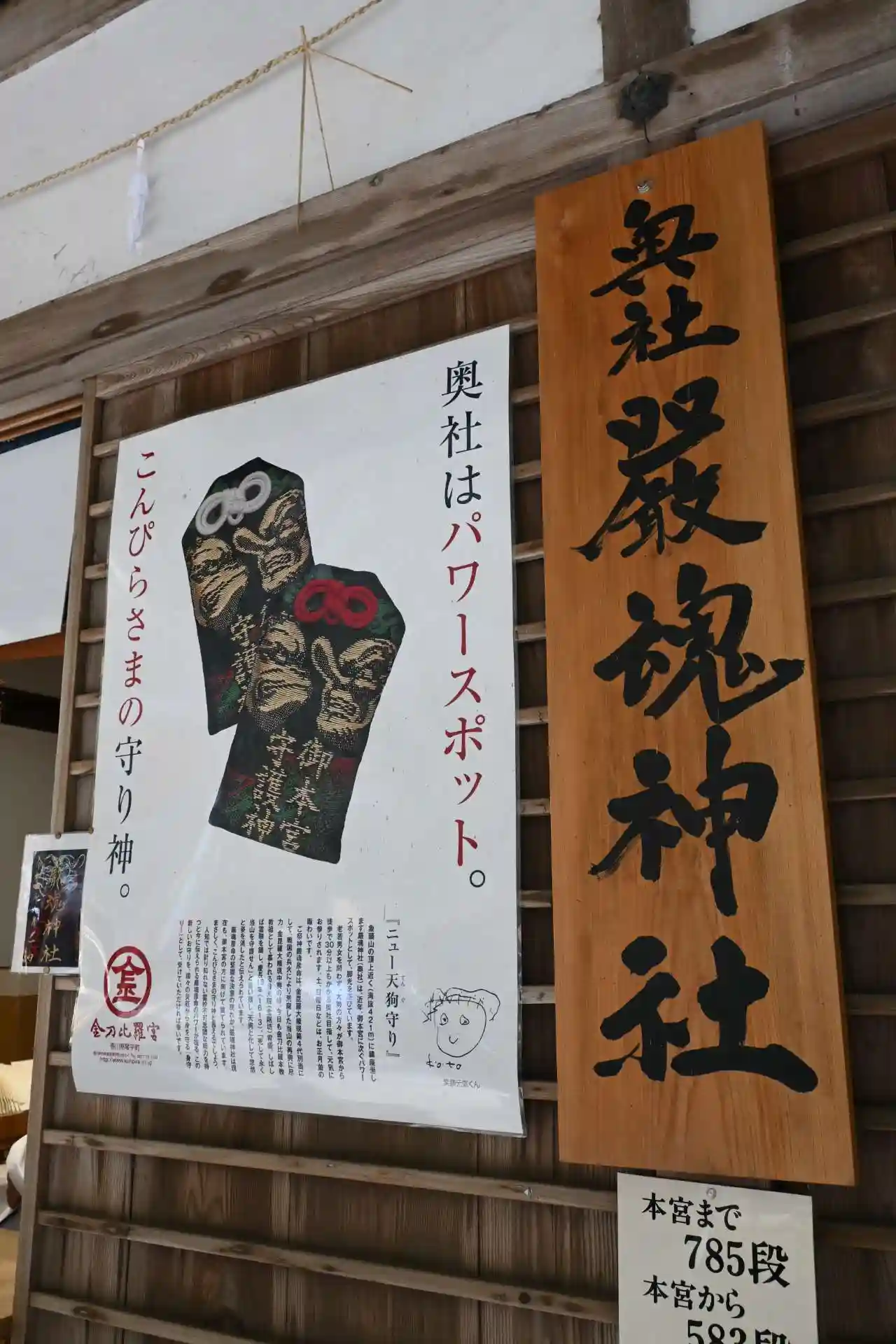 夏だったこともあり、階段が非常に大変でした。こんぴら狗のおみくじは、狗のお守り付き。杖は借りられま…