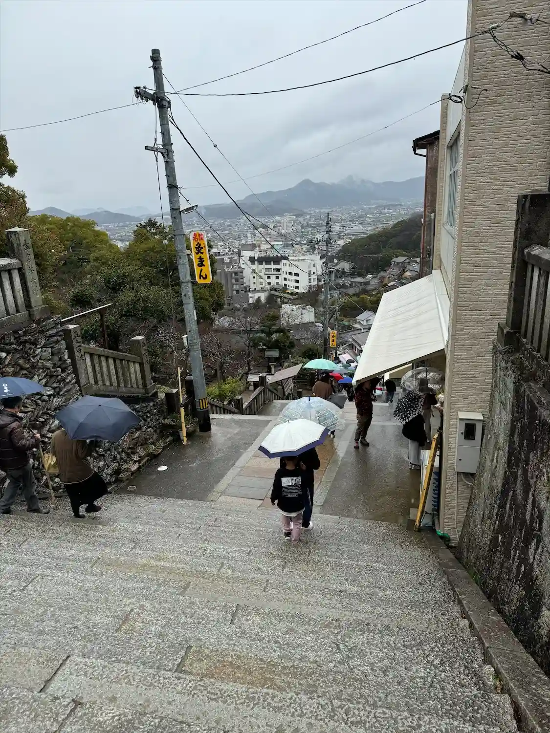 琴平駅近くのパーキングに停め、タクシーで中腹まで登りました