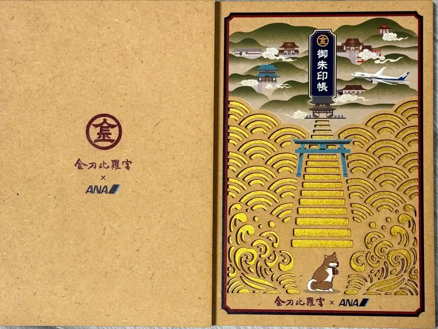 航空会社のANAとコラボ企画により作成された御朱印帳です。ページ数は46+2(両面表紙裏分)