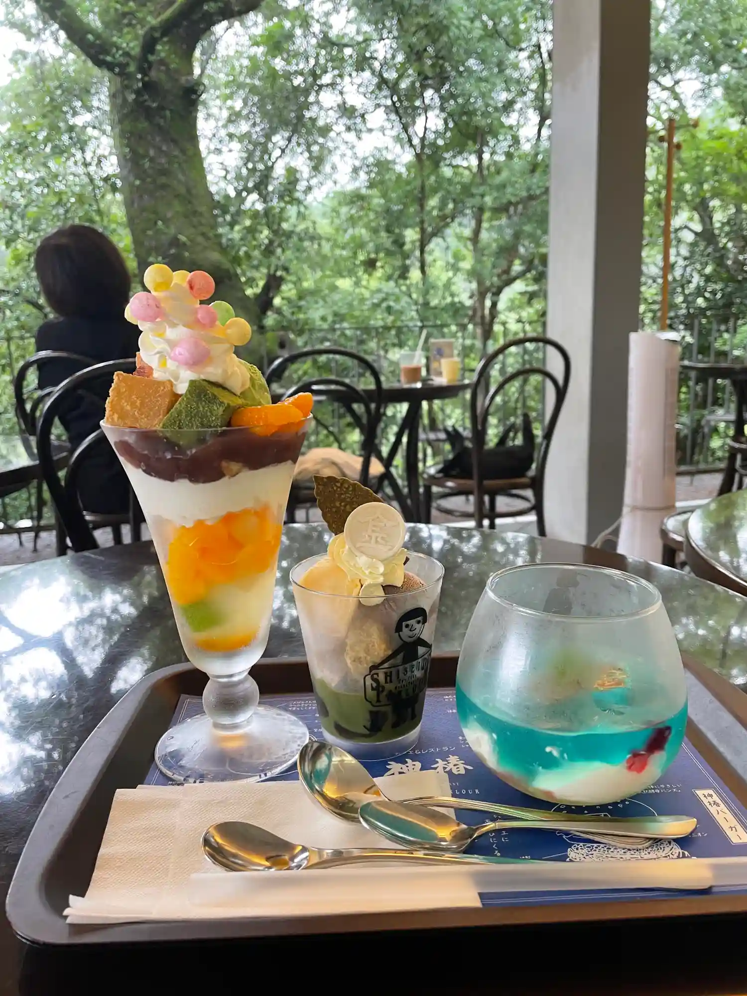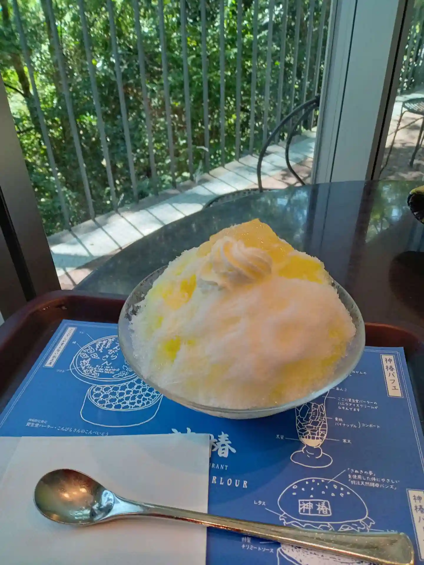 降りてきてから石段500段目の神椿で、神椿パフェを食べました。つかれた体に甘いものが最高!