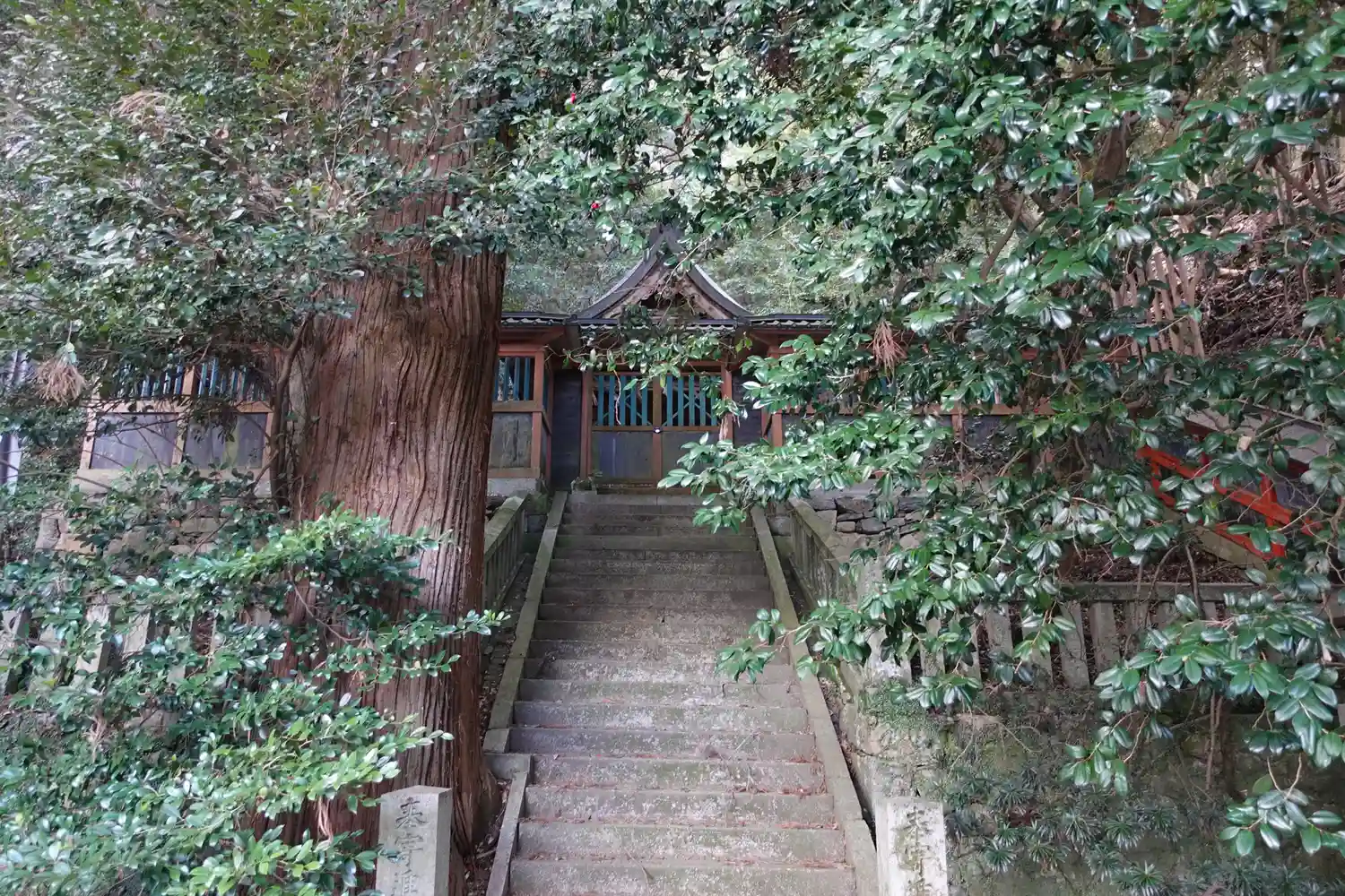 駐車場充実。階段をとにかくずーっと登っていくので体力勝負。ただ階段は綺麗なの…