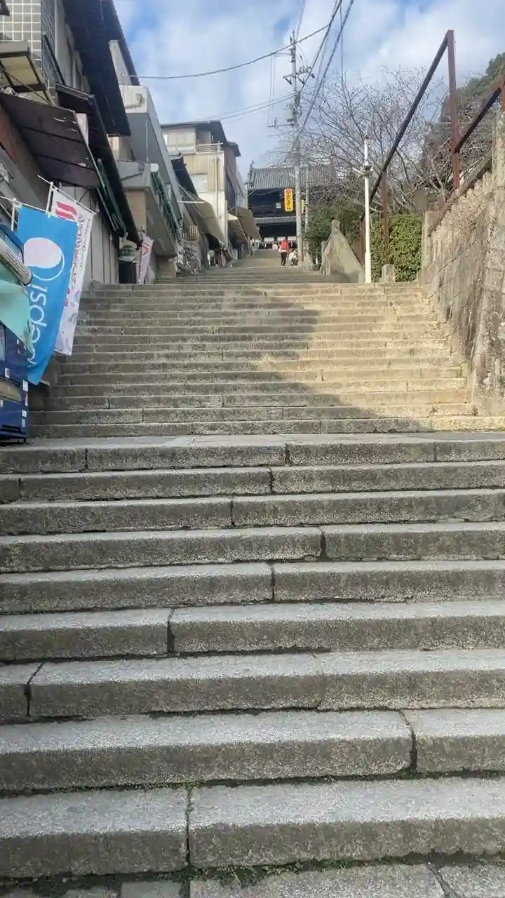 初のお参りとなりました。本堂まで785段の階段上がります。商店街からのスタートです。本堂まて歩き、…