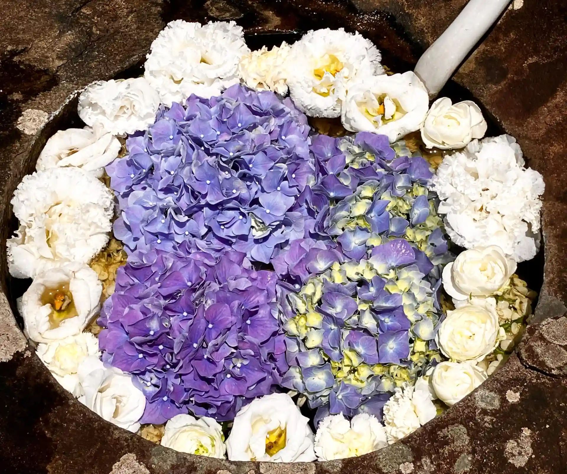 境内に、御誕生花手水💐を生けています