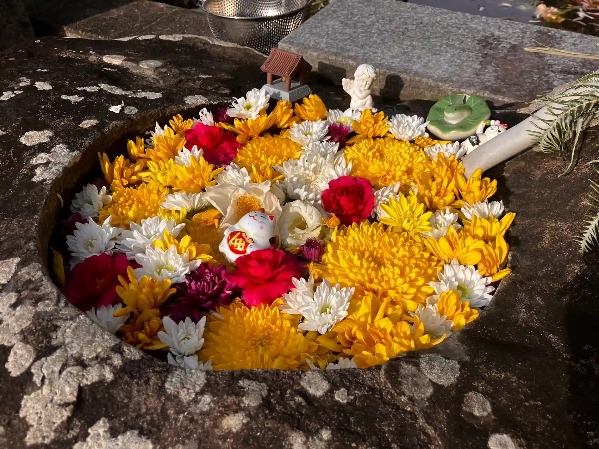 境内に、賀春🎍花手水💐を生けています