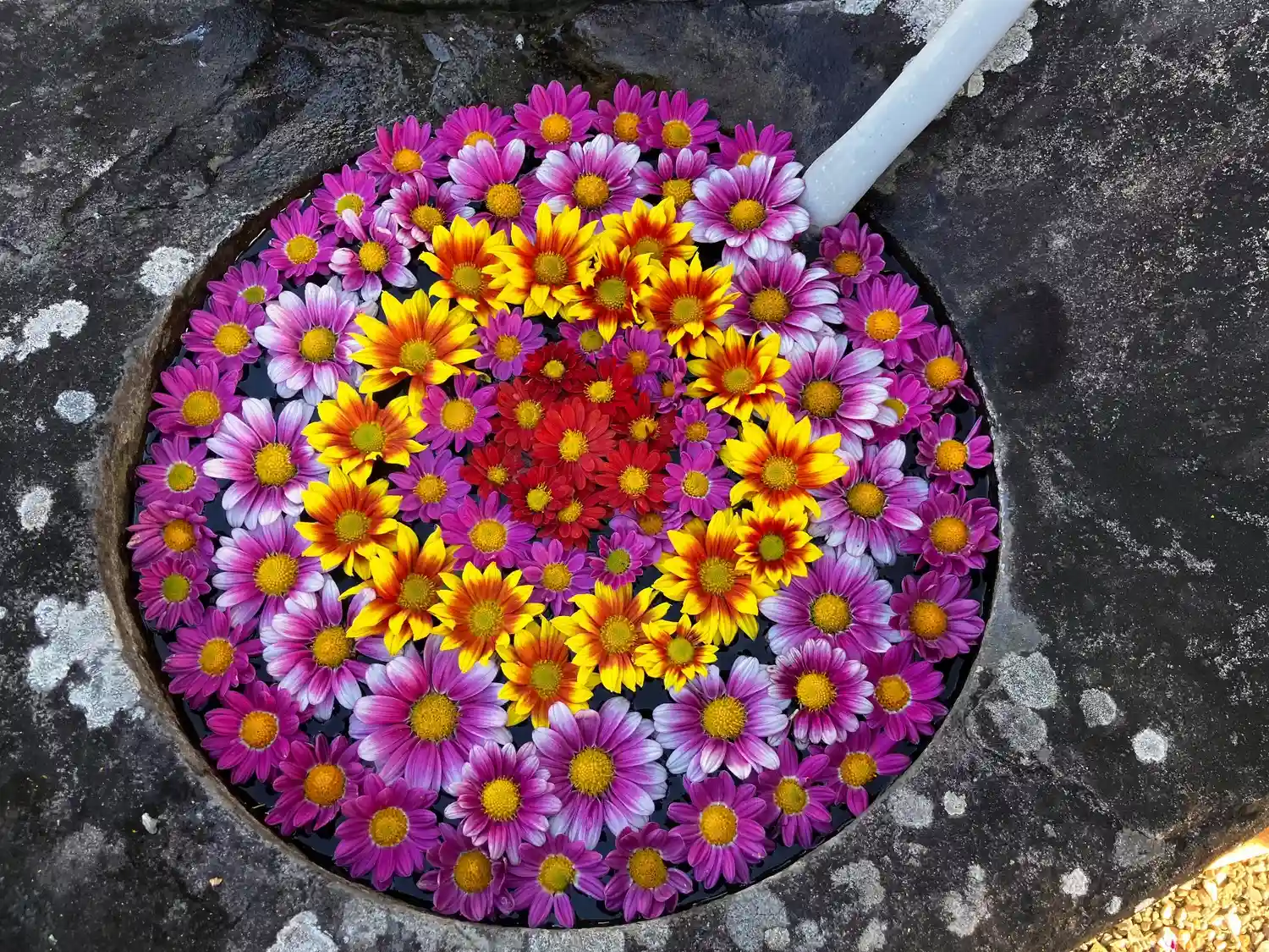 境内に、花手水💐を生けました