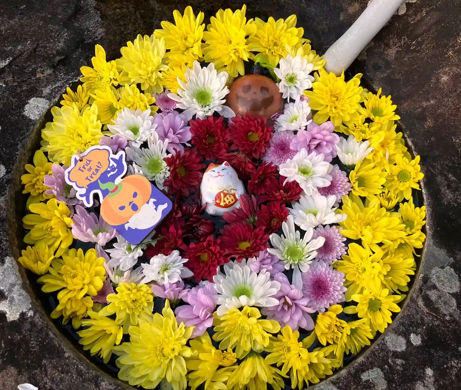 境内にハロウィン🎃花手水🎃を生けています
