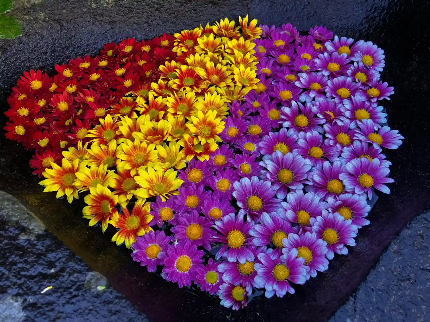本堂前に花手水💐を生けました