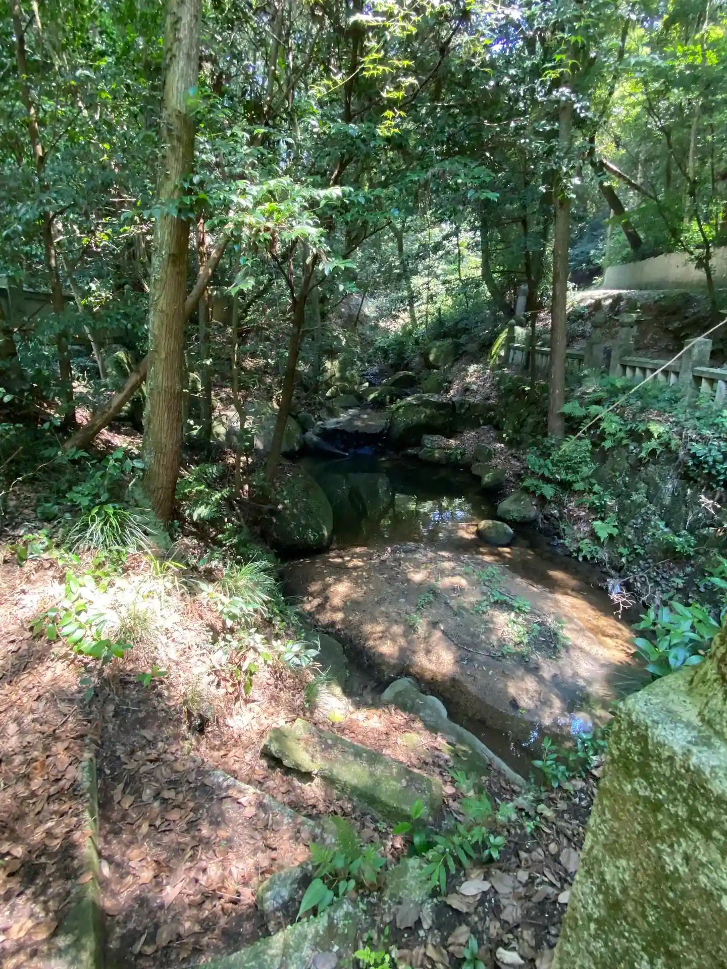 御本殿南側に鰻淵と産霊社、千五百皇子社が御座います