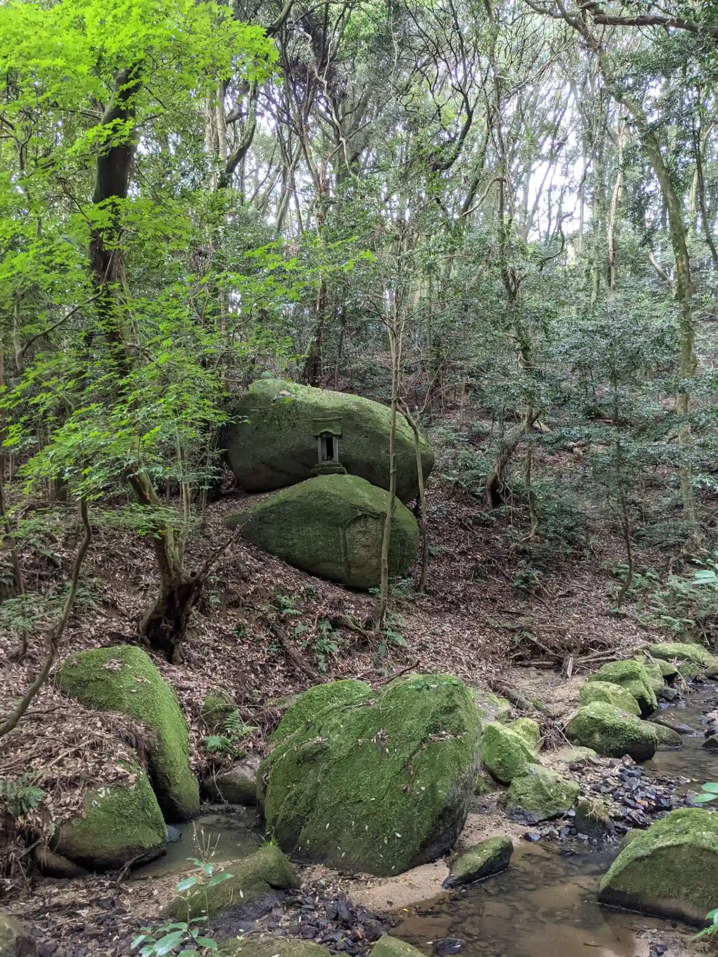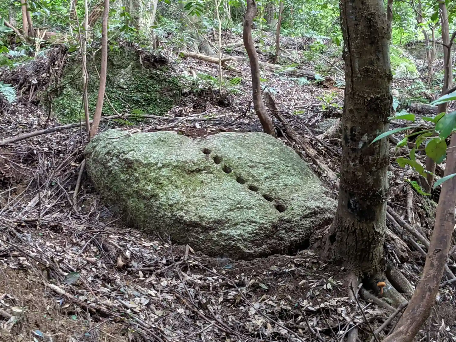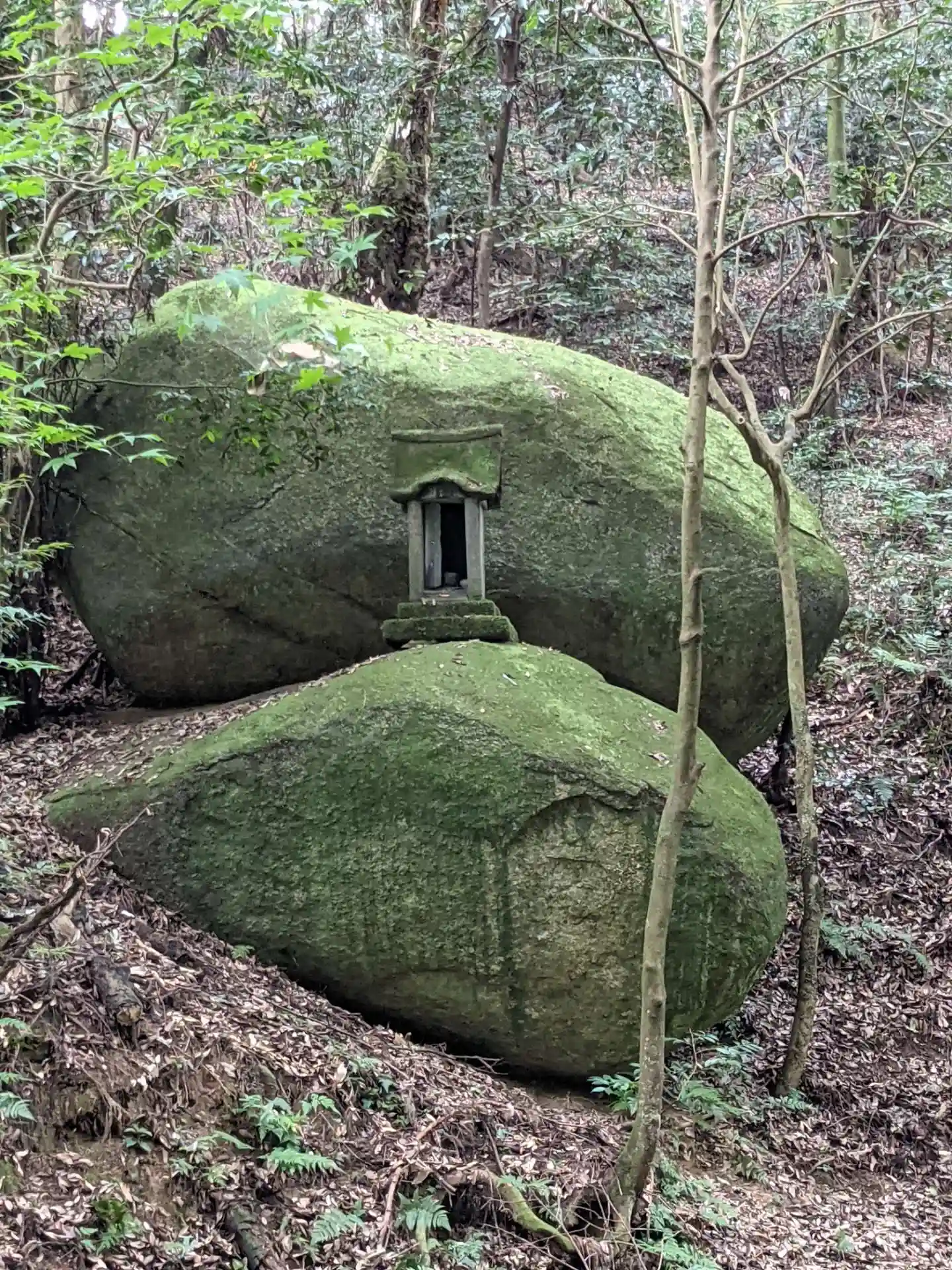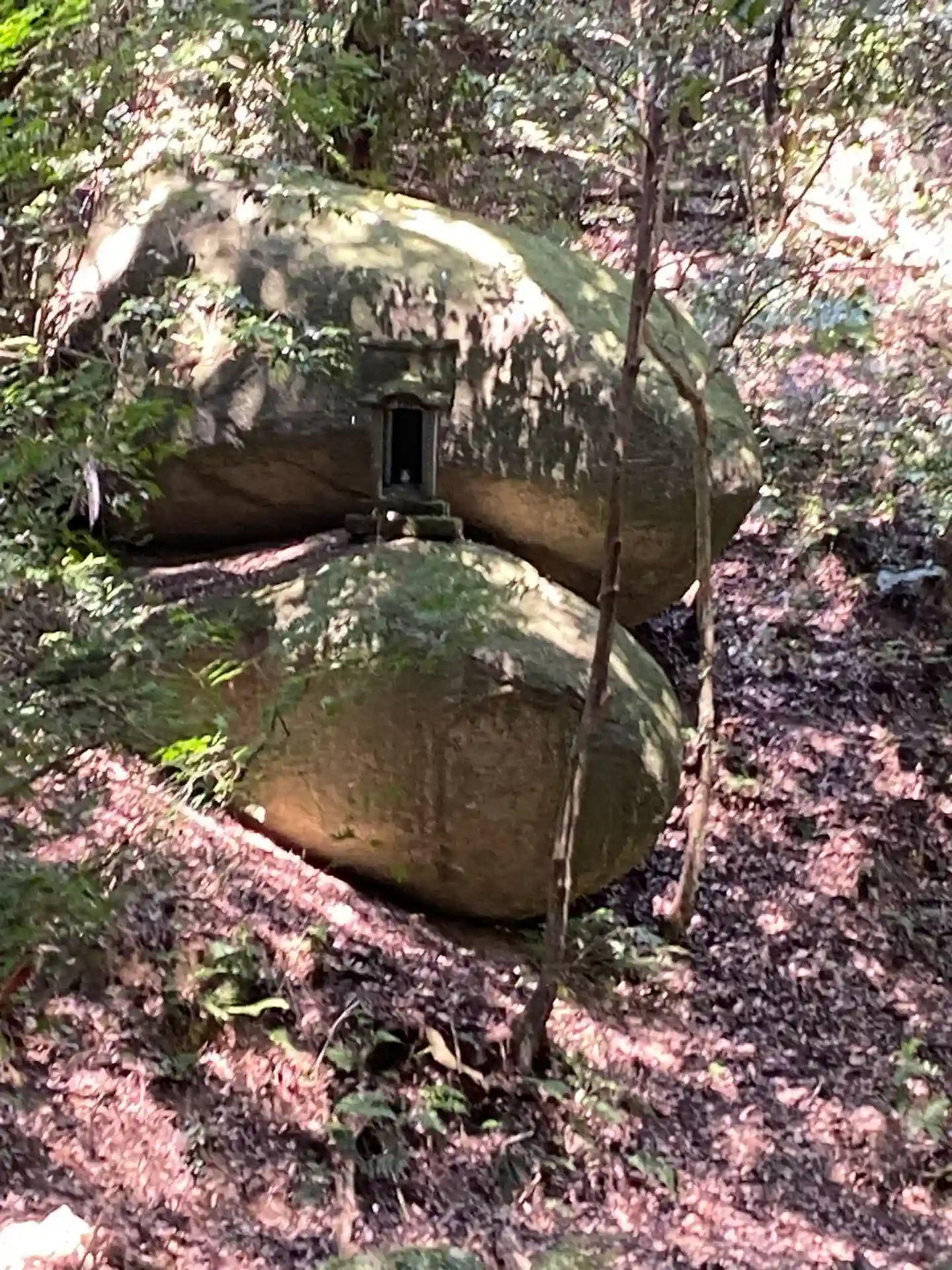 「千五百皇子社」は磐座の上に建立されていますが、山の斜面には岩が沢山転がっていました