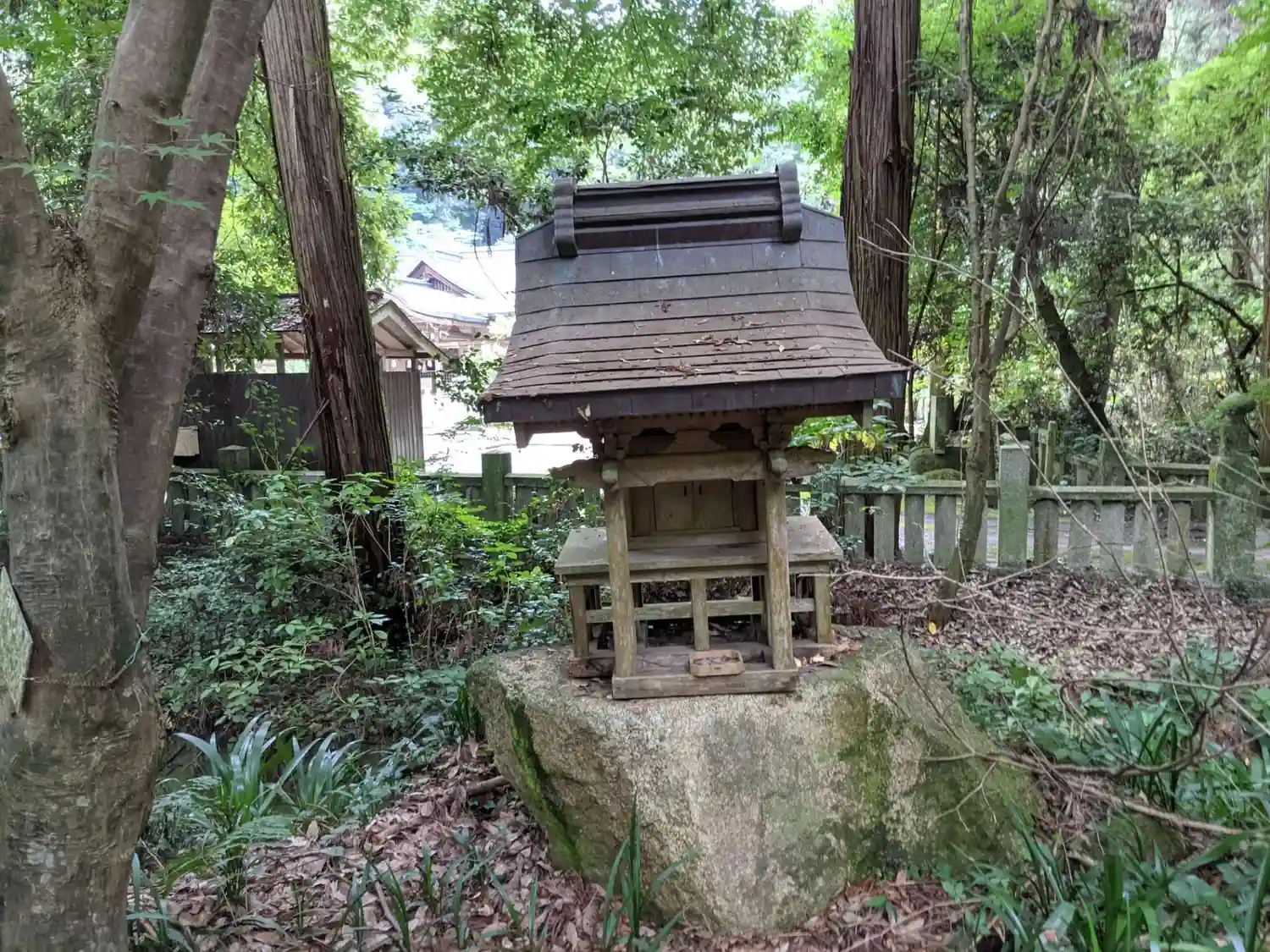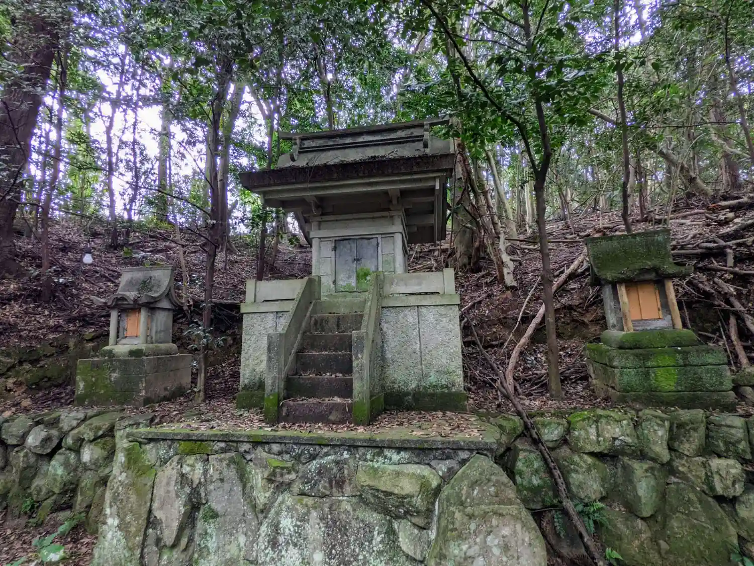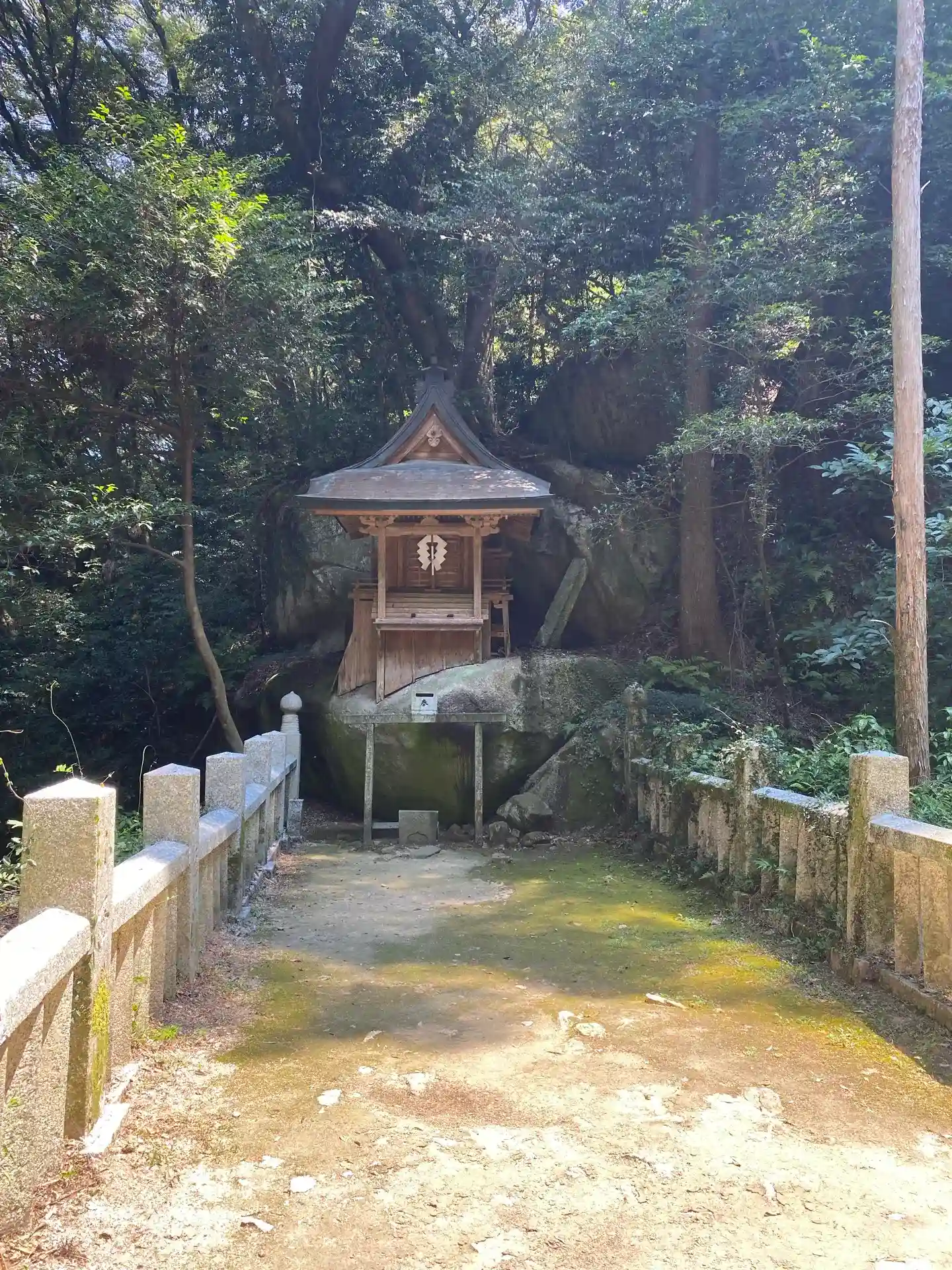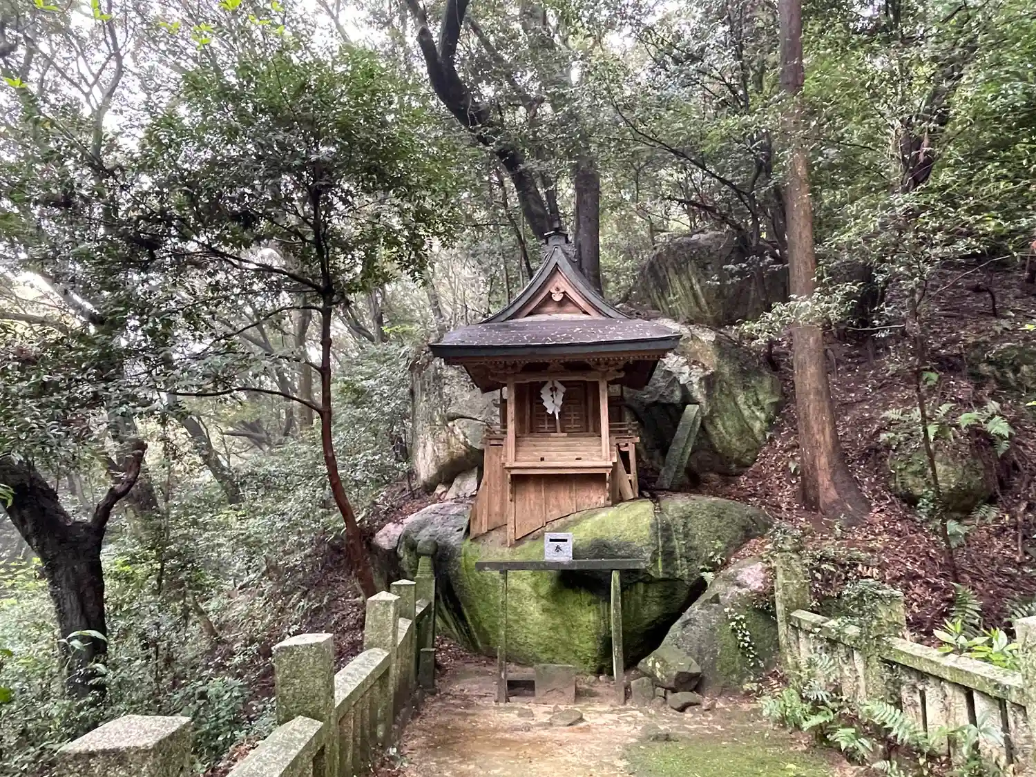 「千五百皇子社」は磐座の上に建立されていますが、山の斜面には岩が沢山転がっていました