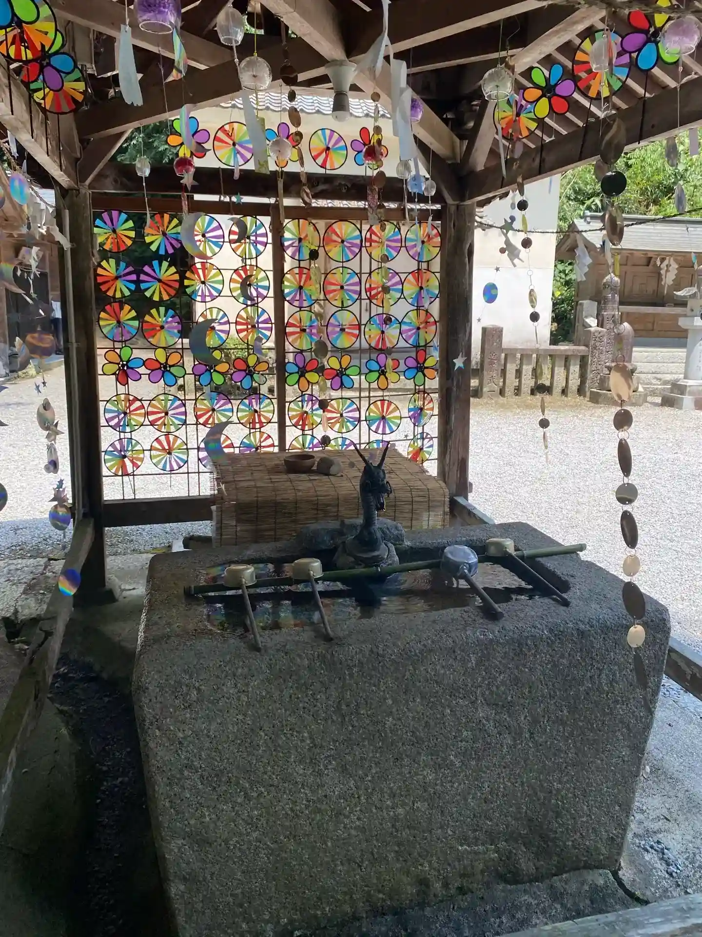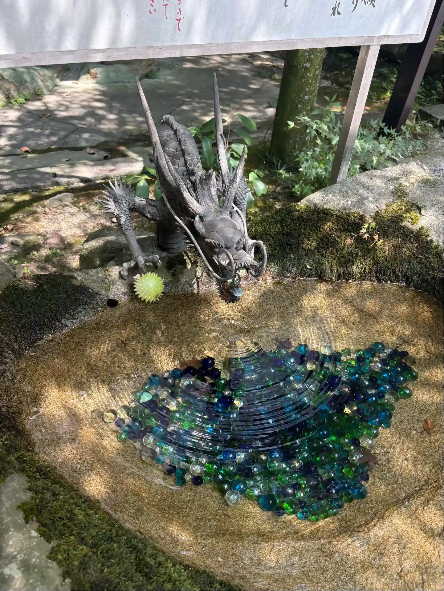 隋神門の前にあります。水みくじを引いたらここに戻り浮かべます