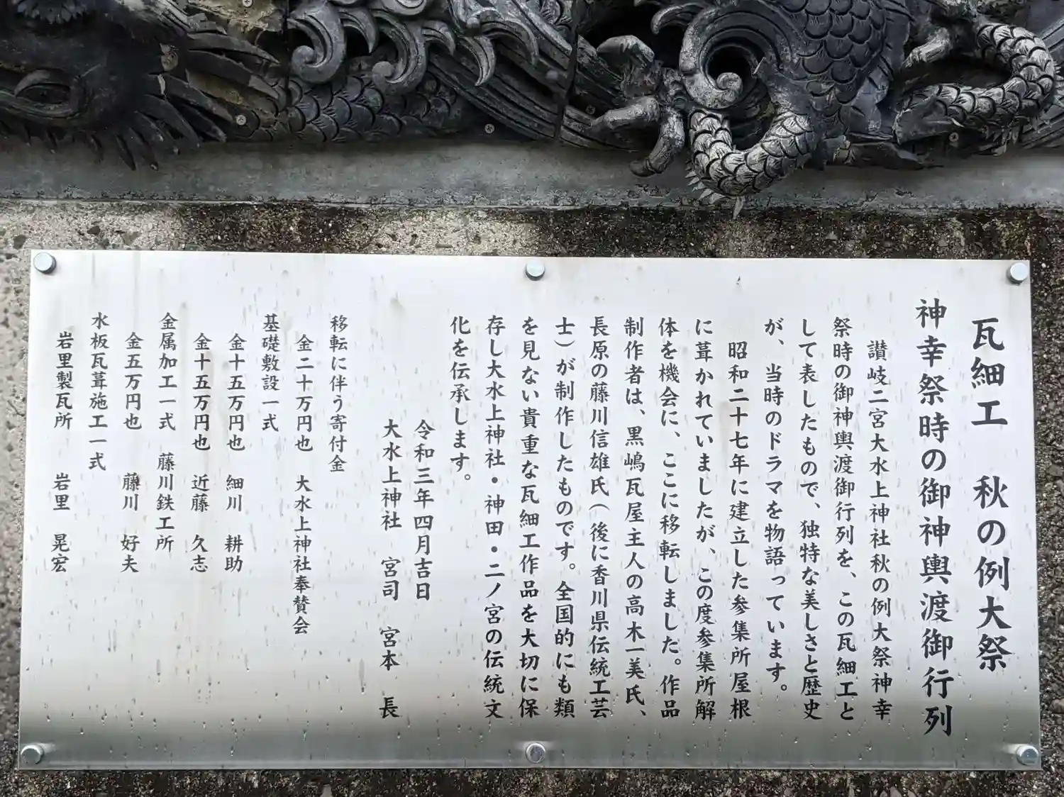 「秋の例大祭」を表現した瓦細工