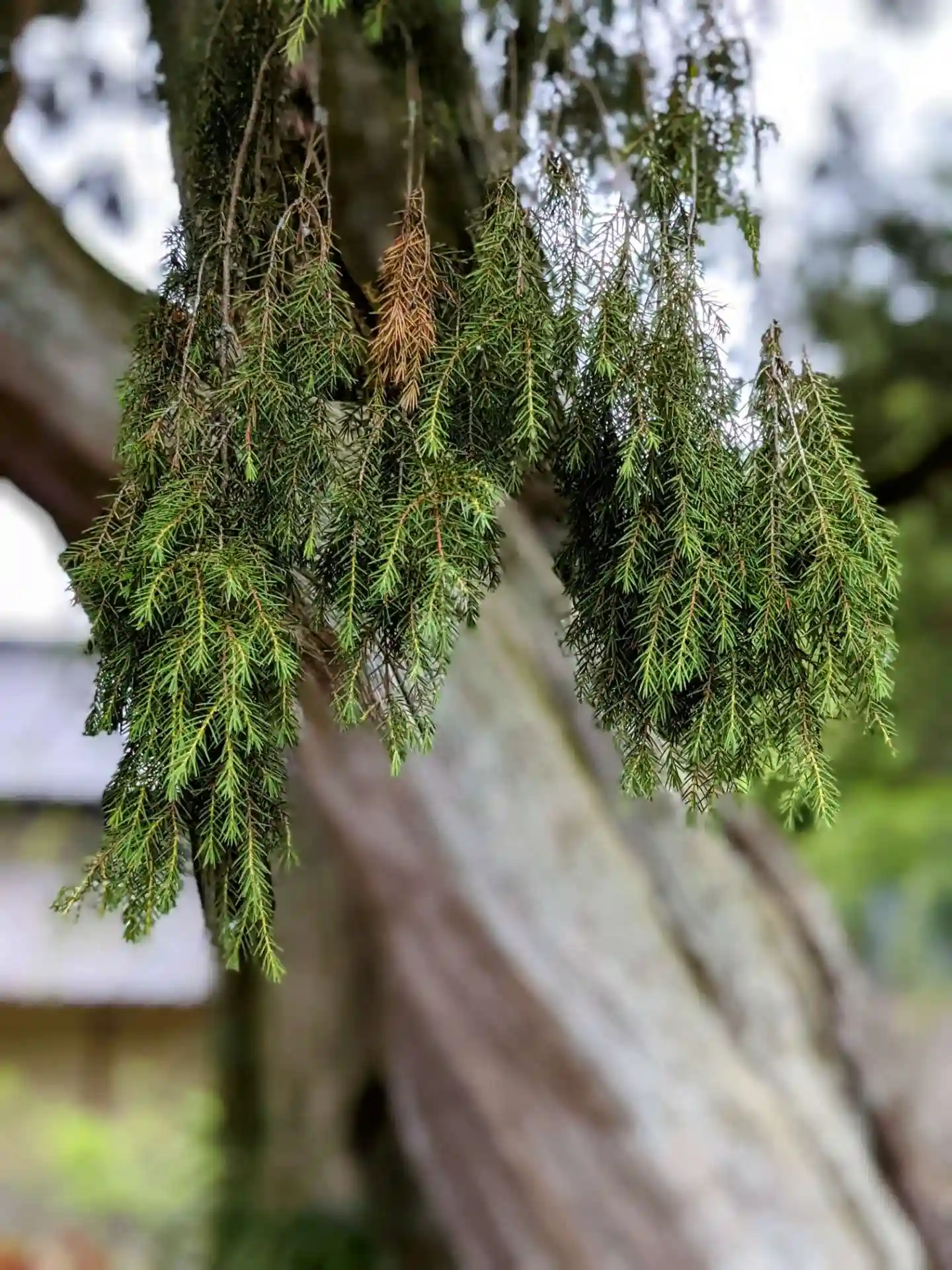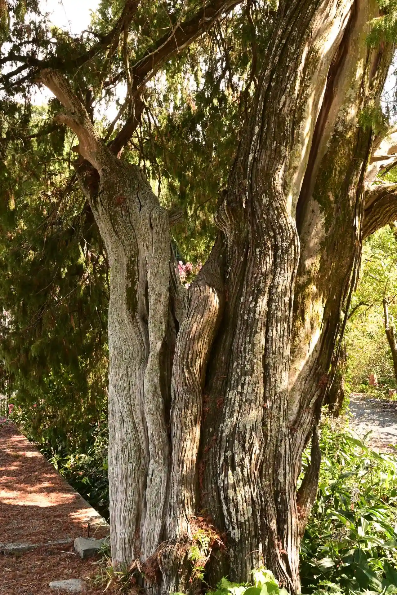 駐車場に大きなネズの木があります