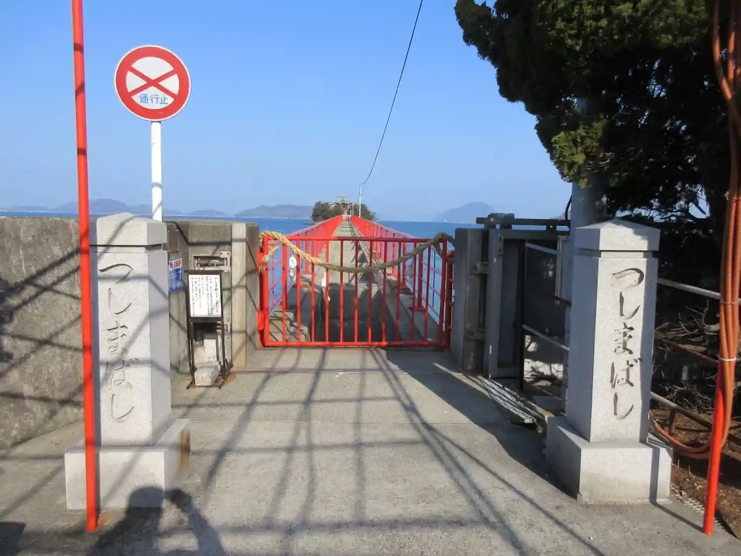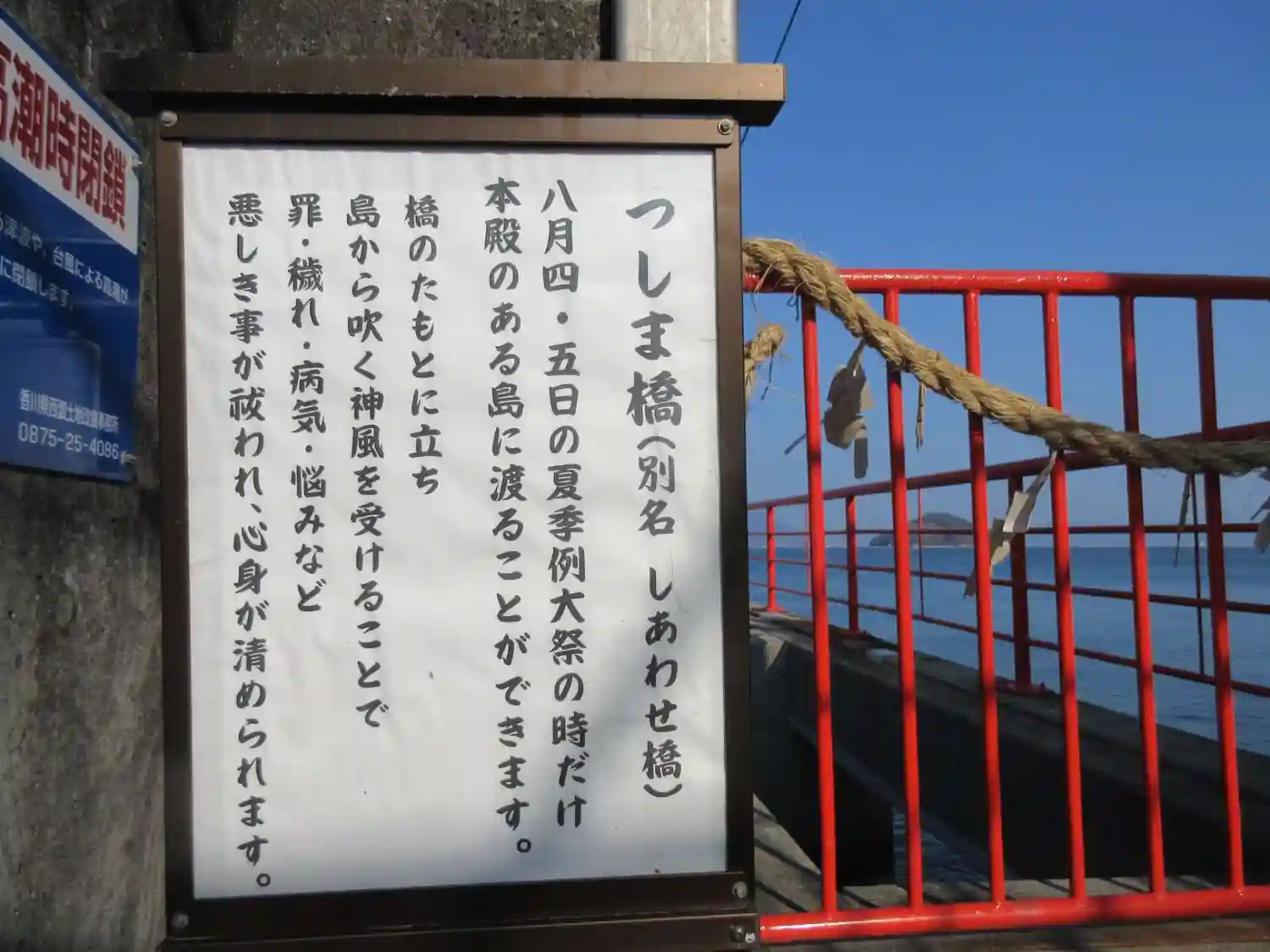 本殿ねある島へ渡る つしまばしの入り口。8月4日と5日の大祭がある日しか本殿のある島には渡れません。