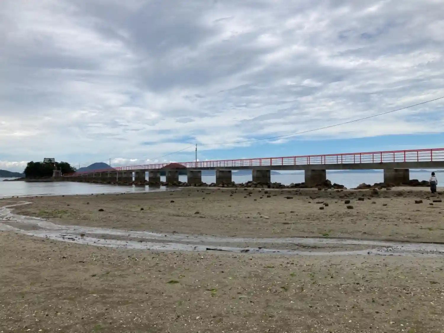 晴れ渡る空とつしまばしの赤い色がマッチしてました。