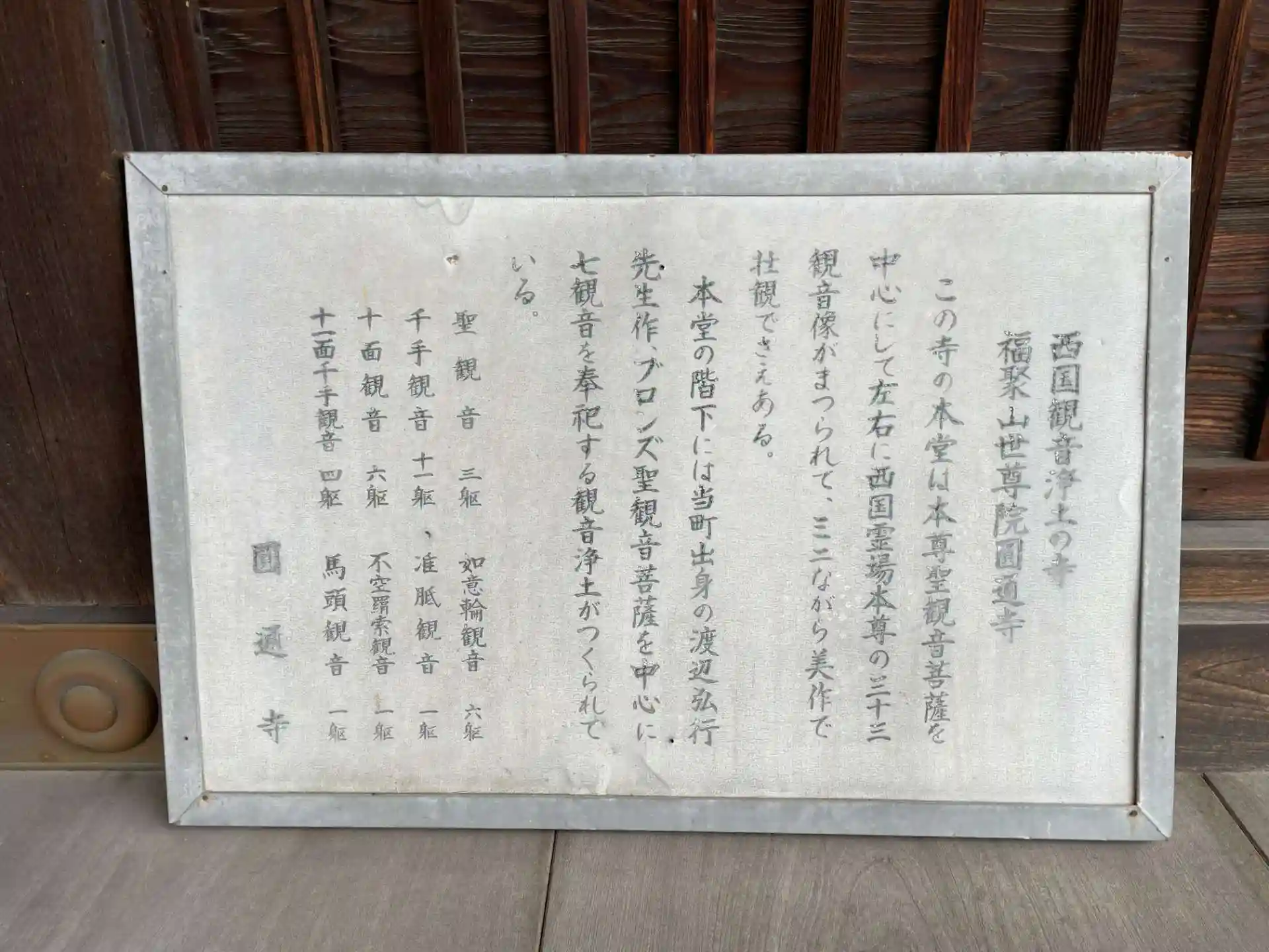 山号は福聚山 院号は世尊院 ご本尊は聖観世音菩薩です。