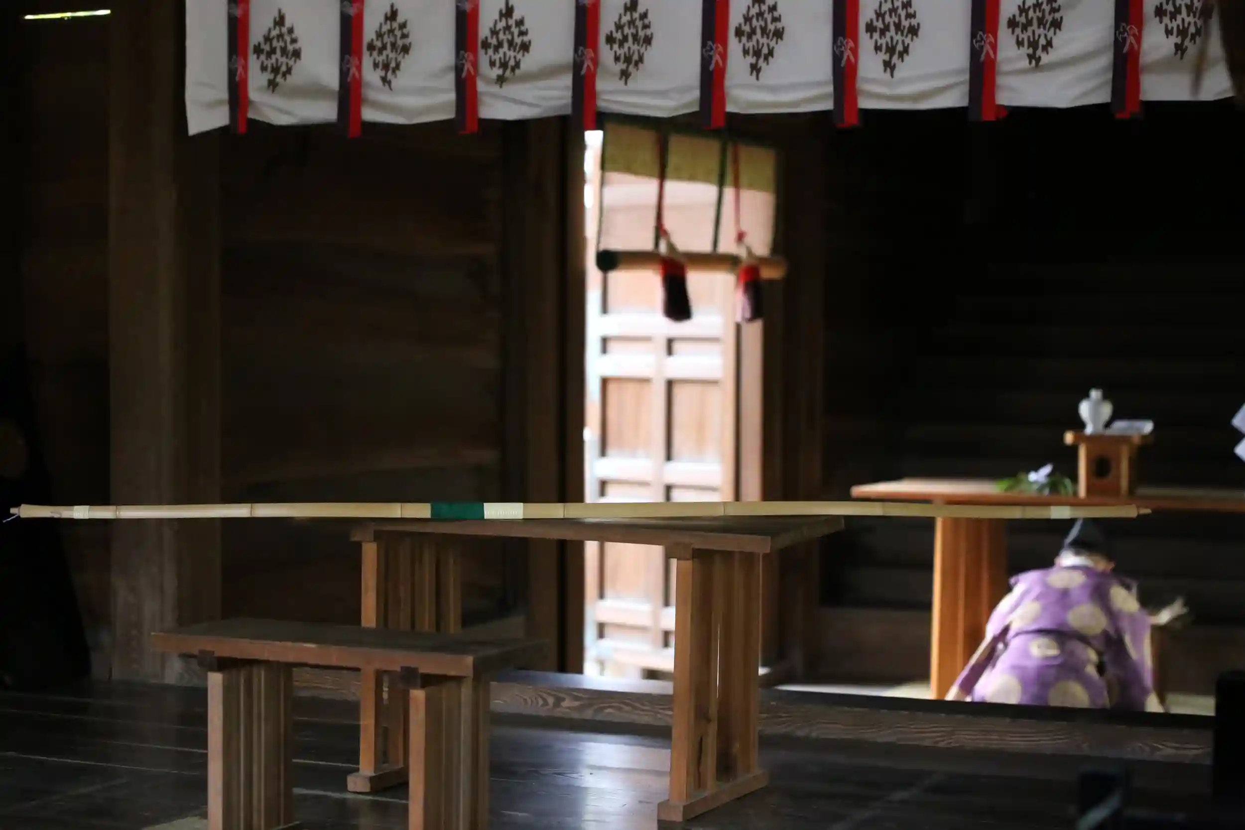 5月5日、弓師の能祖一浩様より、竹弓一張ご奉納頂きました。銘は「播磨」。