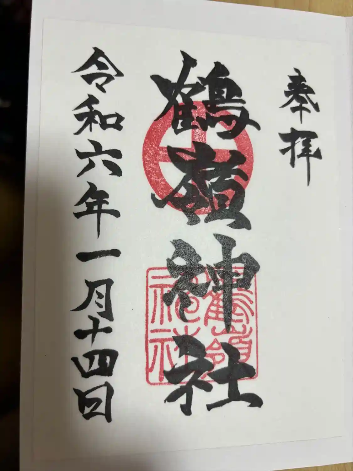 義理妹様から鶴嶺神社様の御朱印を頂きました。