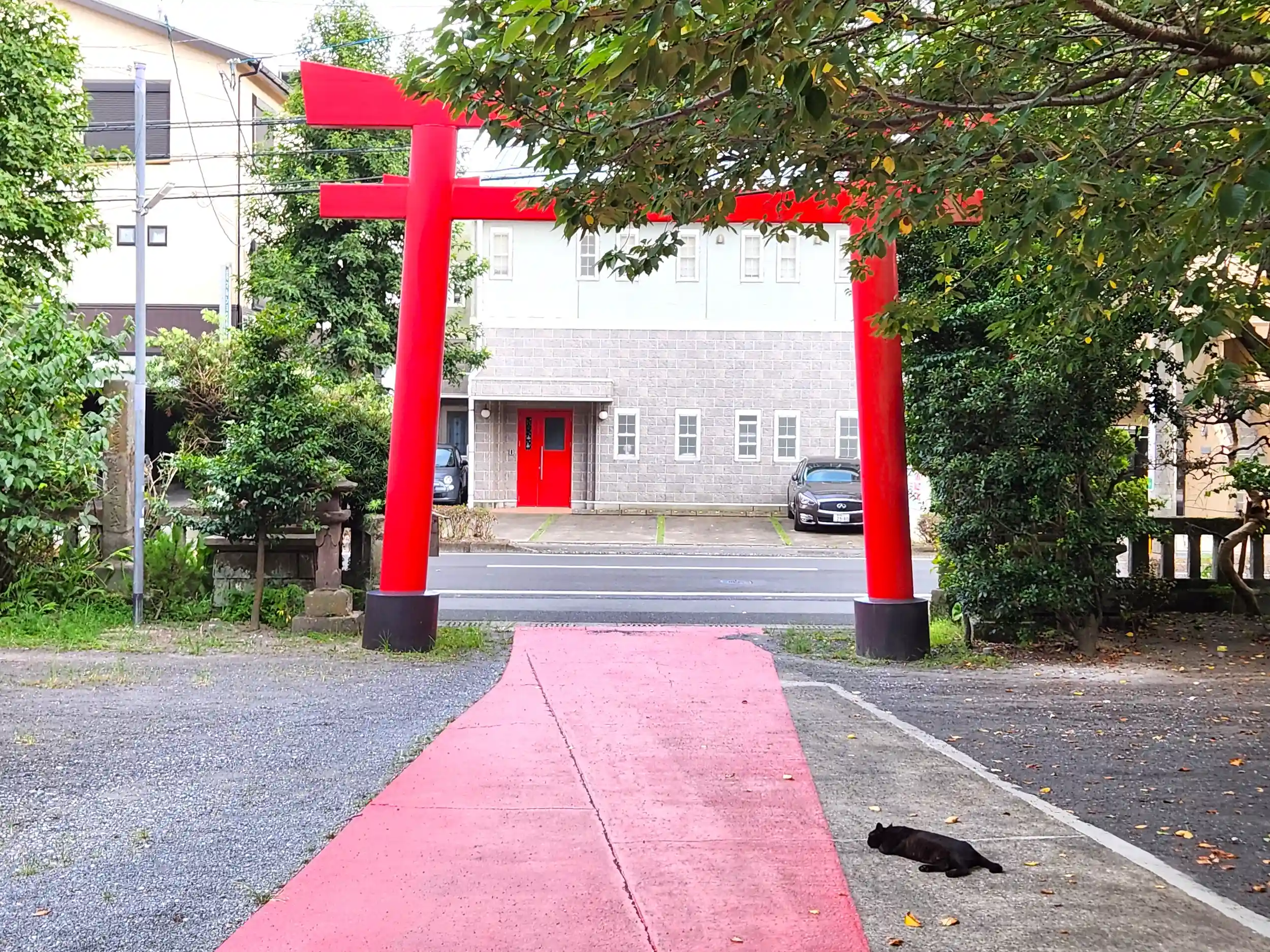 鳥居、社殿、手水舎、そして参道も赤く、とても印象に残る神社です。