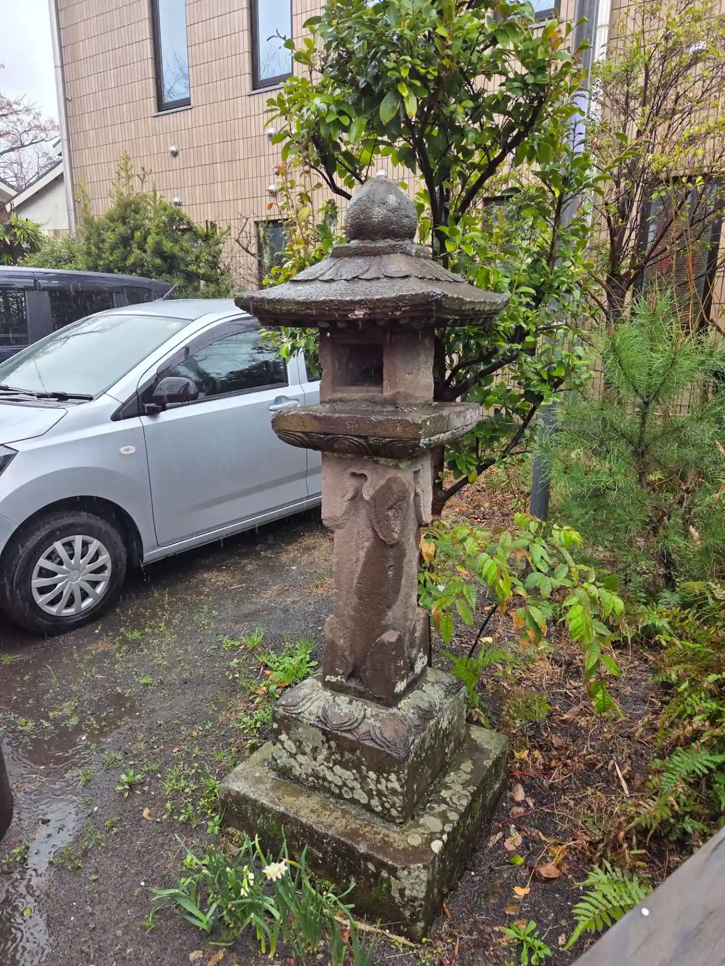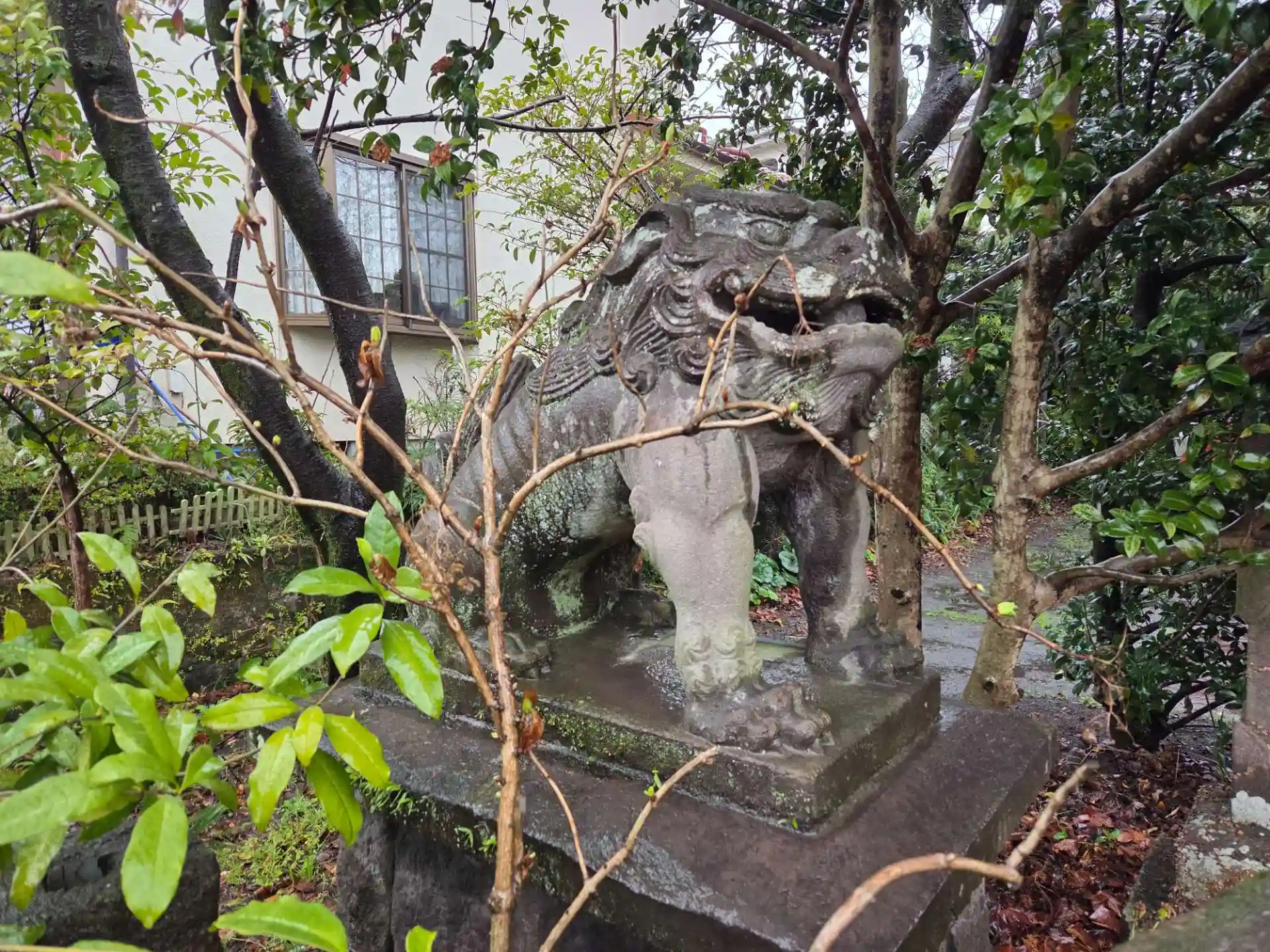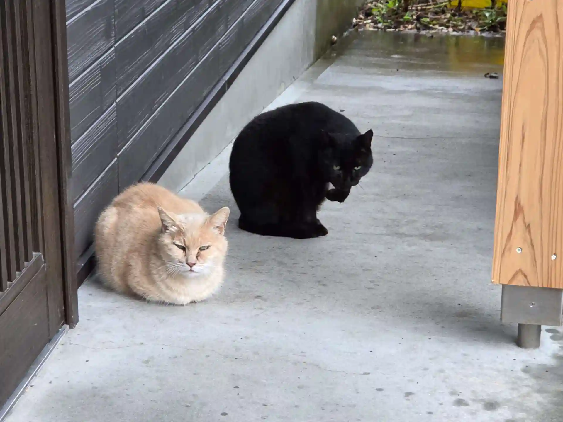 境内のあちこちに猫ちゃんがいました。雨にあたらないように、屋根がある所でじっとしてます。