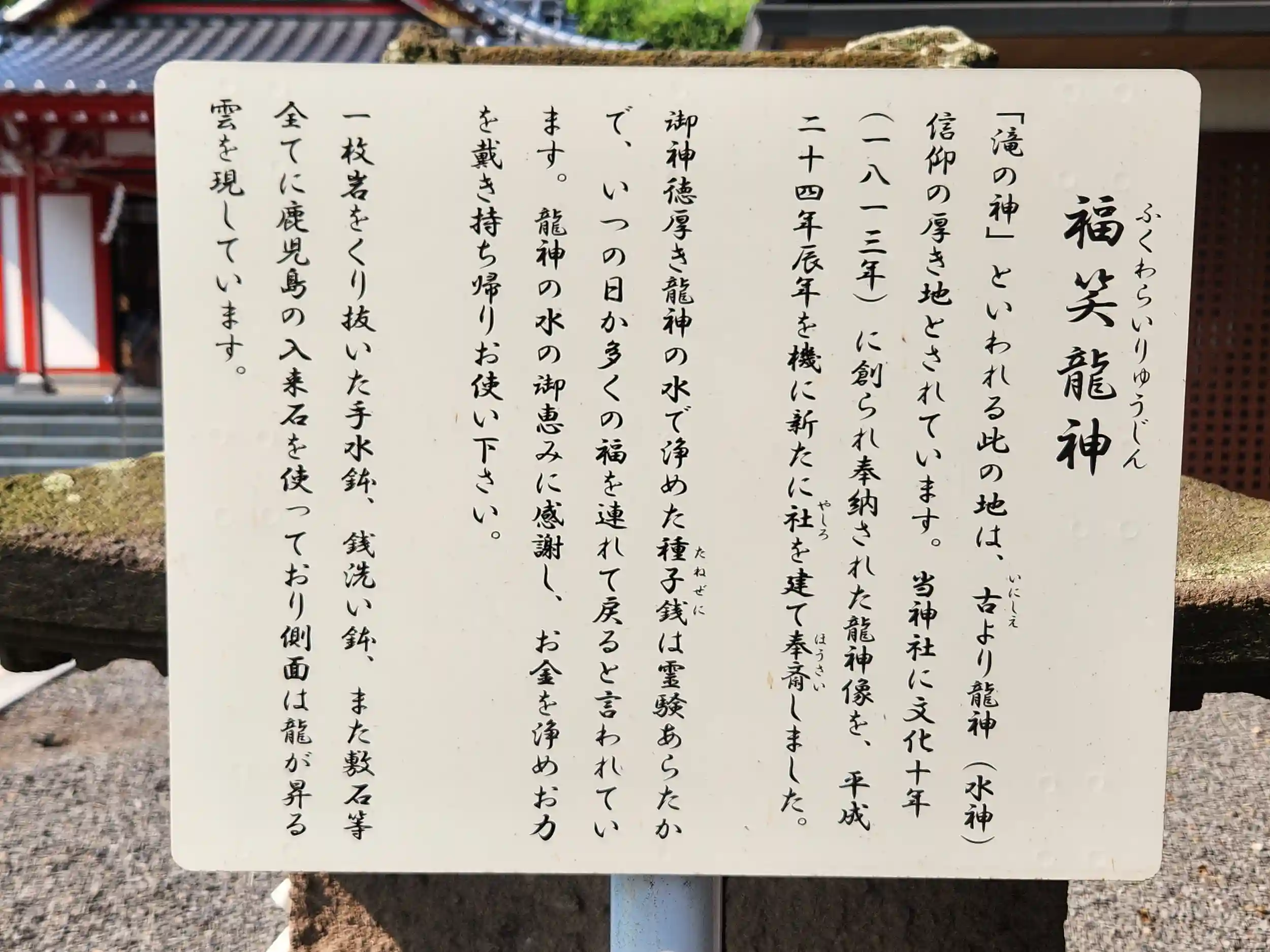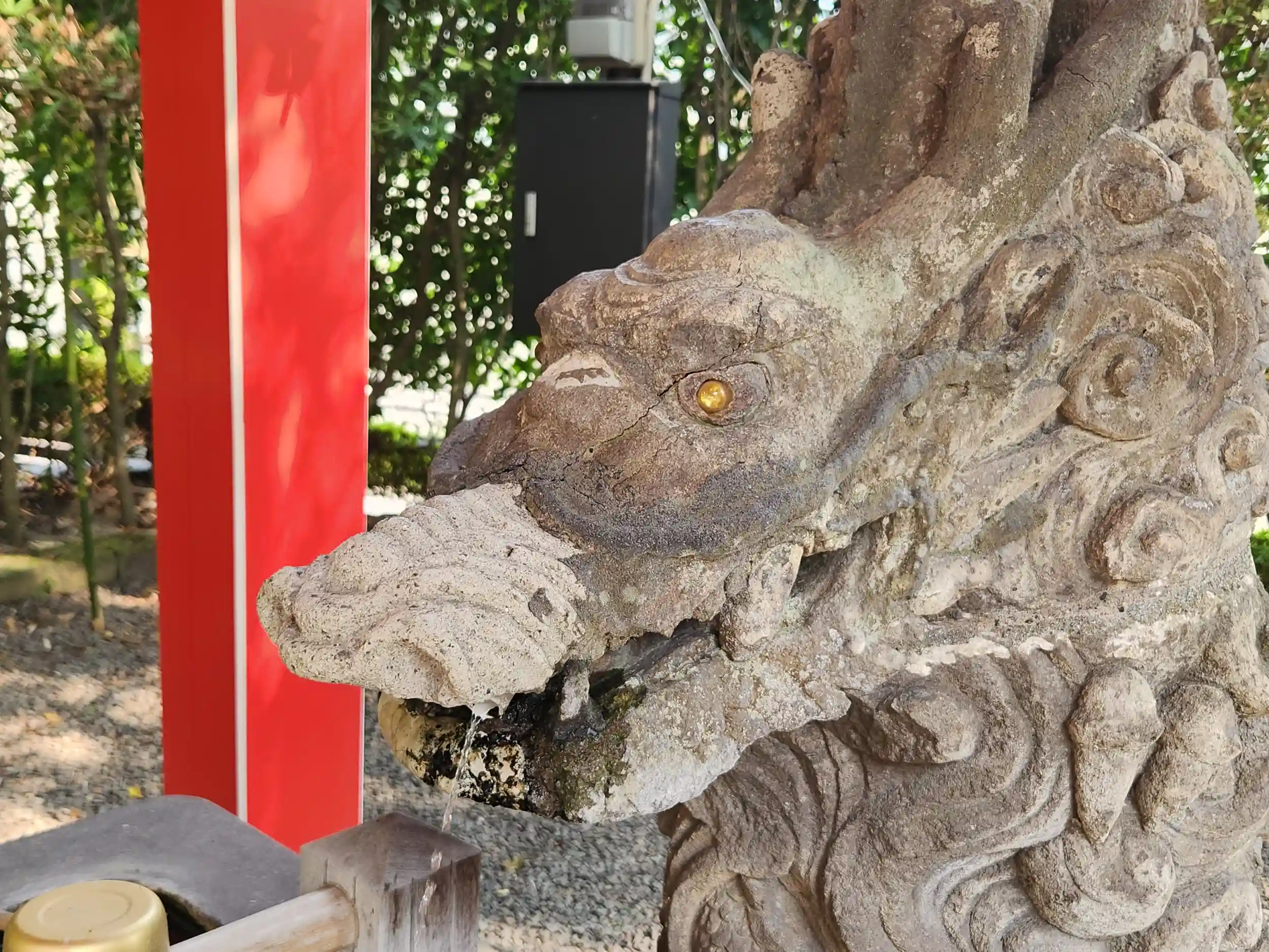 境内の手水には、文化10年(1813年)に奉納された龍神像があります。